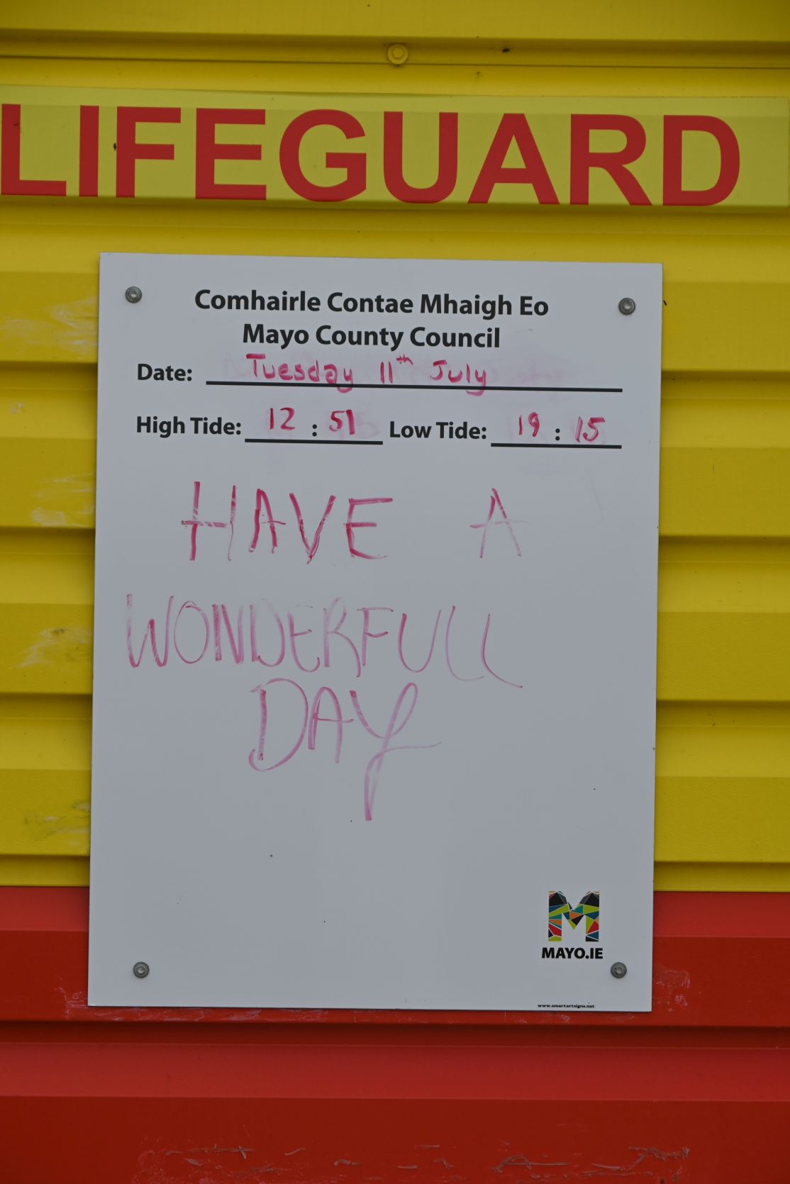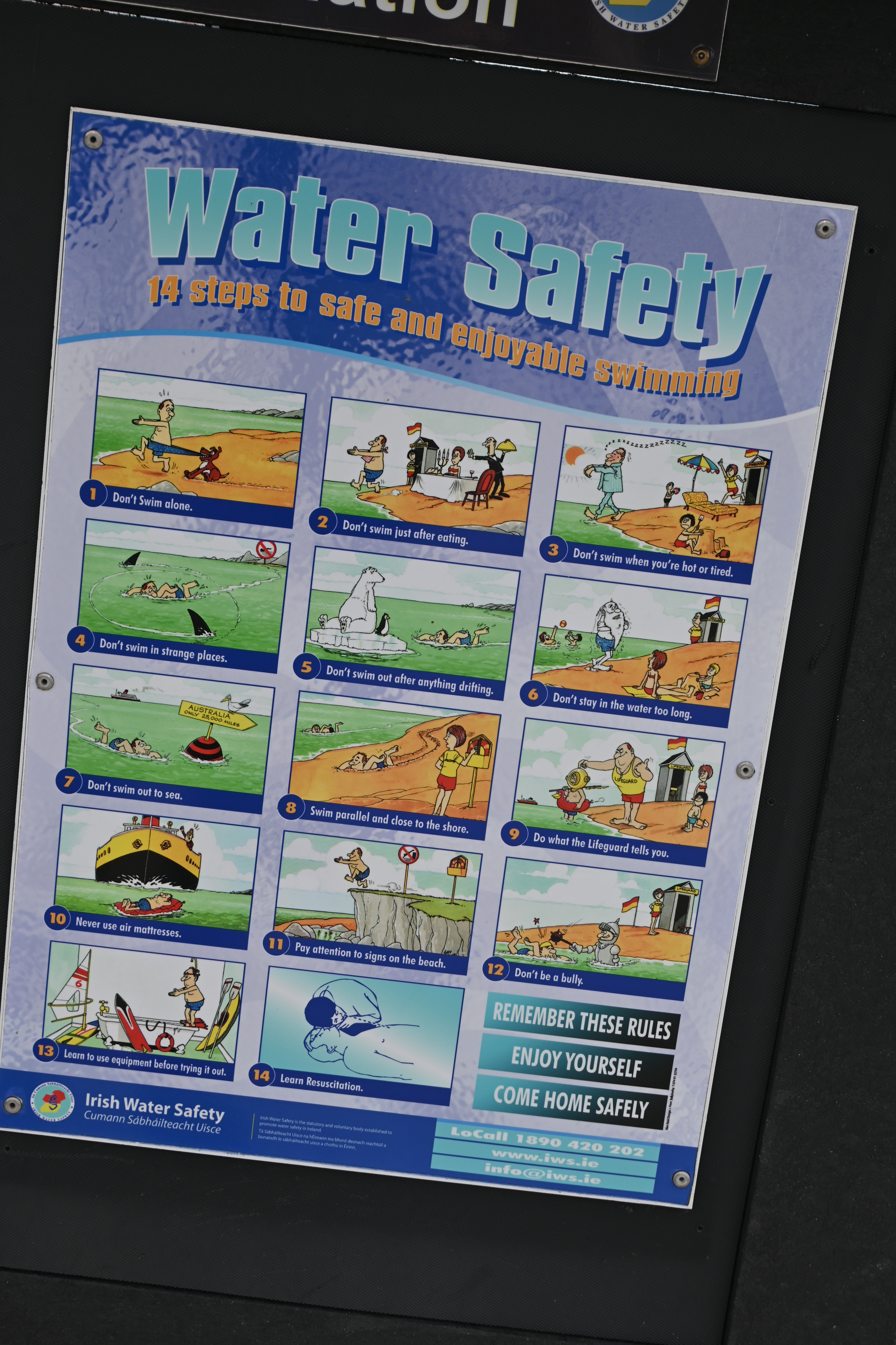 On all the official Irish beaches there is a lifeguard. The „Water Safety“ rules are drawn in a funny way.
