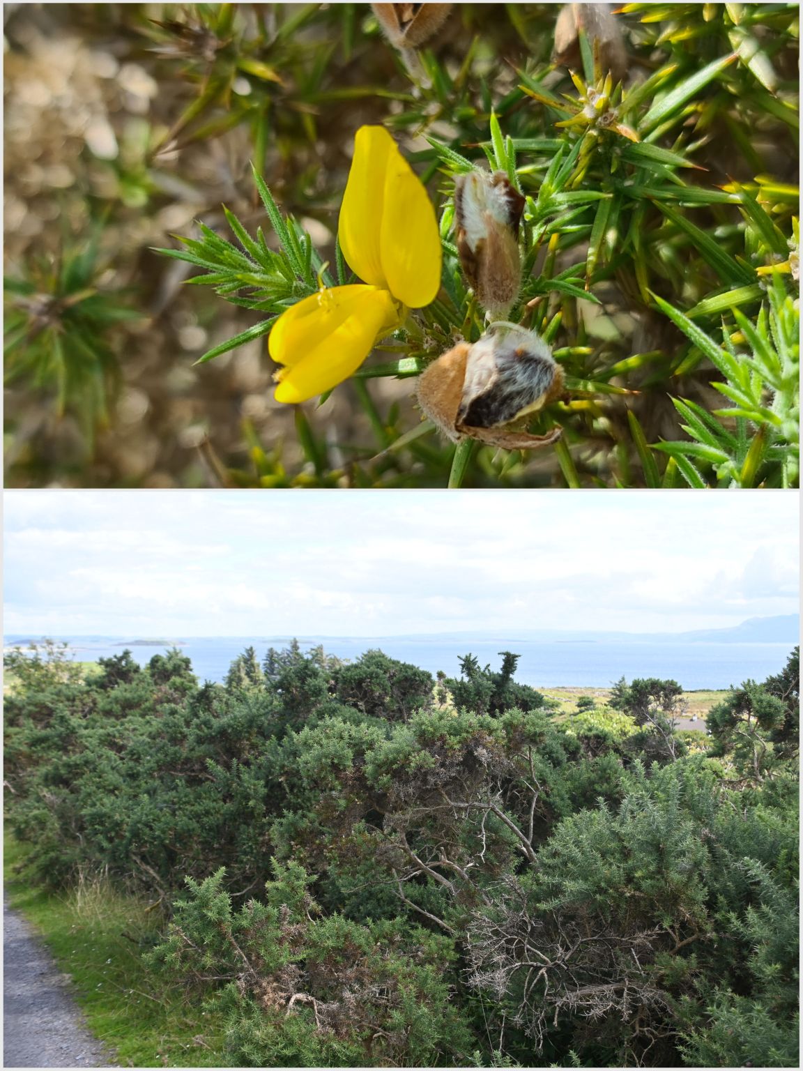 … then into open fields. We only saw a couple of individual flowers of the gorse. What a shame, because it’s lovely, when there is a lot of blooming gorse.