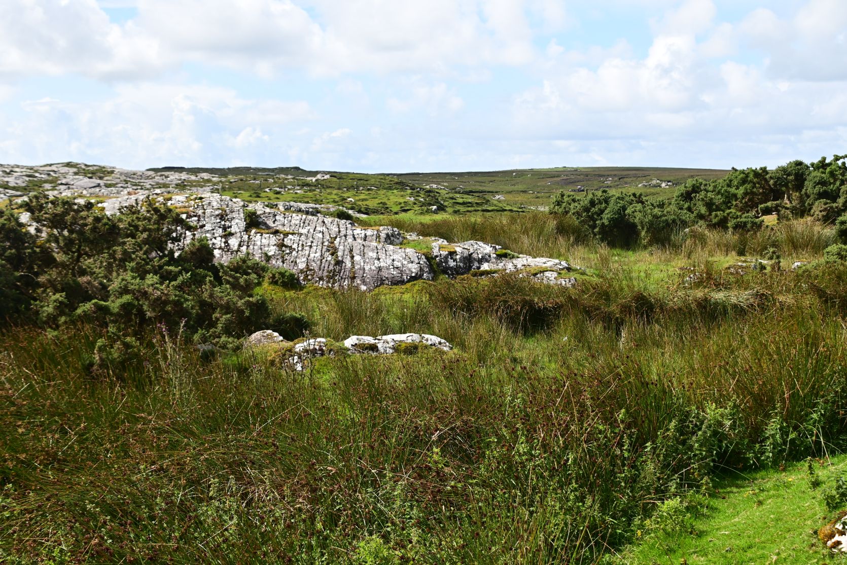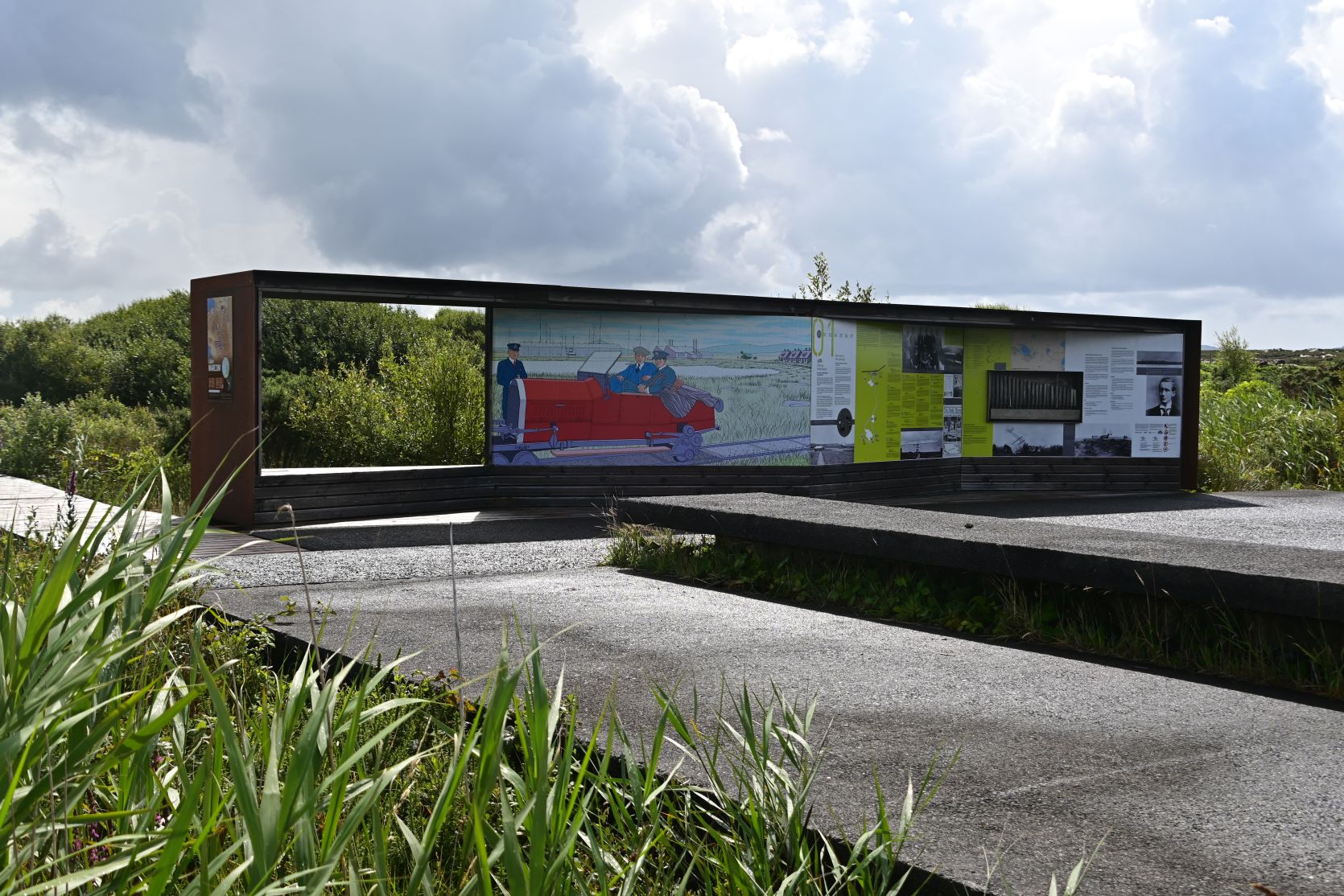 The walk begins at the road and leads into the bog.
