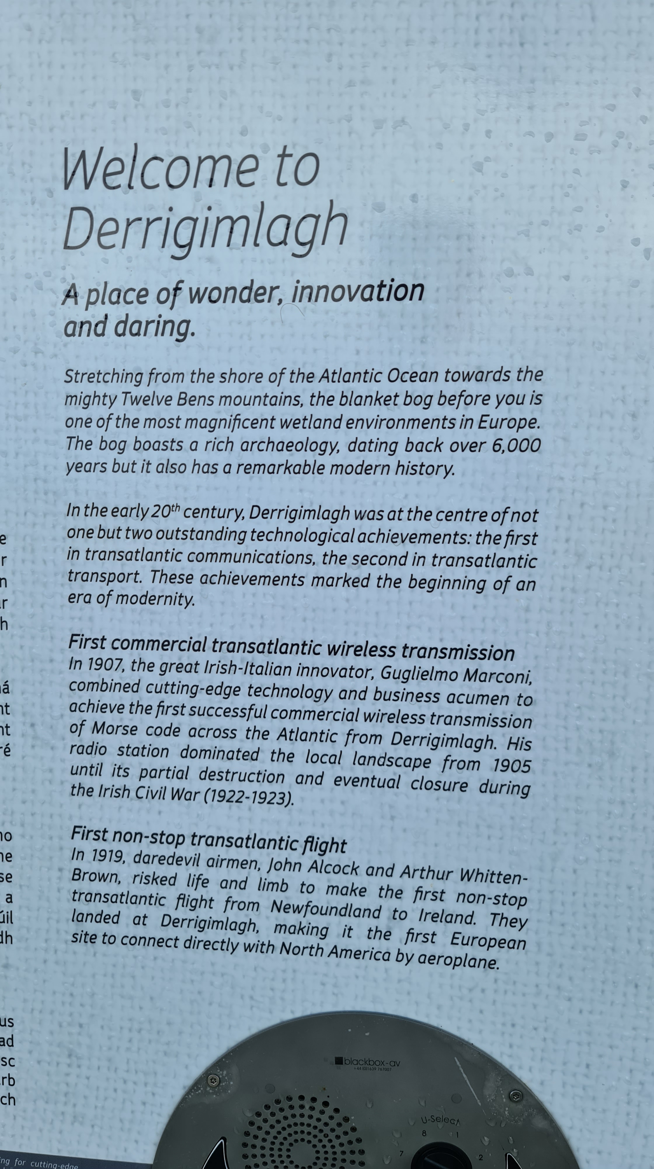 The memorial for Alcock and Brown is up here, but their actual landing site is further down. We decided to have a walk there. Apart from their famous flight, this is also the place where Marconi sent the first successful commercial wireless transmission of Morse code across the Atlantic.