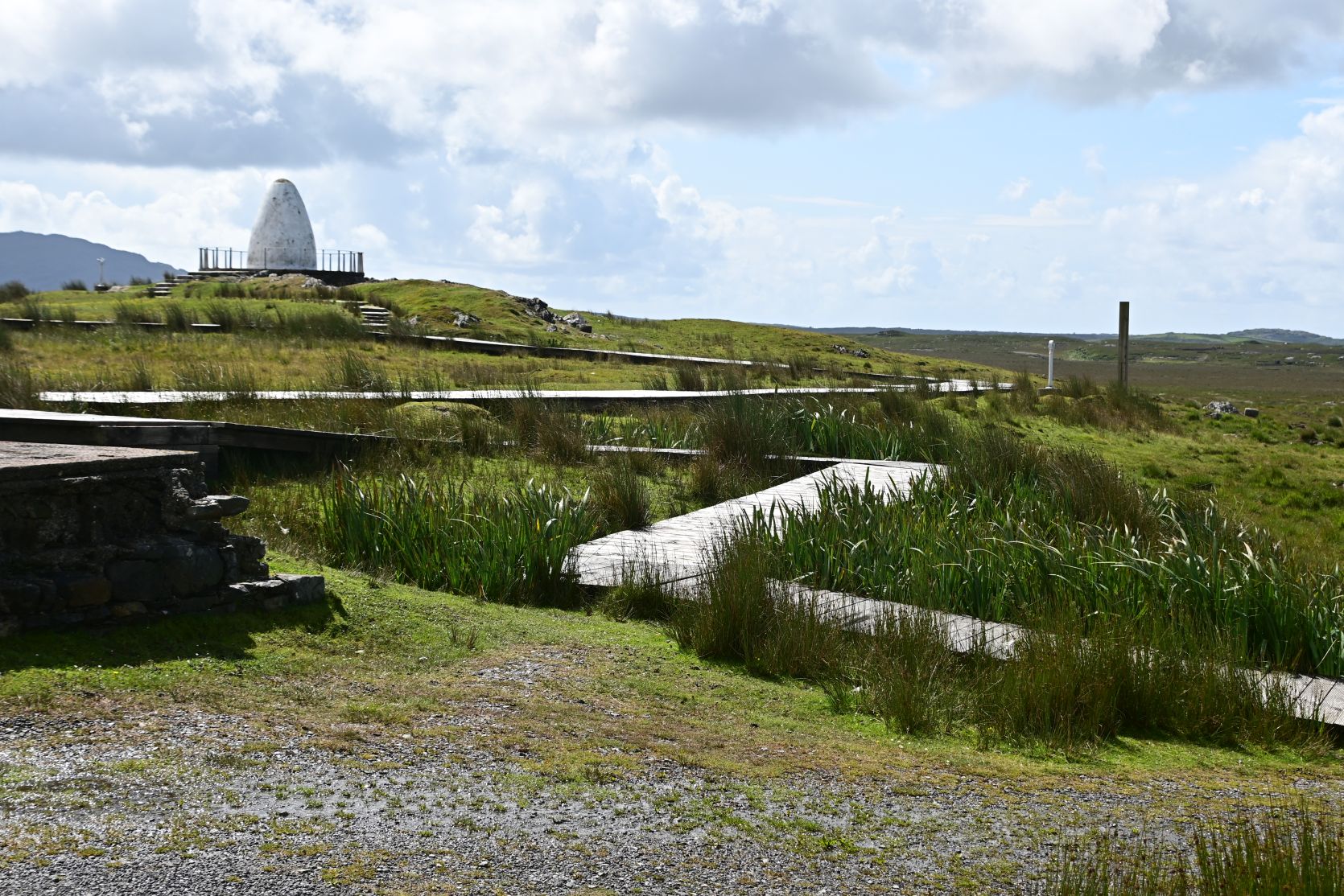 Der weisse Stein ist der Ort, an dem Alcock und Brown eine Bruchlandung hinlegten.