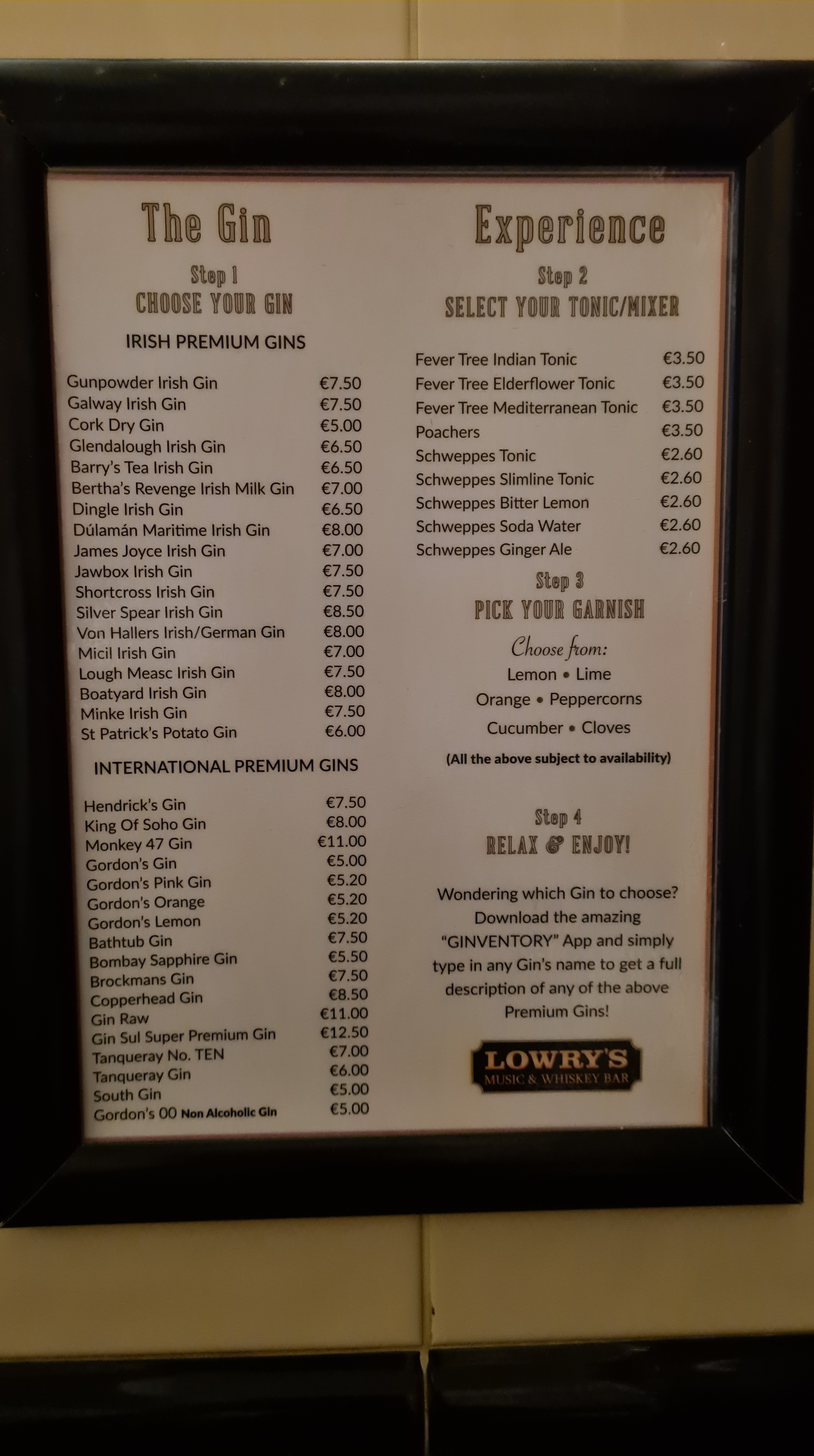 Lowry’s ist ein sehr beliebtes Pub, und es ist bekannt für seine Whiskeys und Gins.