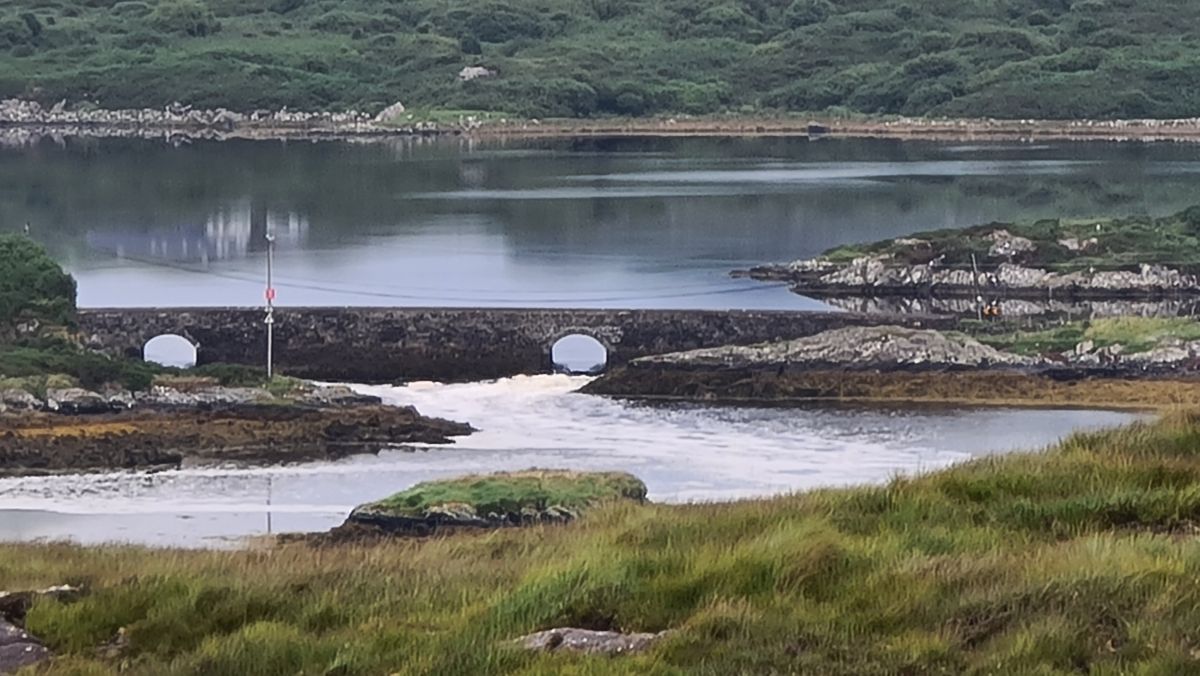 Im Hintergrund sieht man eine Brücke, bei welcher der Gezeitenwechsel extrem gut sichtbar ist! Das Foto rechts zeigt es reingezoomt.