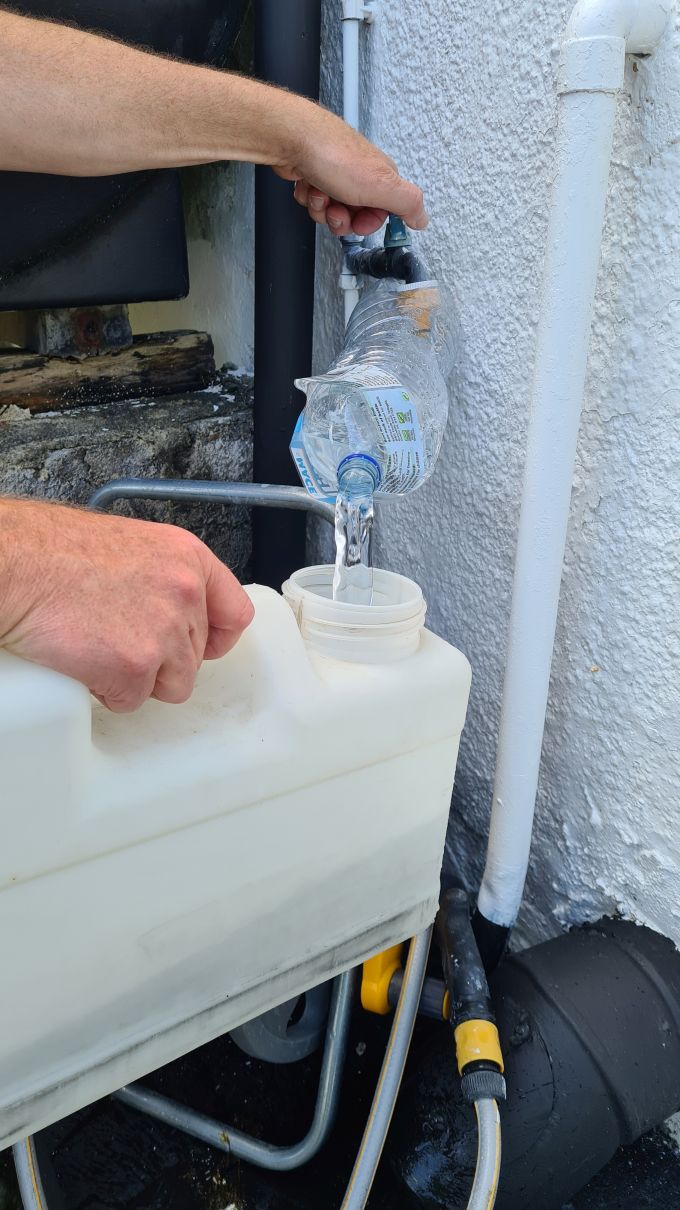 Some impressions from Cleggan. There was an announced power cut (for several hours, because they put up new poles or something), so no electricity in the shops… Sometimes Kurt shows creativity when it comes to refilling the water tank 🙂