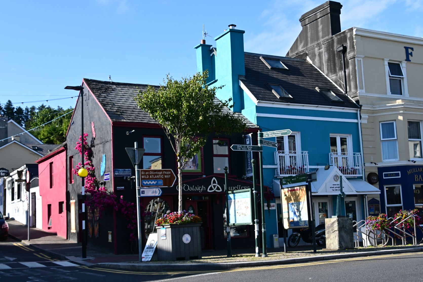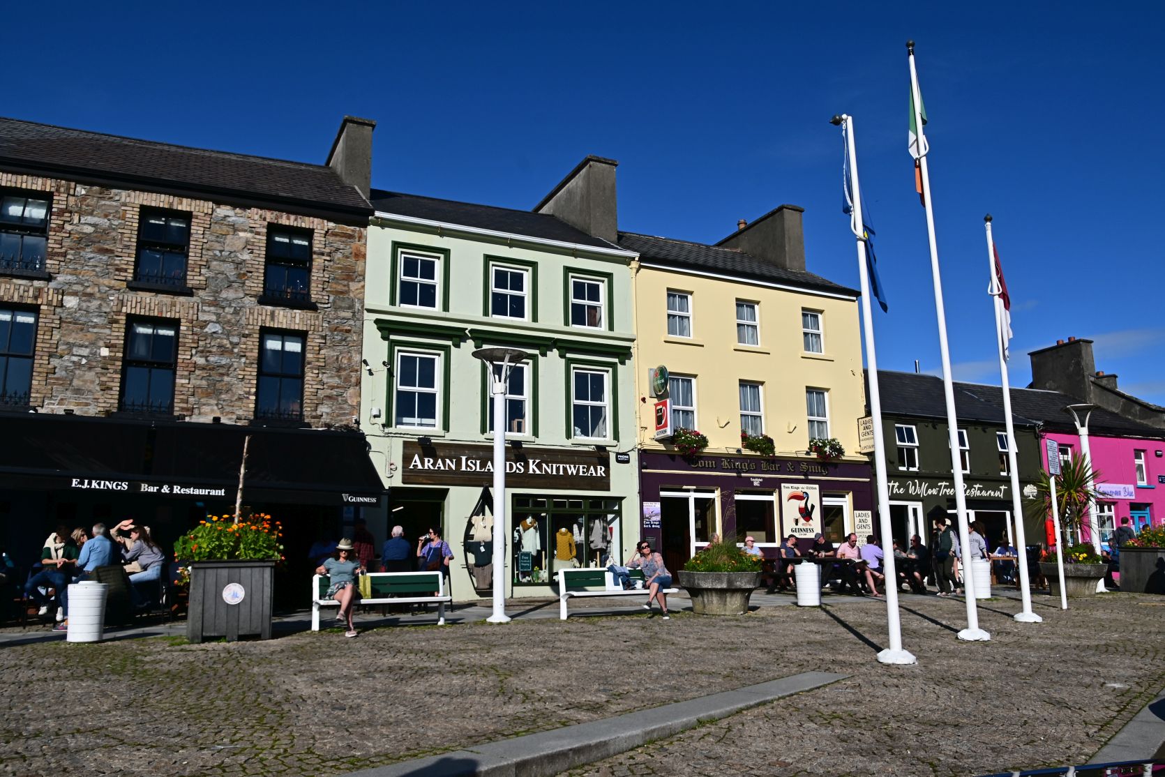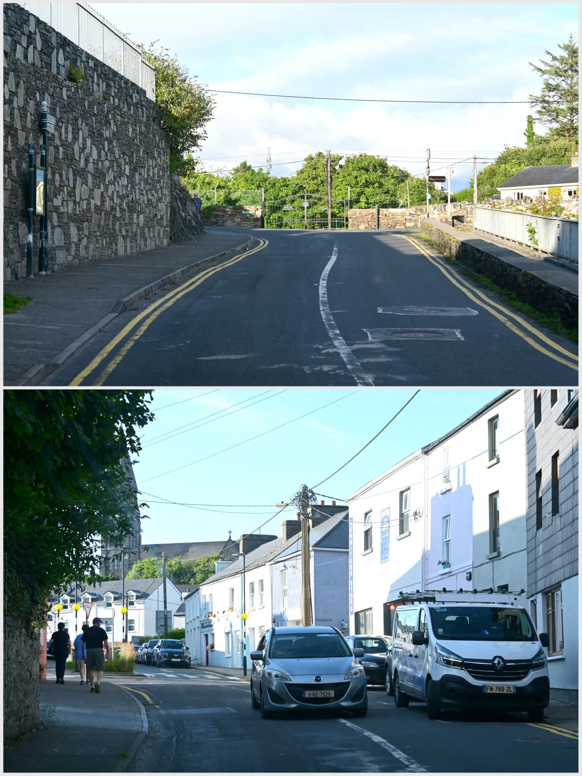 Wir fuhren dann nach Clifden, einen Ort, den wir nun schon ein bisschen kannten. Das erste Foto zeigt das Annullieren etwelcher Geschwindigkeitsbeschränkungen, und gleichzeitig heisst es, dass man langsam fahren soll… Die Strasse mit den Velofahrern hat eine Geschwindigkeitsbegrenzung von 100 km/h!