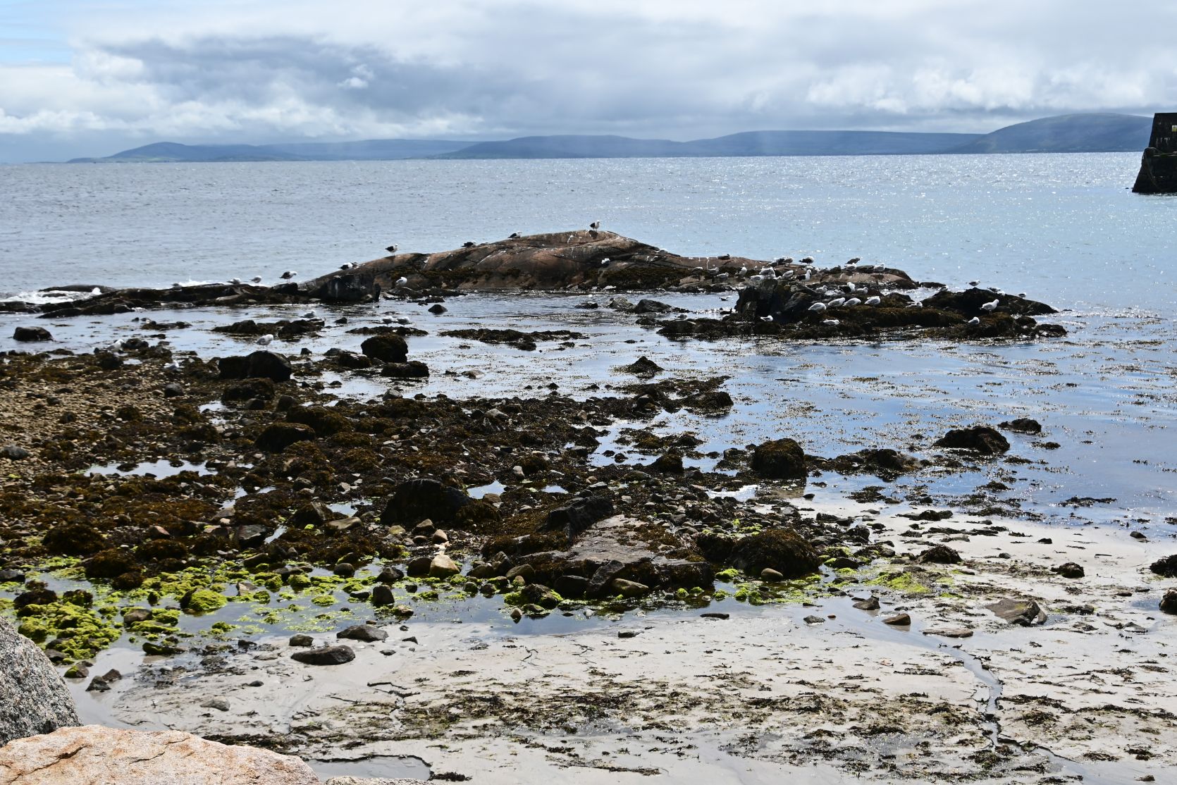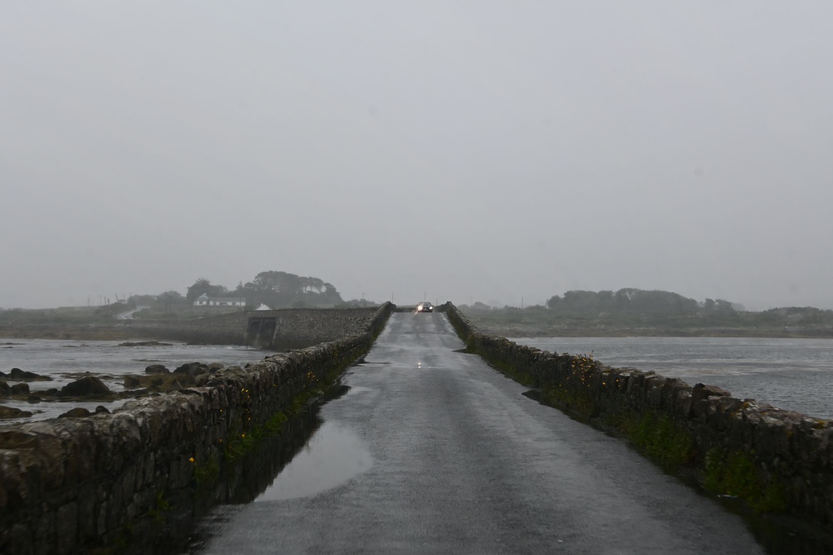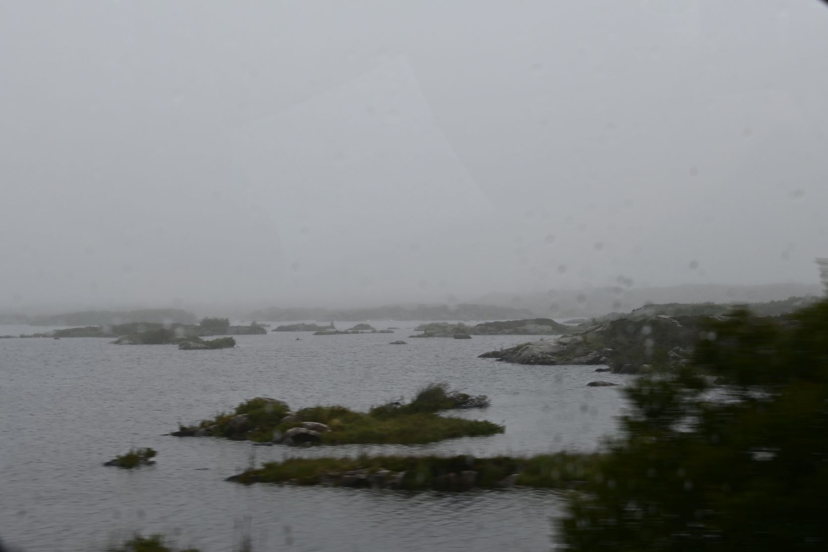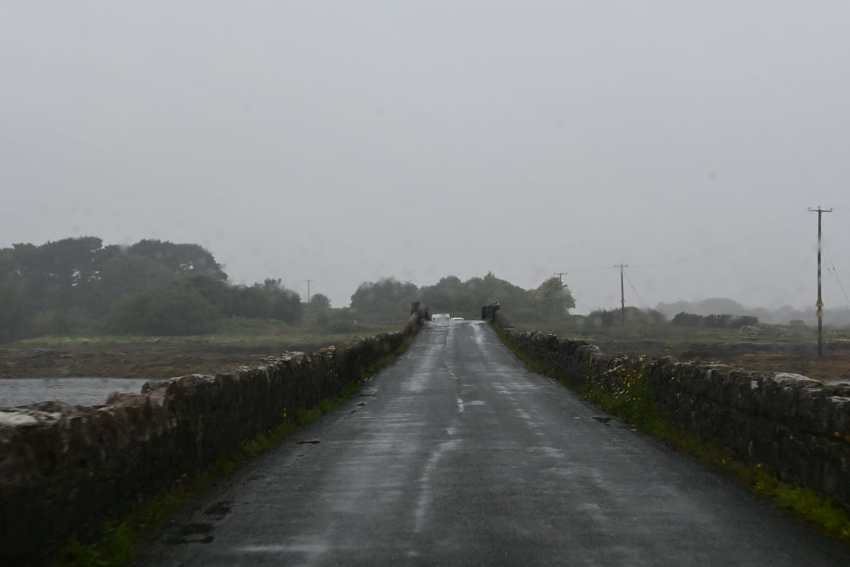 Es regnete wieder… Wir wuschen unsere Kleider und machten Einkäufe, dann fuhren wir auf einige kleine Inseln, die alle mit Brücken verbunden sind: Lettermore, Gorumna und Lettermullen. Wir konnten nicht viel sehen von der Landschaft 😦