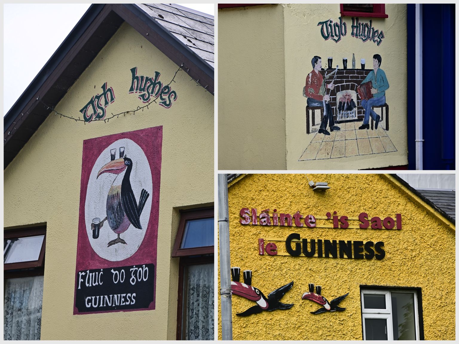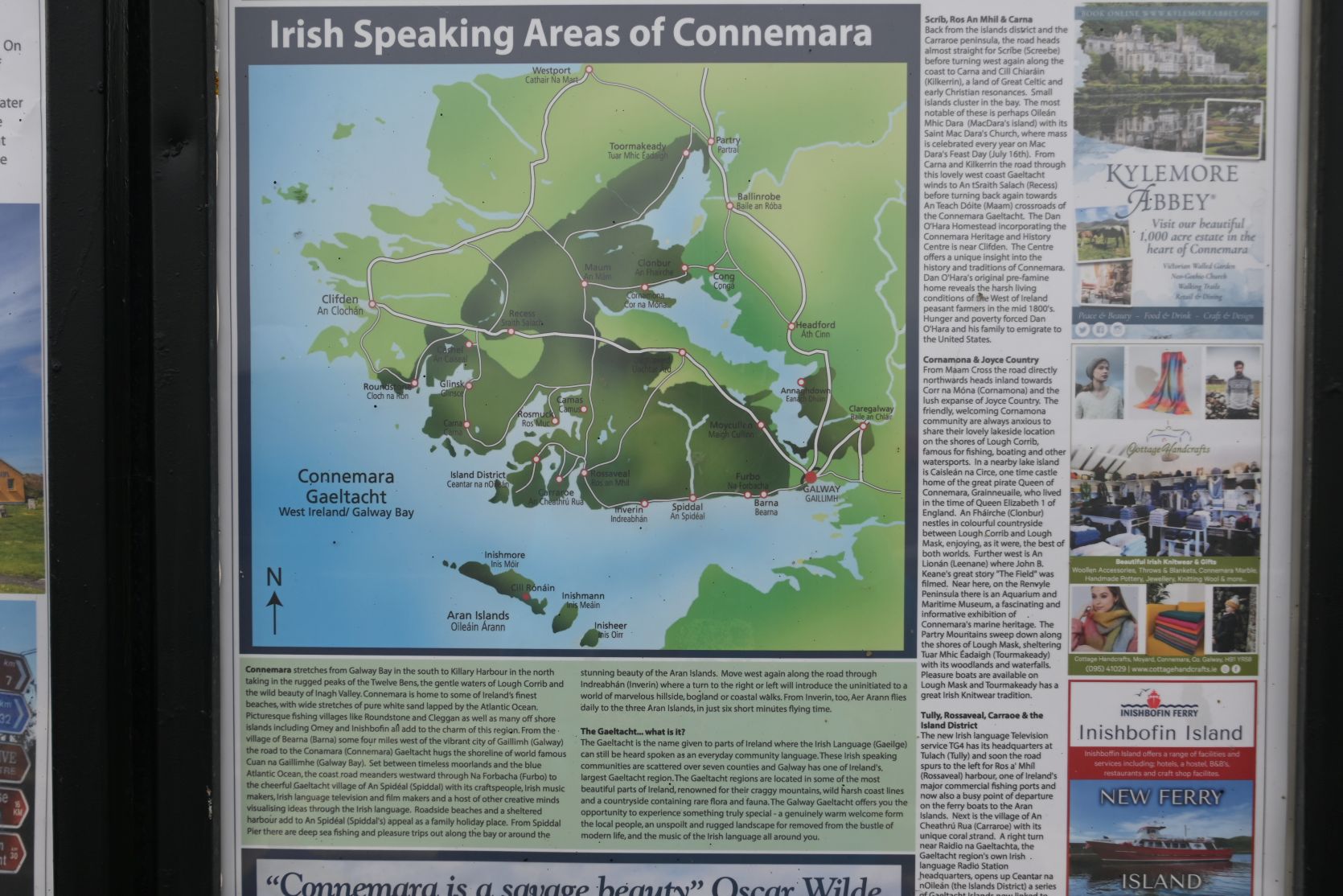 Spiddal is located in the Gaeltacht area, where the Irish language is the main language spoken. Another detail about this region, or actually most of Connemara, is that they often store the turf in their garages. Something else we noticed: there are an awful lot of recycle bins for glass. Obviously beer is mostly sold in glass bottles 😉