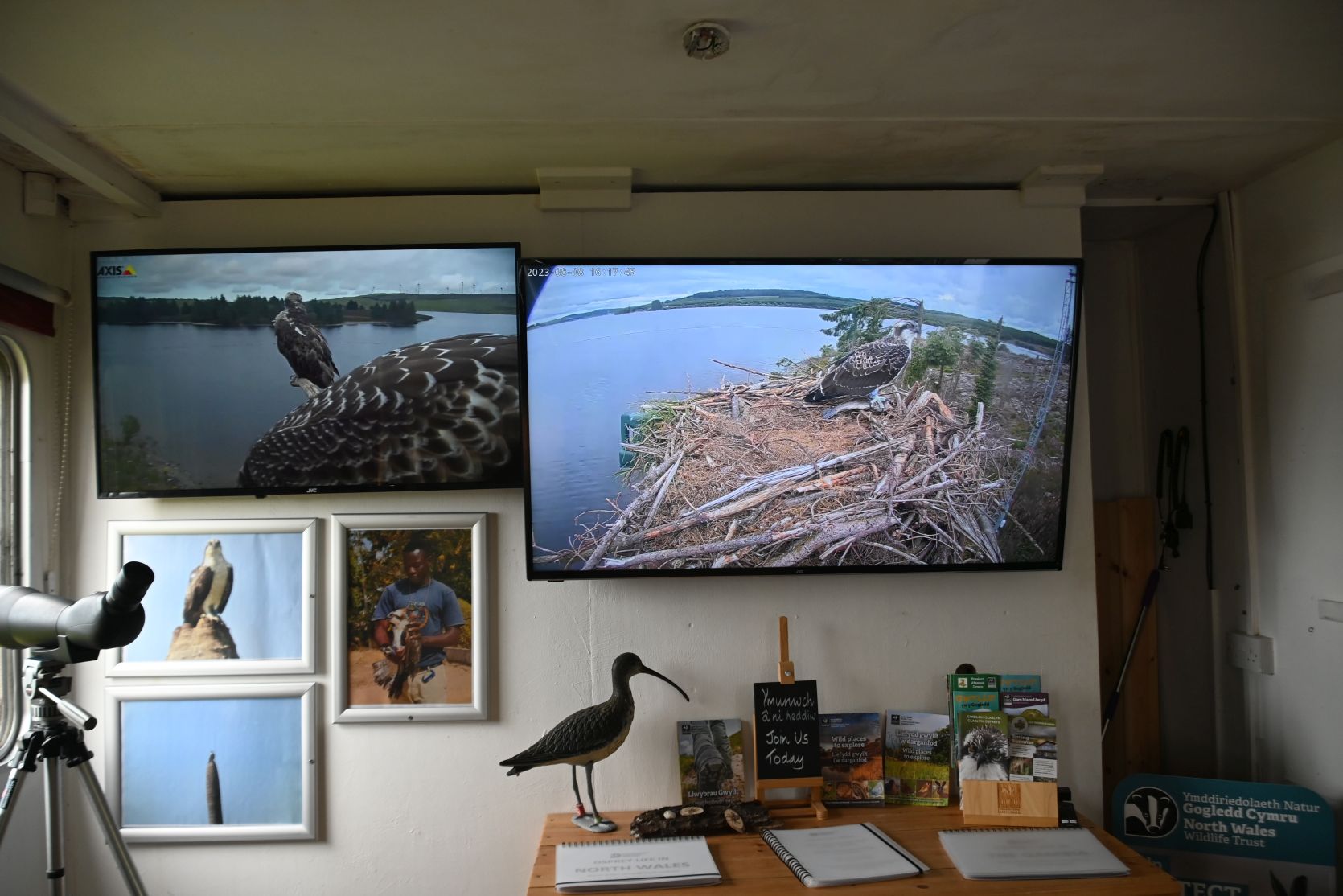 A live screen showed a nest on the other side of the lake, with mother, father and a couple of chicks.