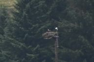 Via einer live Kamera konnte man Mutter, Vater und ein paar Junge sehen, in einem Nest am gegenüberliegenden Ufer.