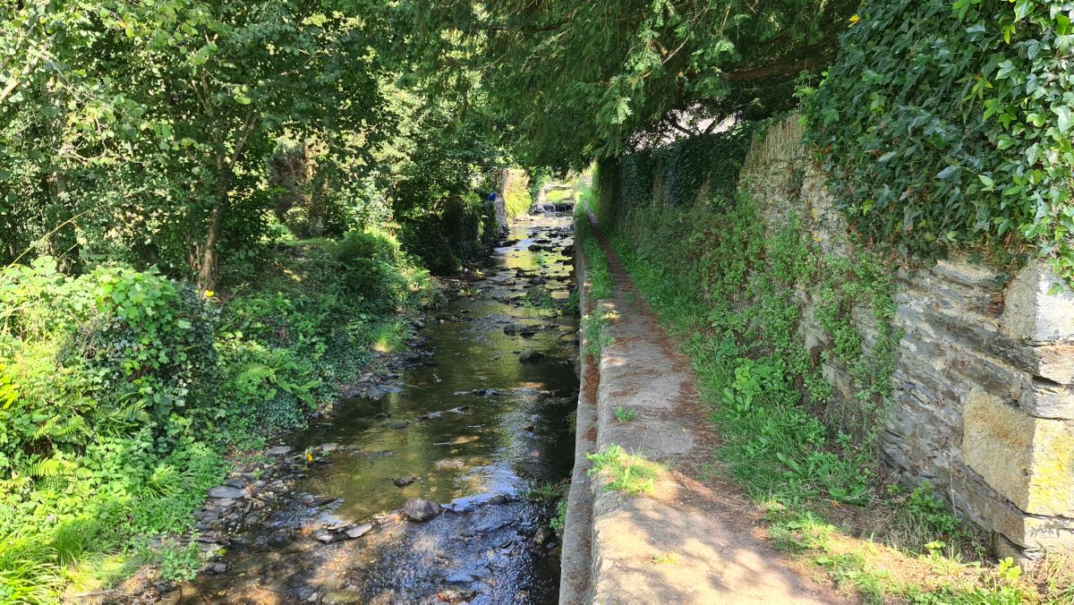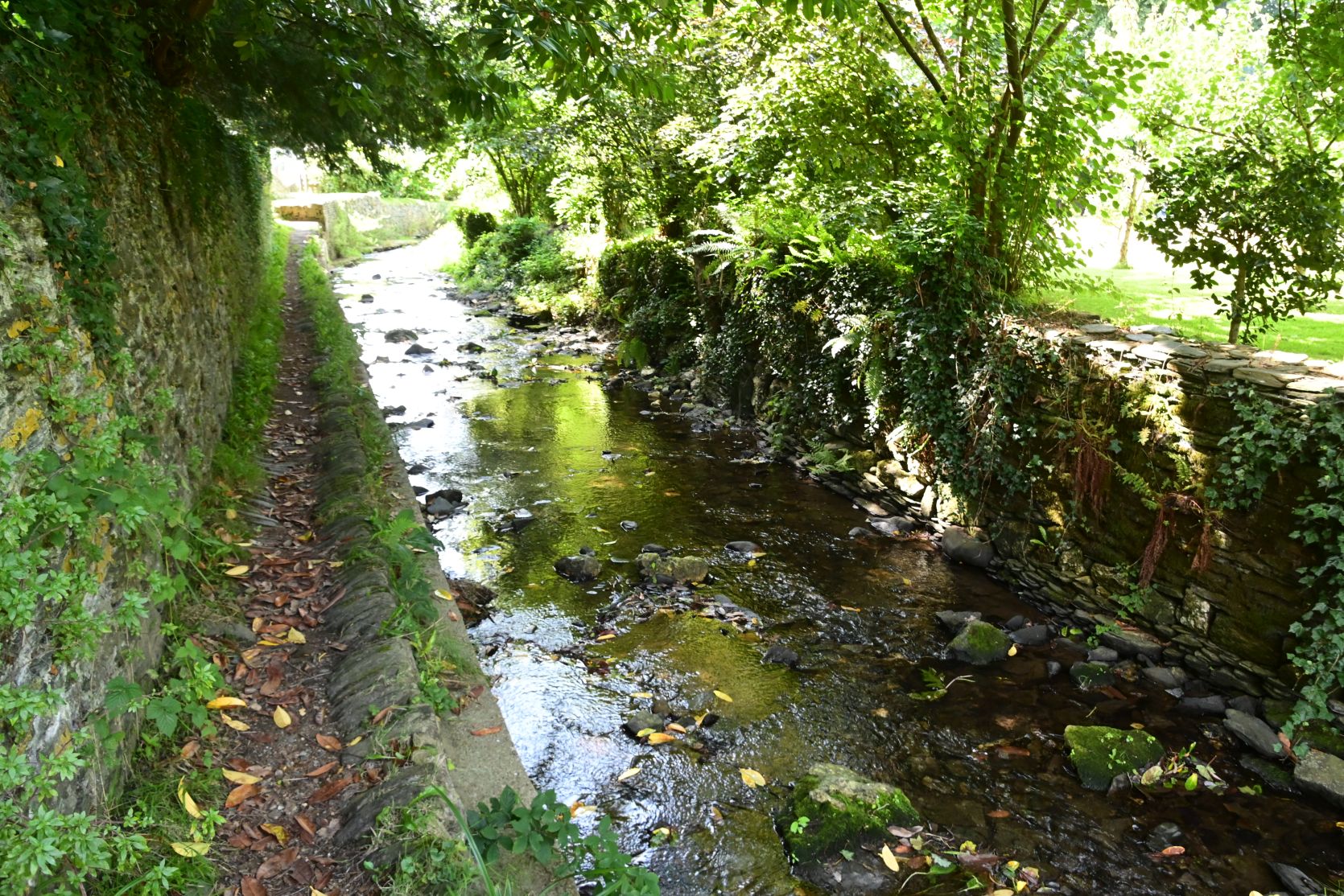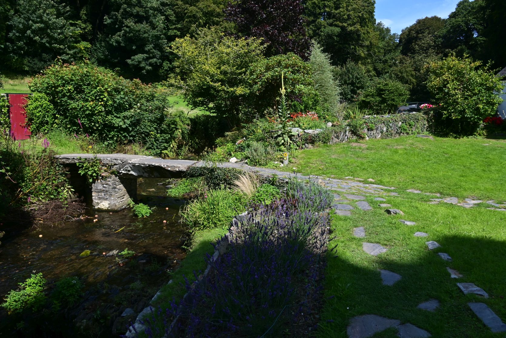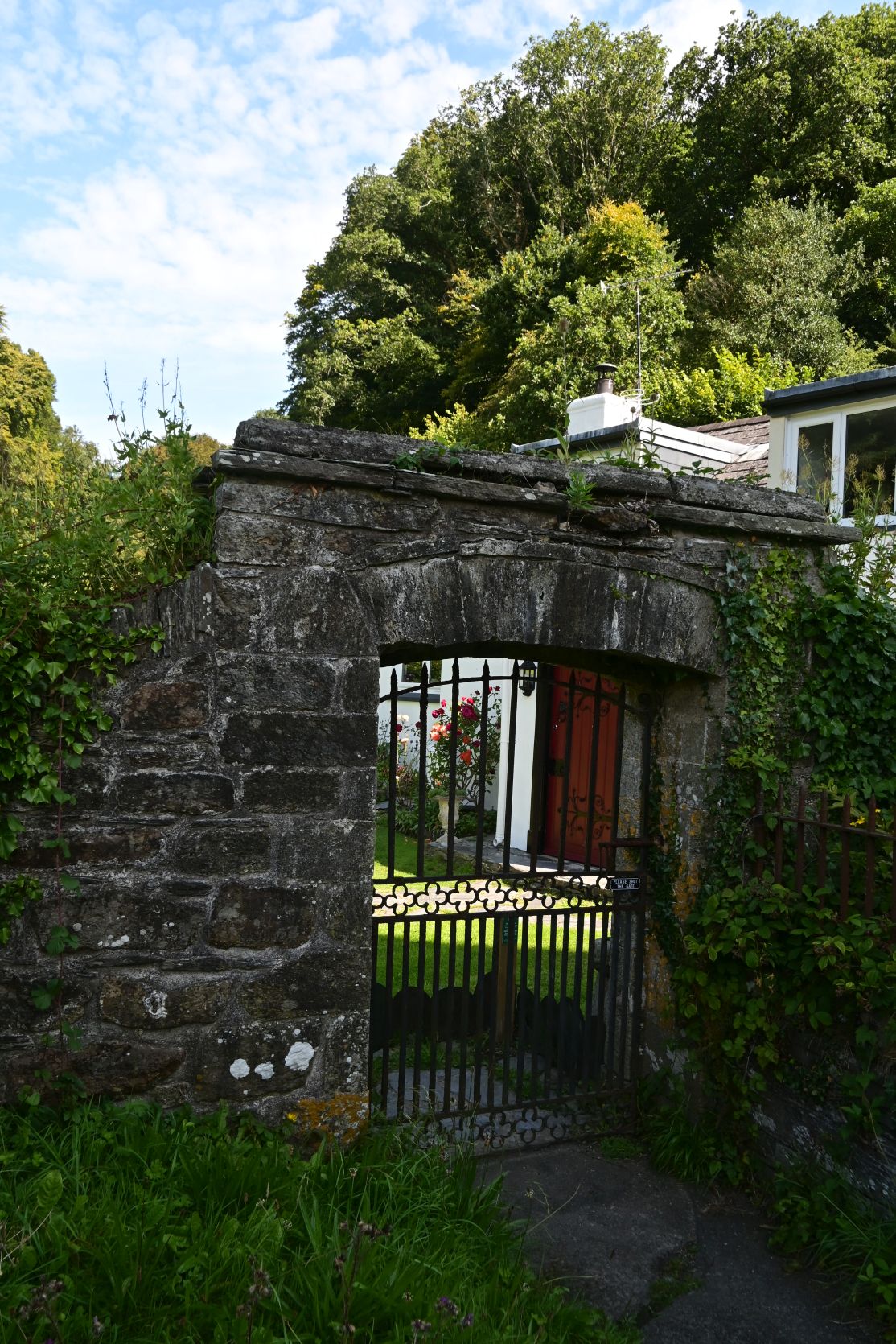 Next to the graveyard is a little brook. The path continues there, through the garden of a house.