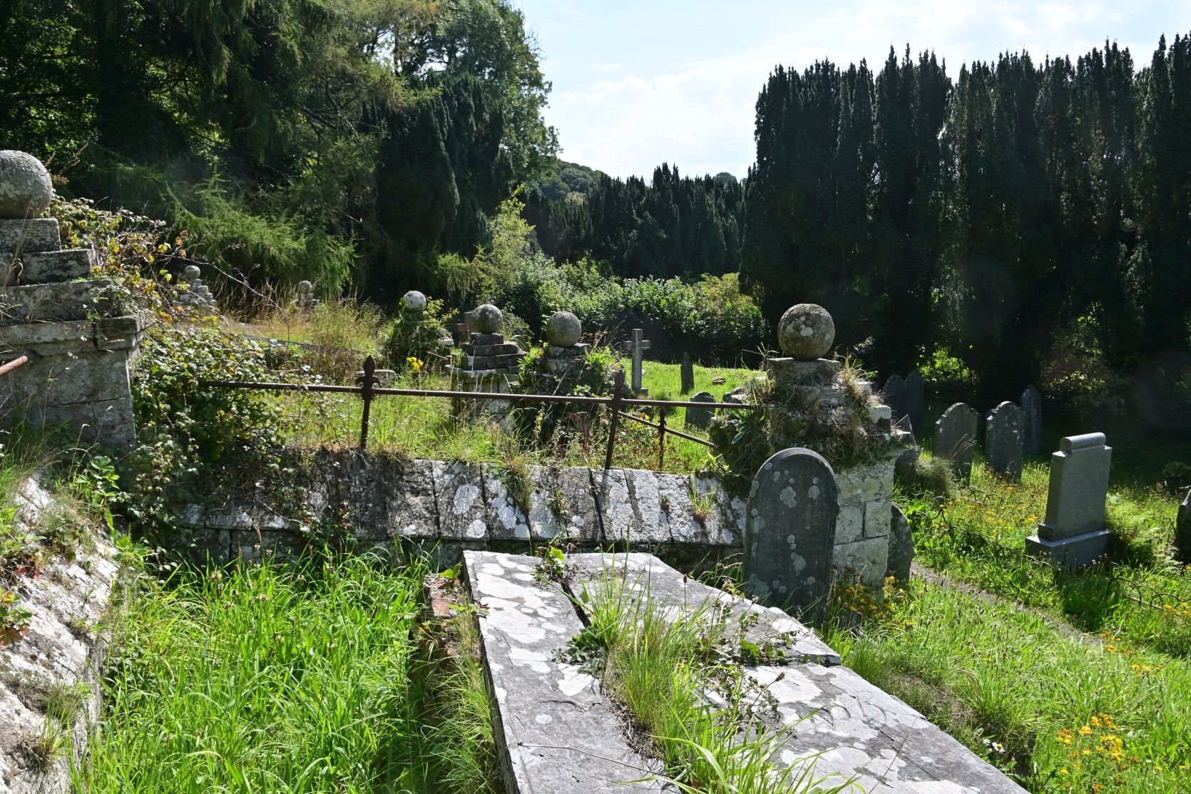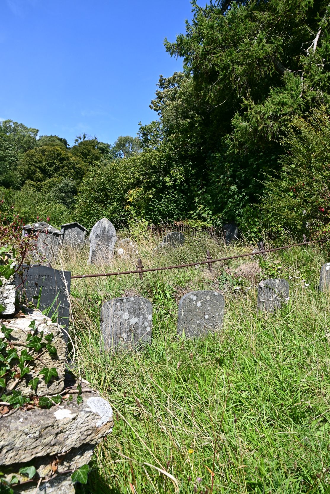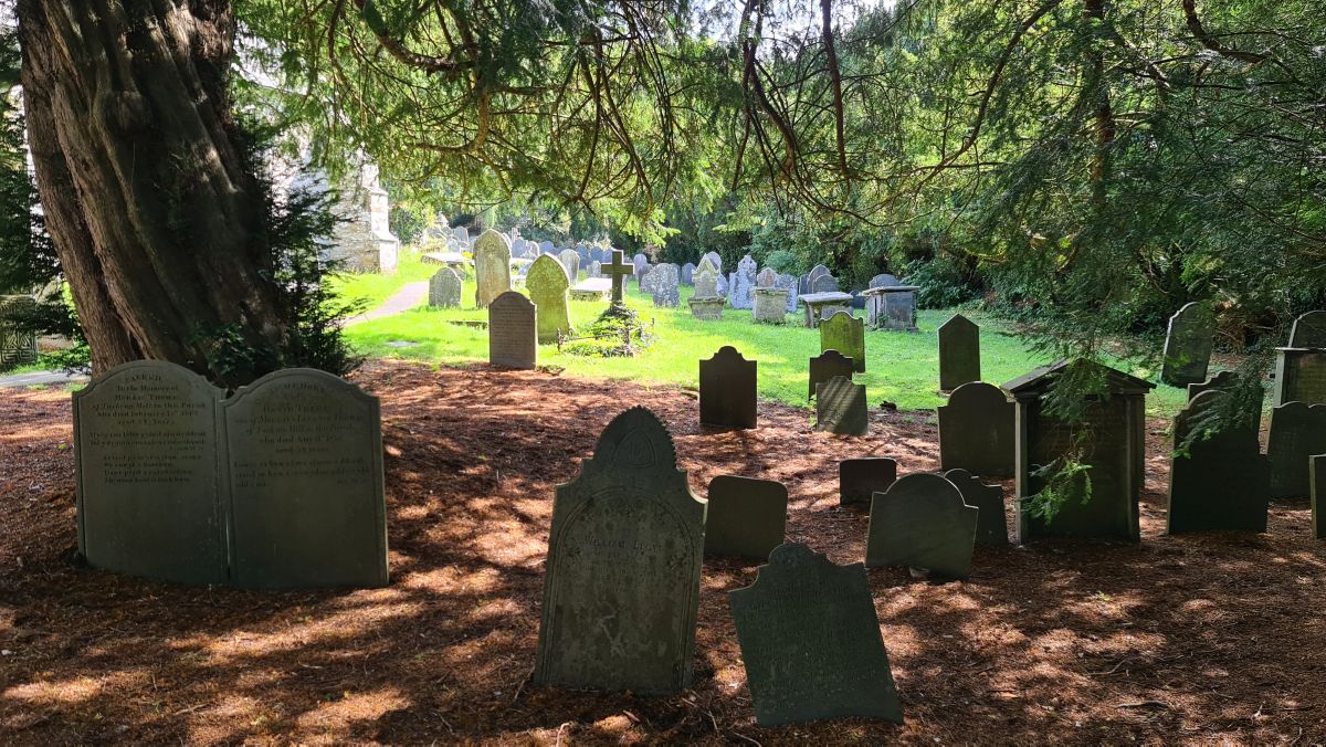 Viele Grabsteine sind ganz schief oder überwachsen.