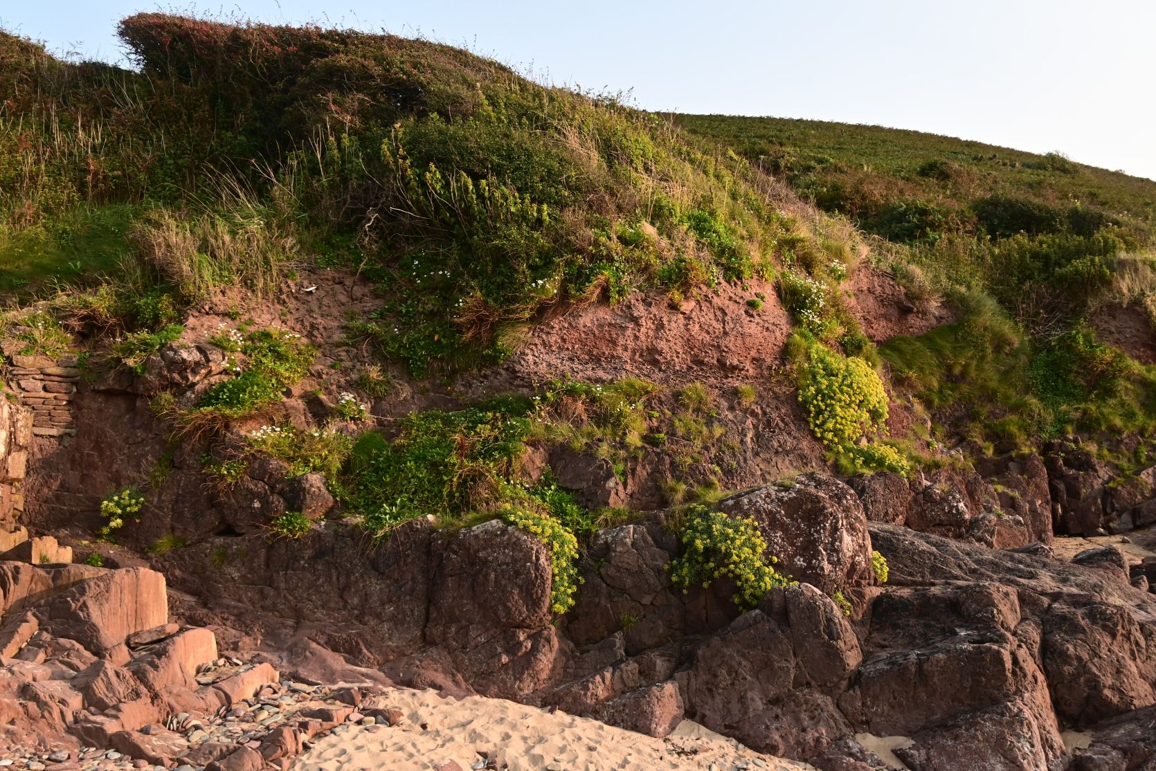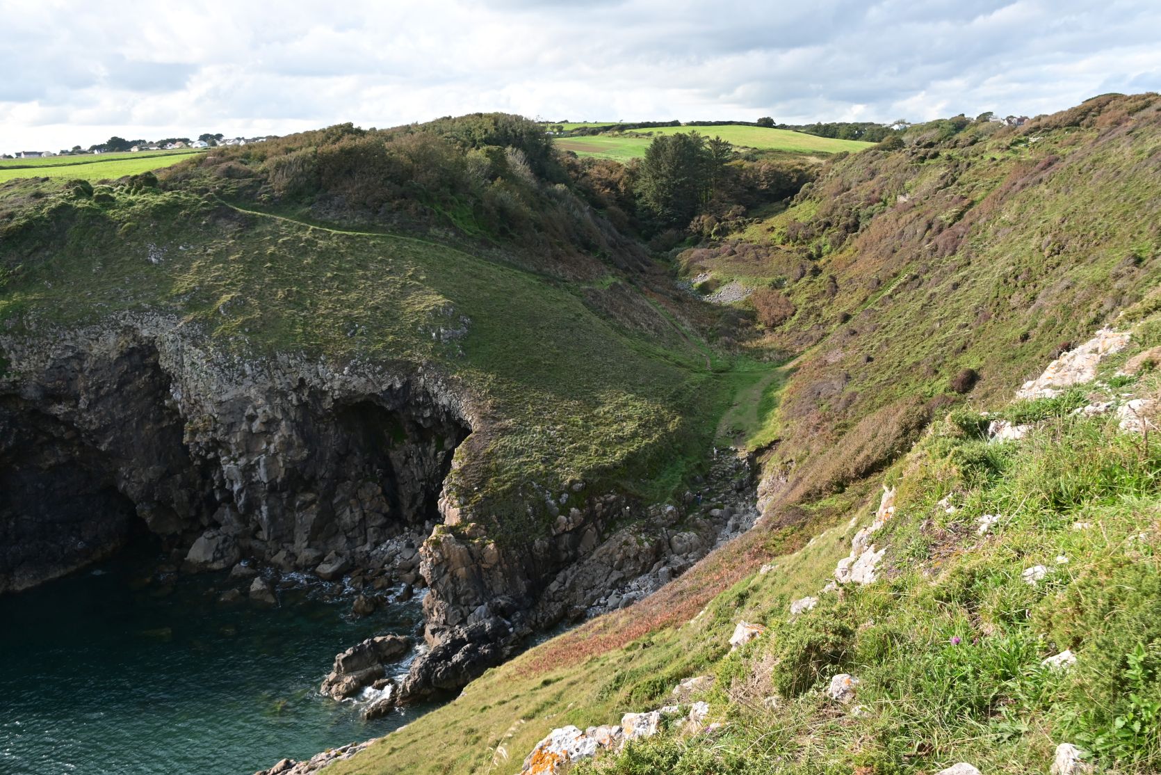Wir wanderten aber in die andere Richtung, zum Lydstep Point. Es gibt dort viele Felsbogen und Höhlen.