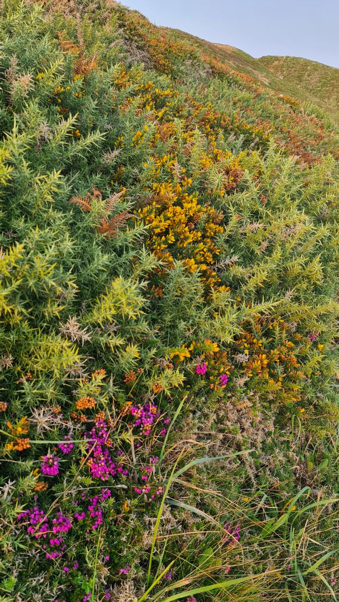 Gorse, heather and other flowers.