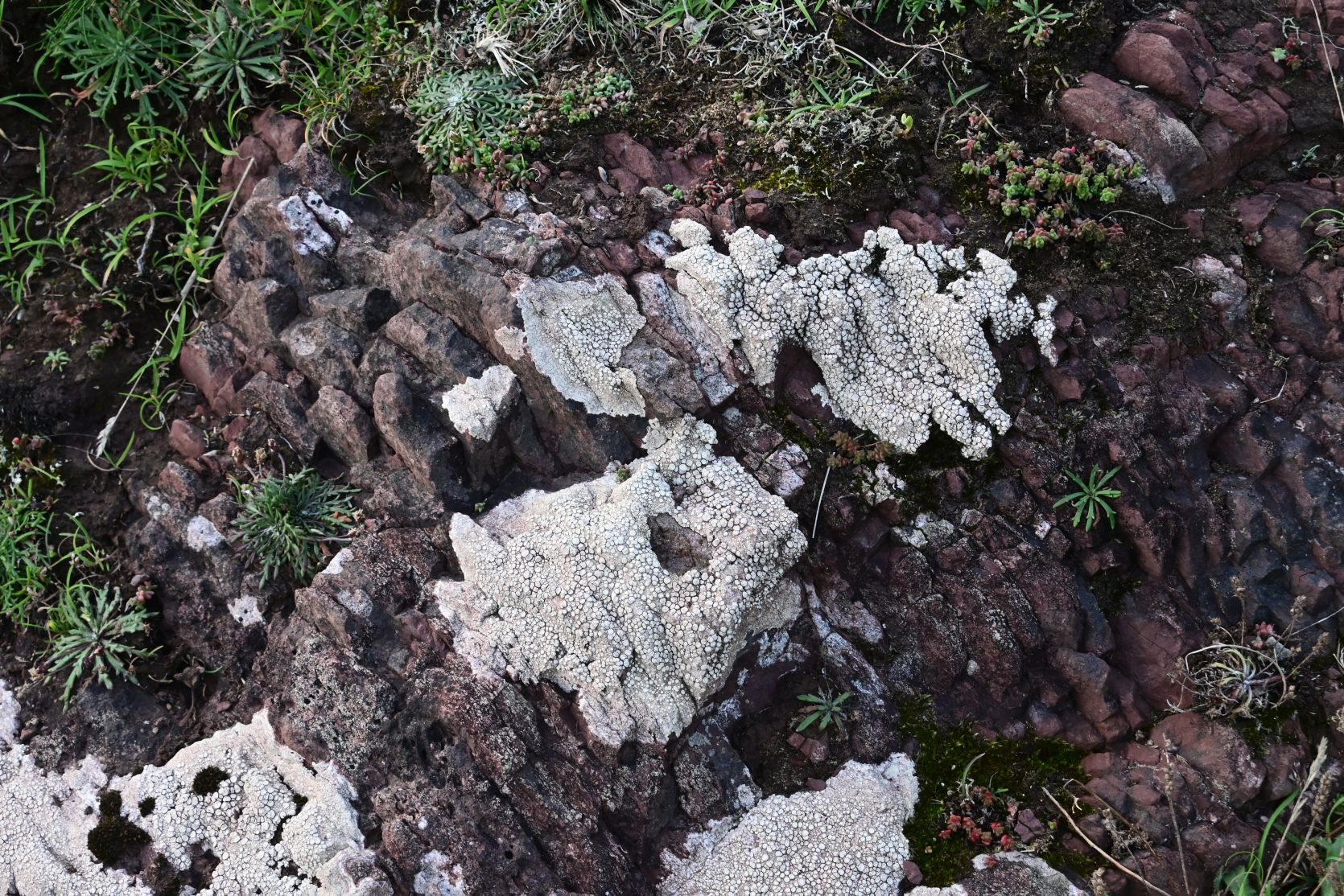 A lot of the stones had lichen growing on them.