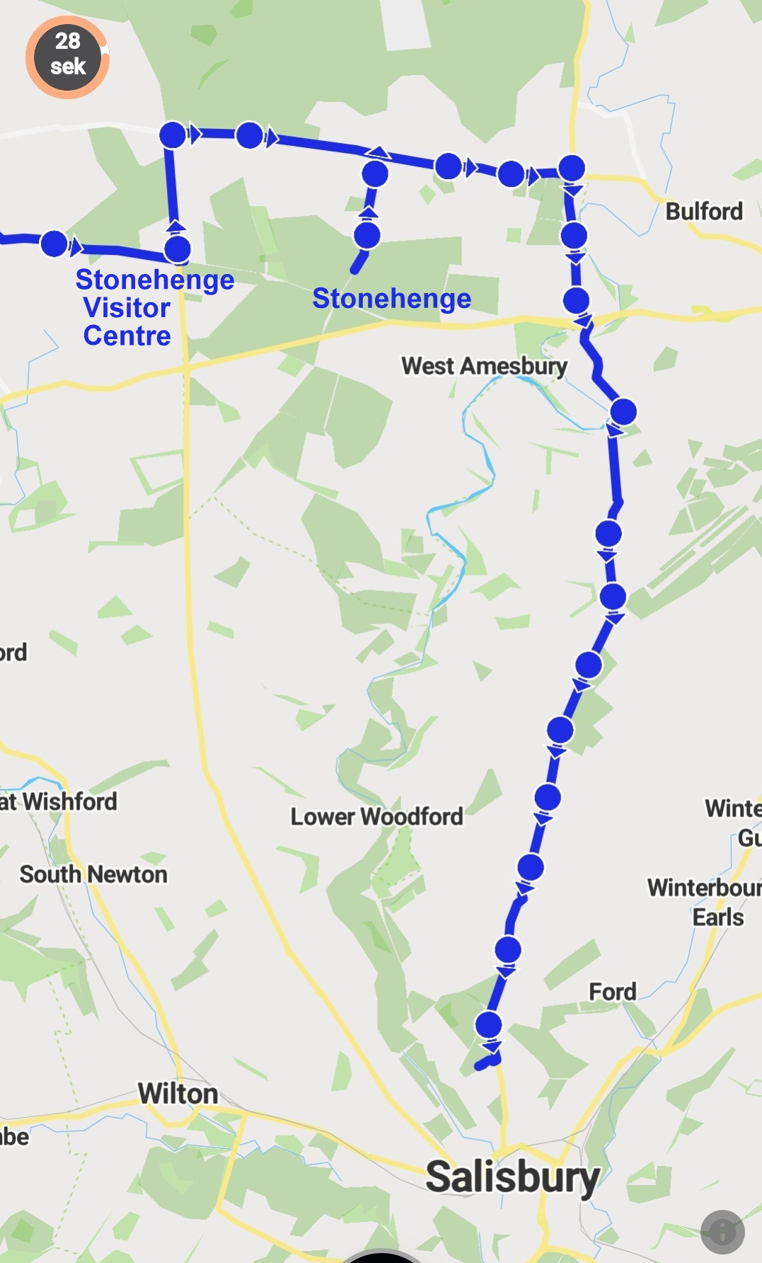 Nach diesem eindrücklichen Besuch fuhren wir nach Salisbury. Hier noch unsere zurückgelegte Strecke von jenem Tag.
