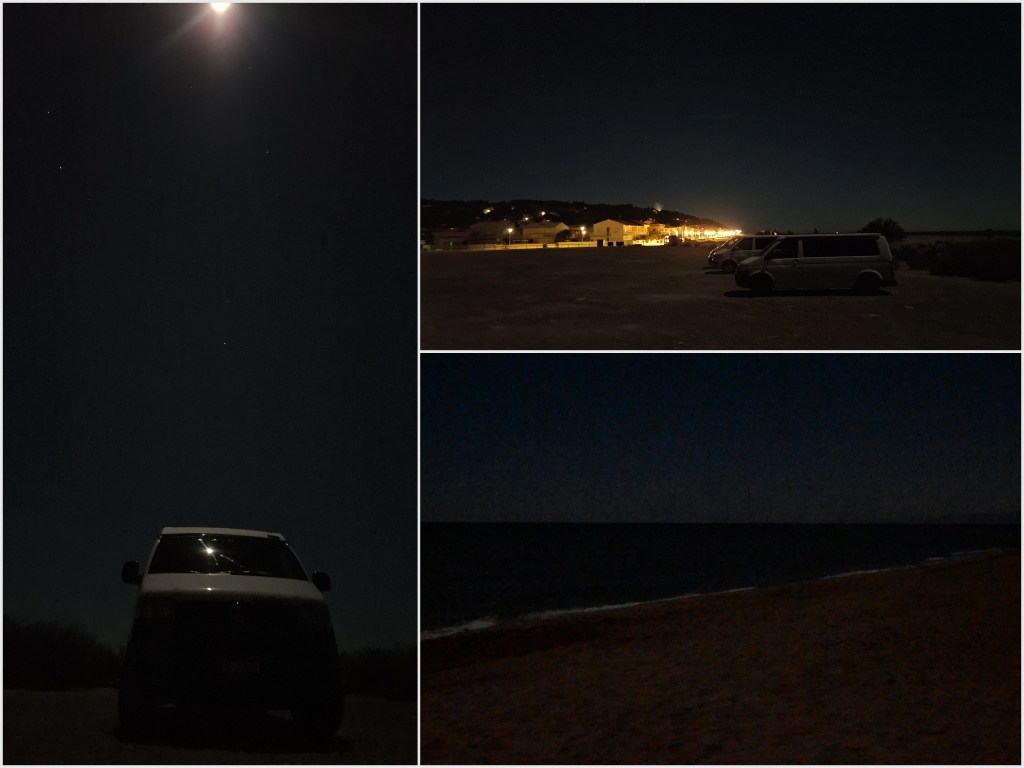 Die Fahrt Richtung Westen verlängerte den Sonnenuntergang 🙂 Der Vollmond beleuchtete die Landschaft zusätzlich.