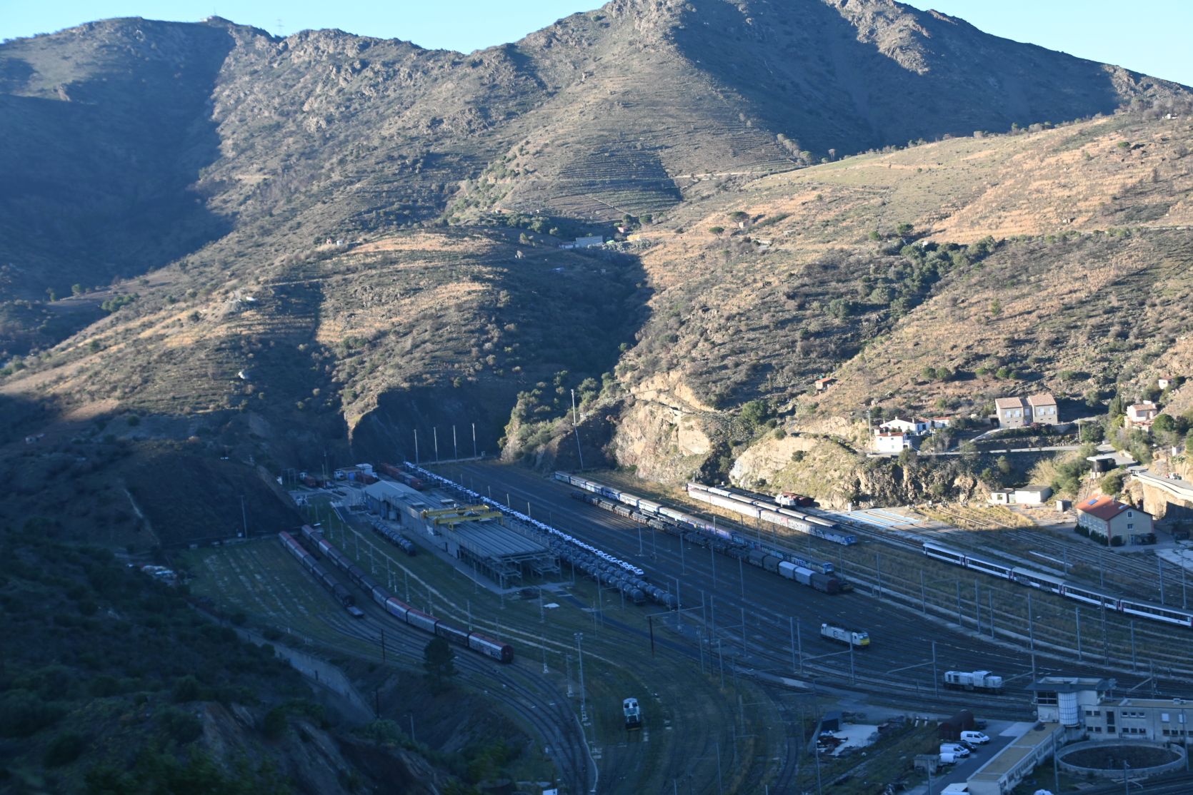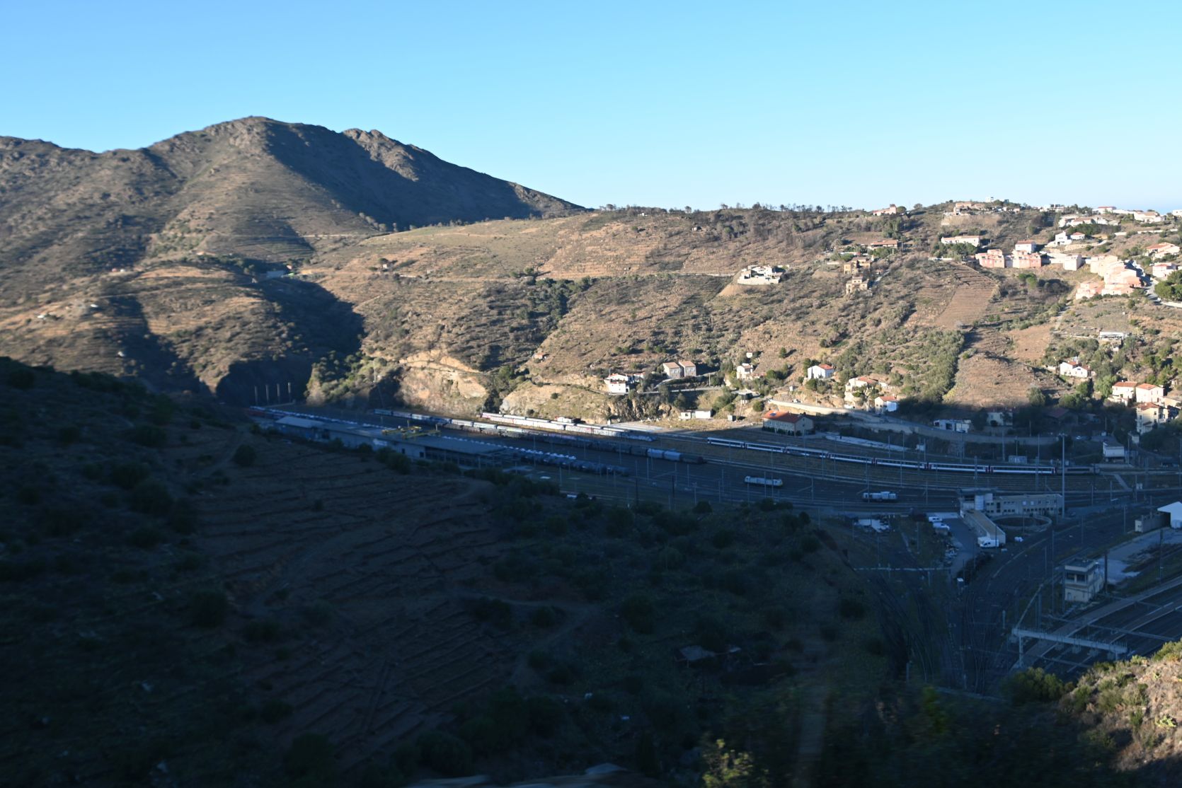 In Cerbère enden die Gleise der Bahnstrecke Barcelon – Cerbère mit Breitspur. Die französische Normalspur führt weiter in den spanischen Bahnhof von Portbou.