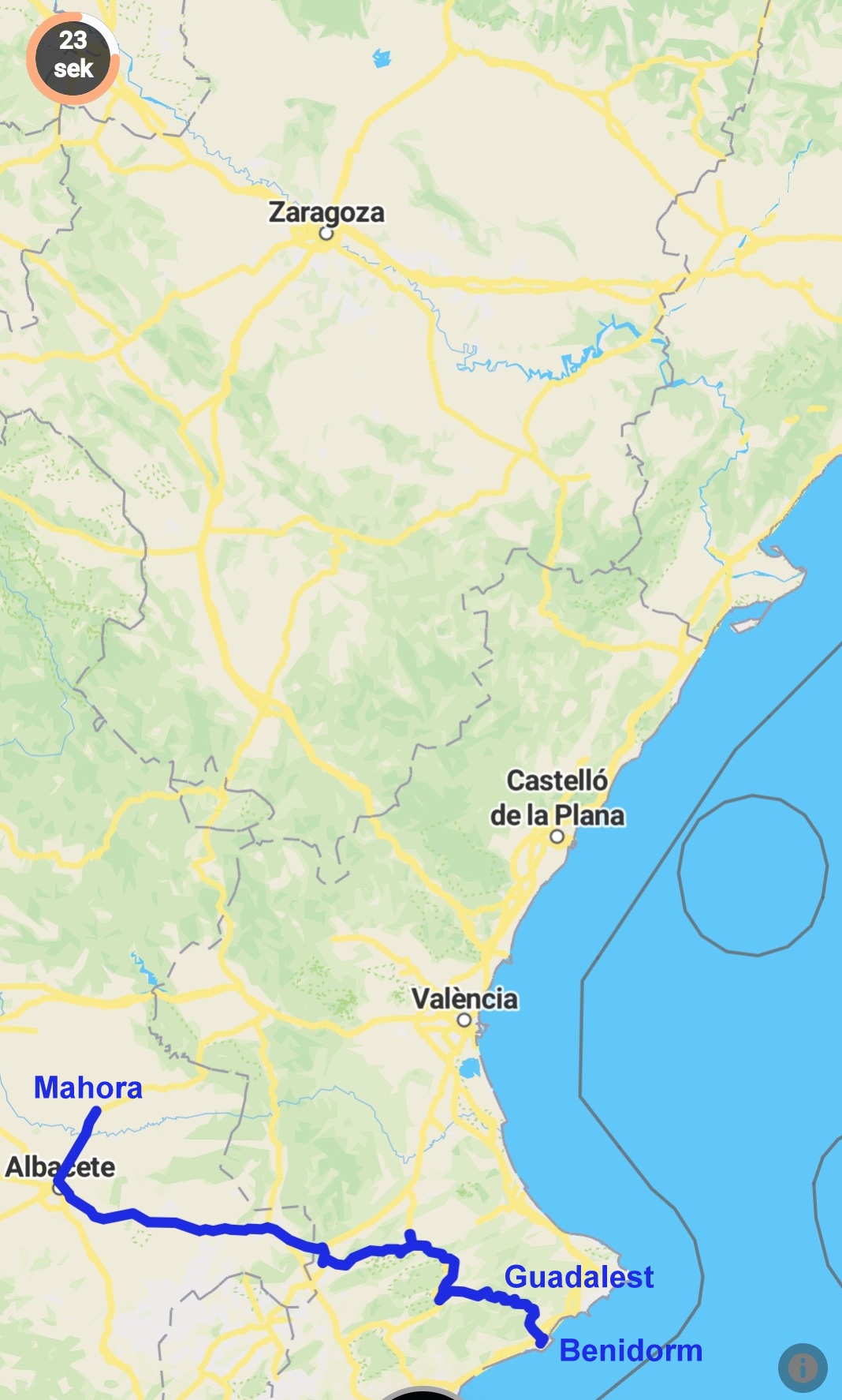 It was still quite cold, being up in the mountains. We decided to head for the coast (past Polop to Benidorm).