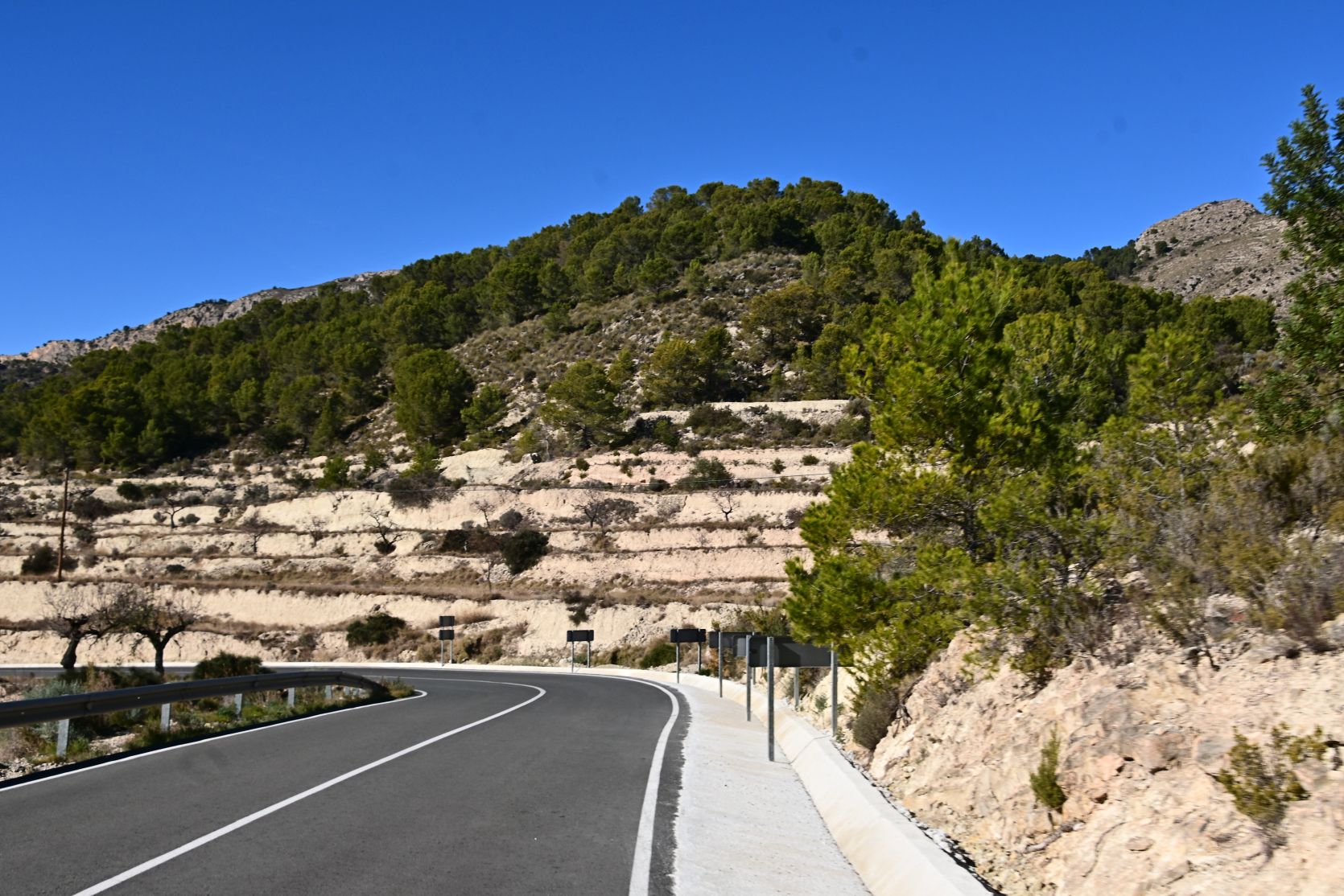 Wir fuhren auf den Strassen CV-758 und CV-775 in die Hügel hinauf, vorbei an Finestrat, Relleu und Aigües. Es war eine interessante Fahrt, mit all den Terrassen, den Bergen und den kurvenreichen Strassen.