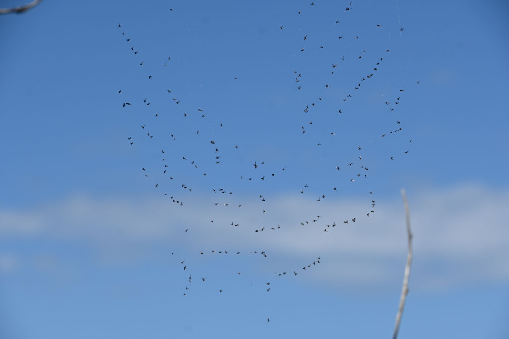 Insects caught in a spider’s web and plants in the water.