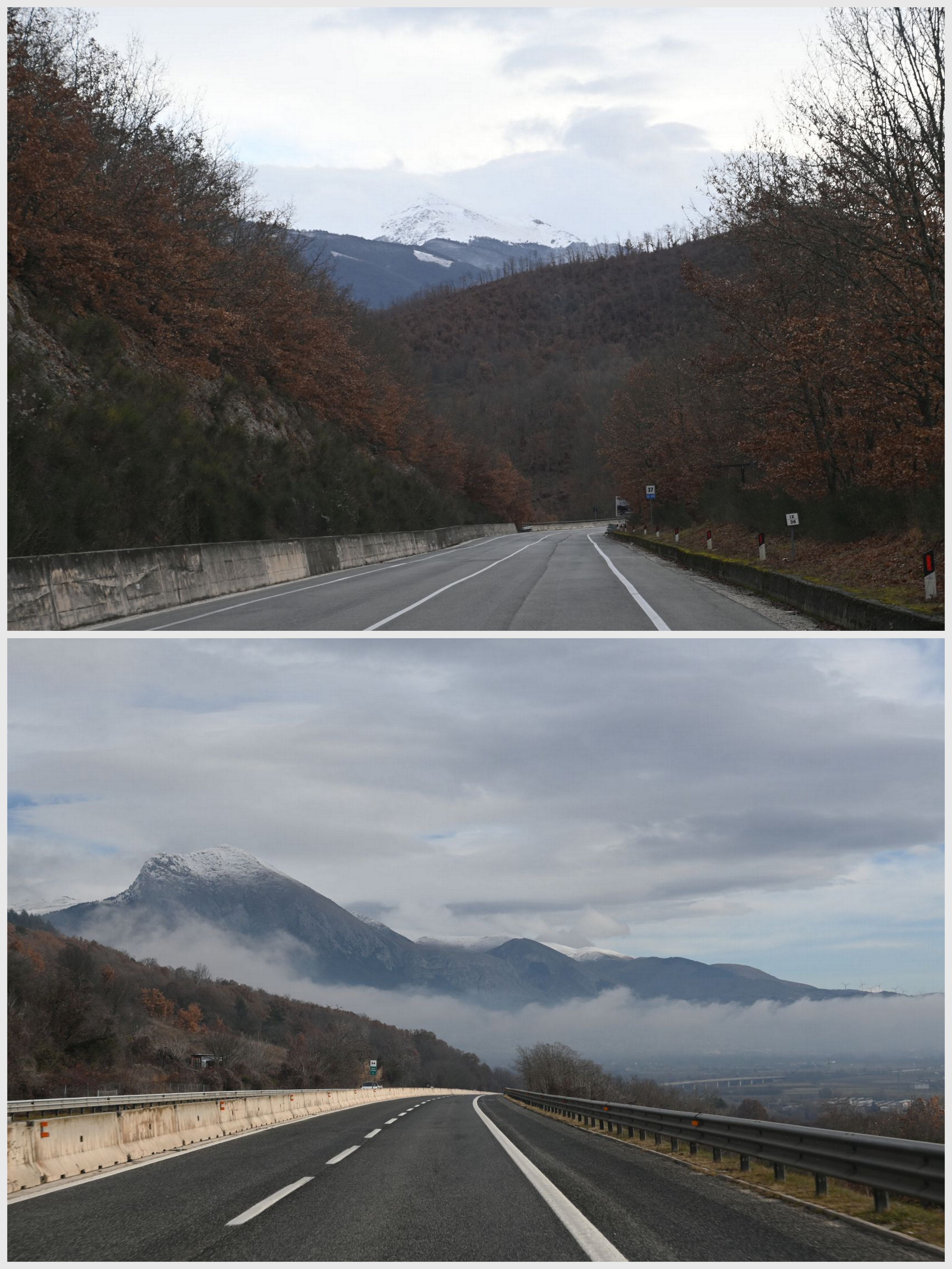 Further east towards the Adriatic Sea. Snow on top of the mountains! And we thought we were going somewhere warm…