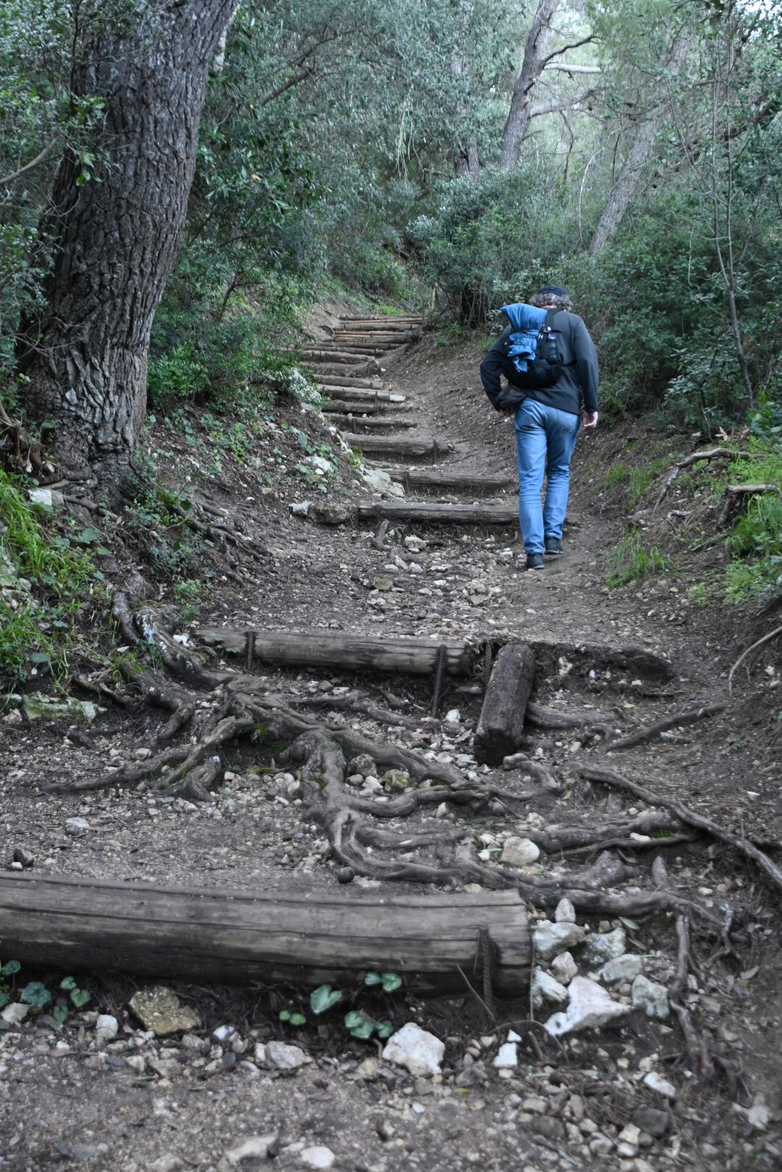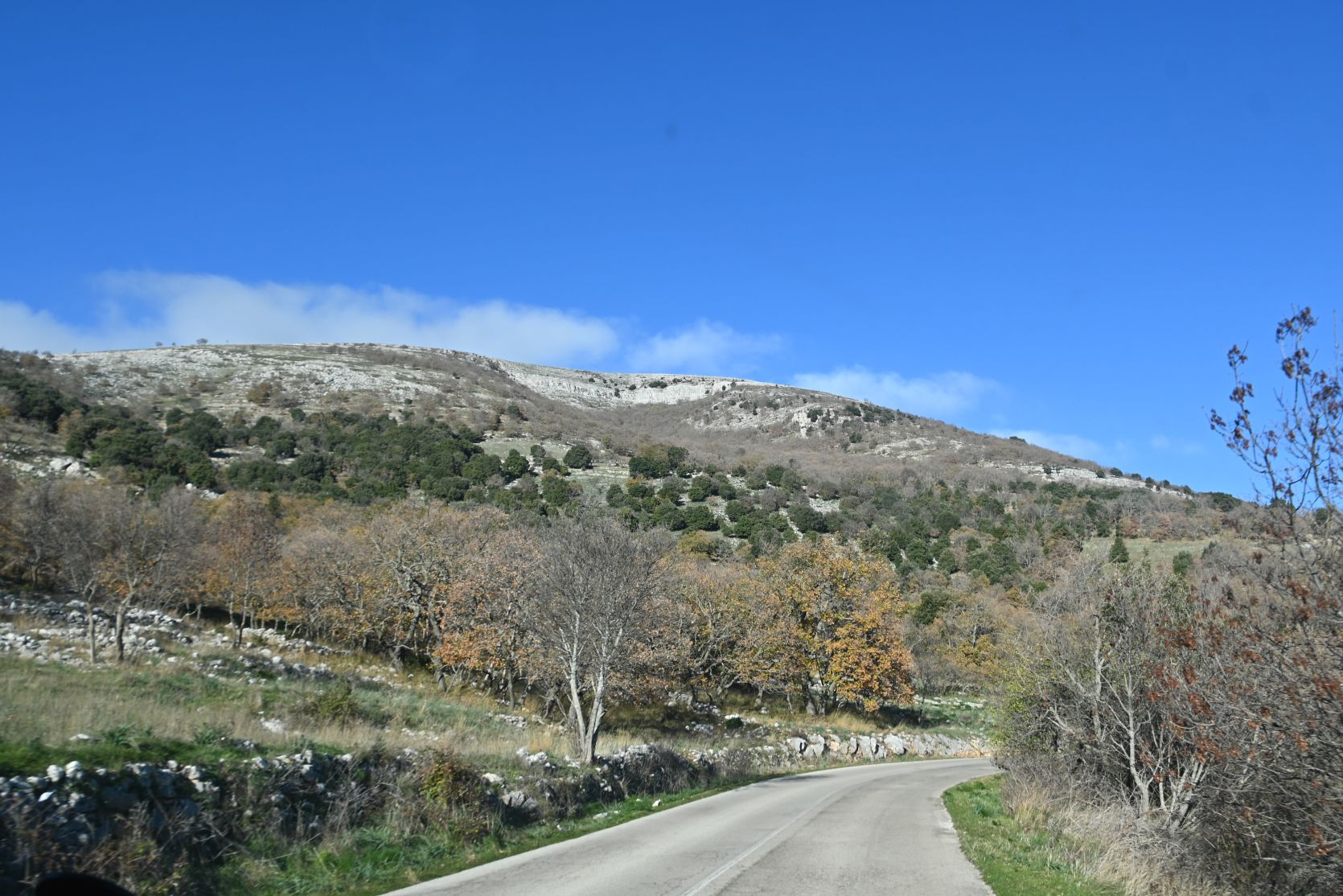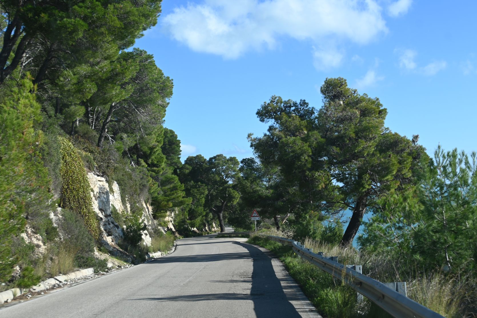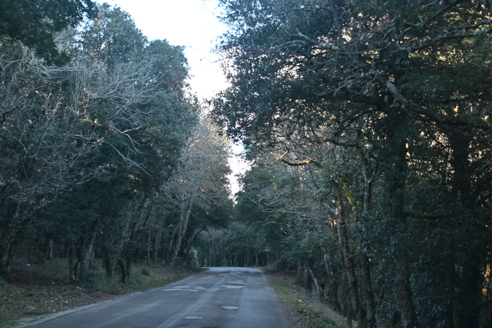 We then followed the road through the national park. It led through holm oak and beech woods. After every kilometre, there was another road sign to indicate winding roads for yet another kilometre 😉