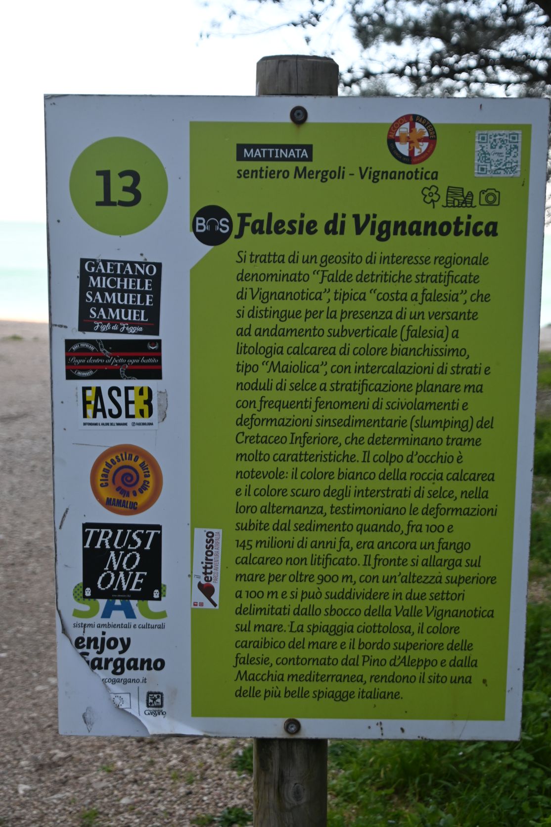 Bald sahen wir die weissen Felsen von Vignanotica.