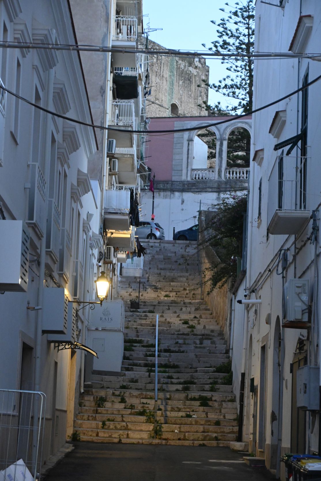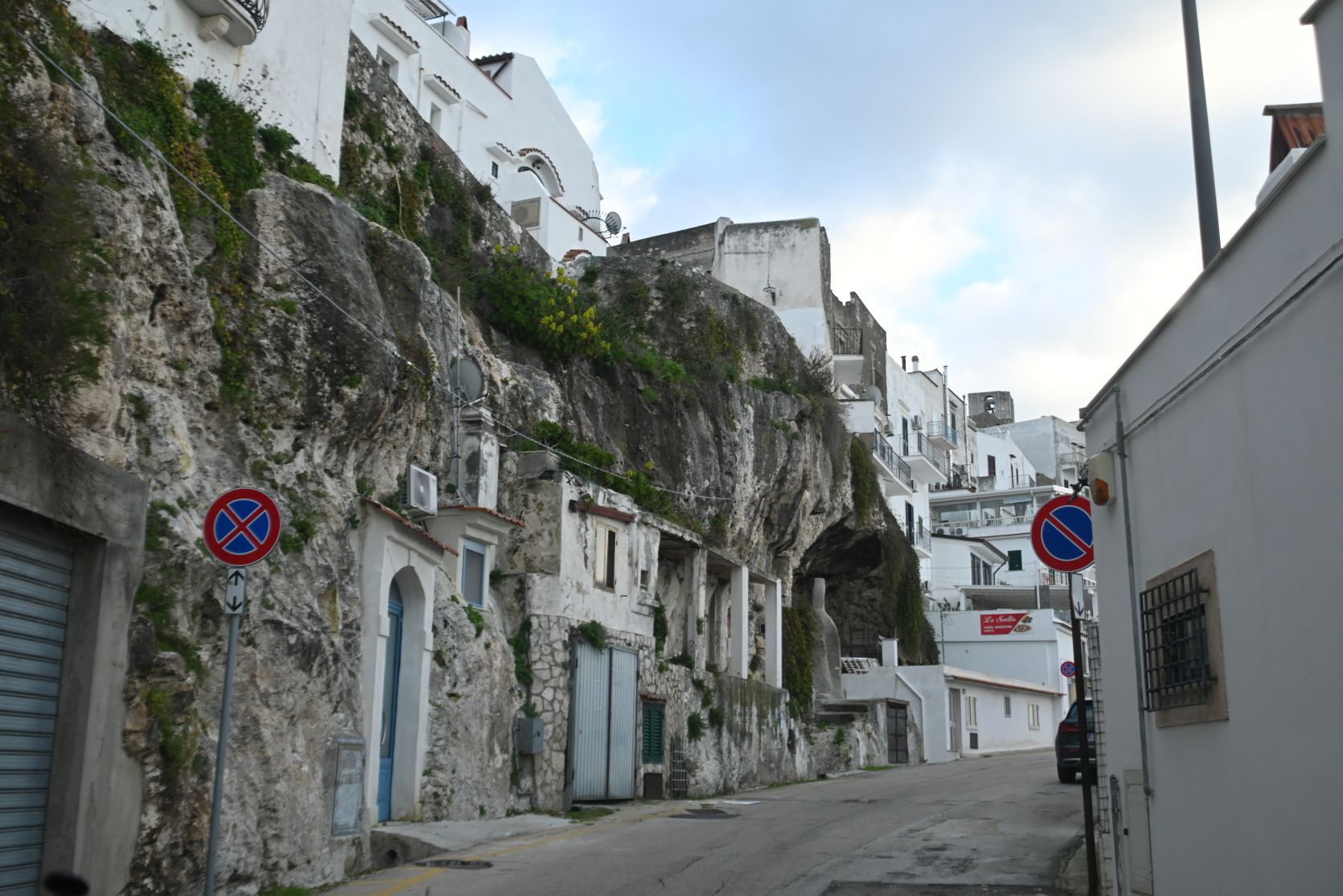 The village on top of the hill is Monte Sant‘ Angelo. The terraced houses are very old. There are olive trees everywhere.