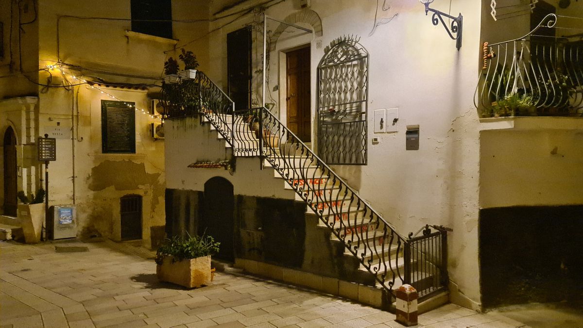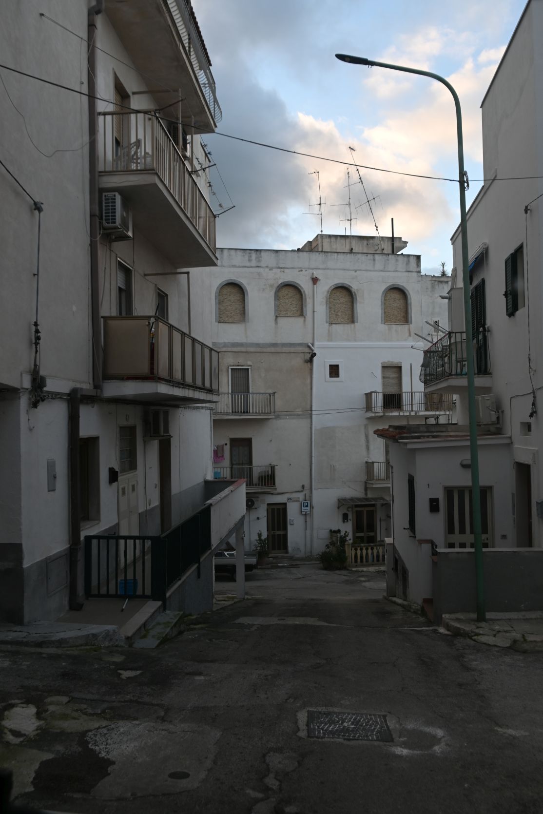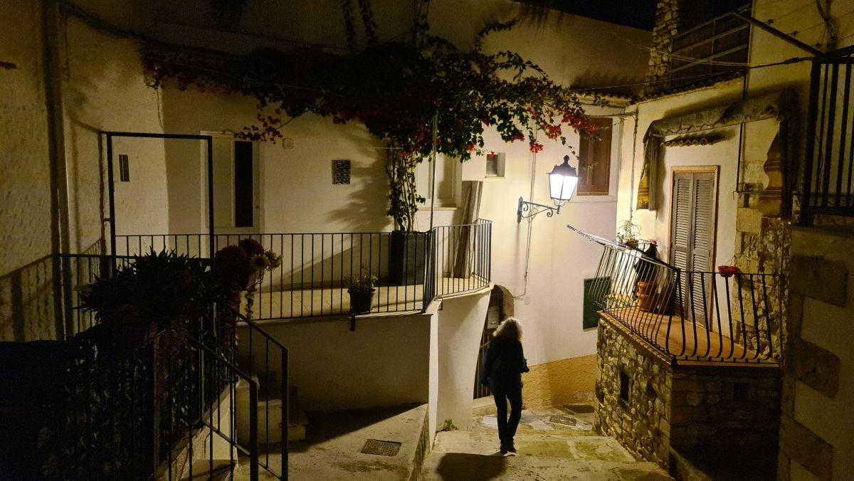 Das Dorf auf dem Hügel heisst Monte Sant‘ Angelo. Die Reiheneinfamilienhäuser sind sehr alt. Überall hat es Olivenbäume.