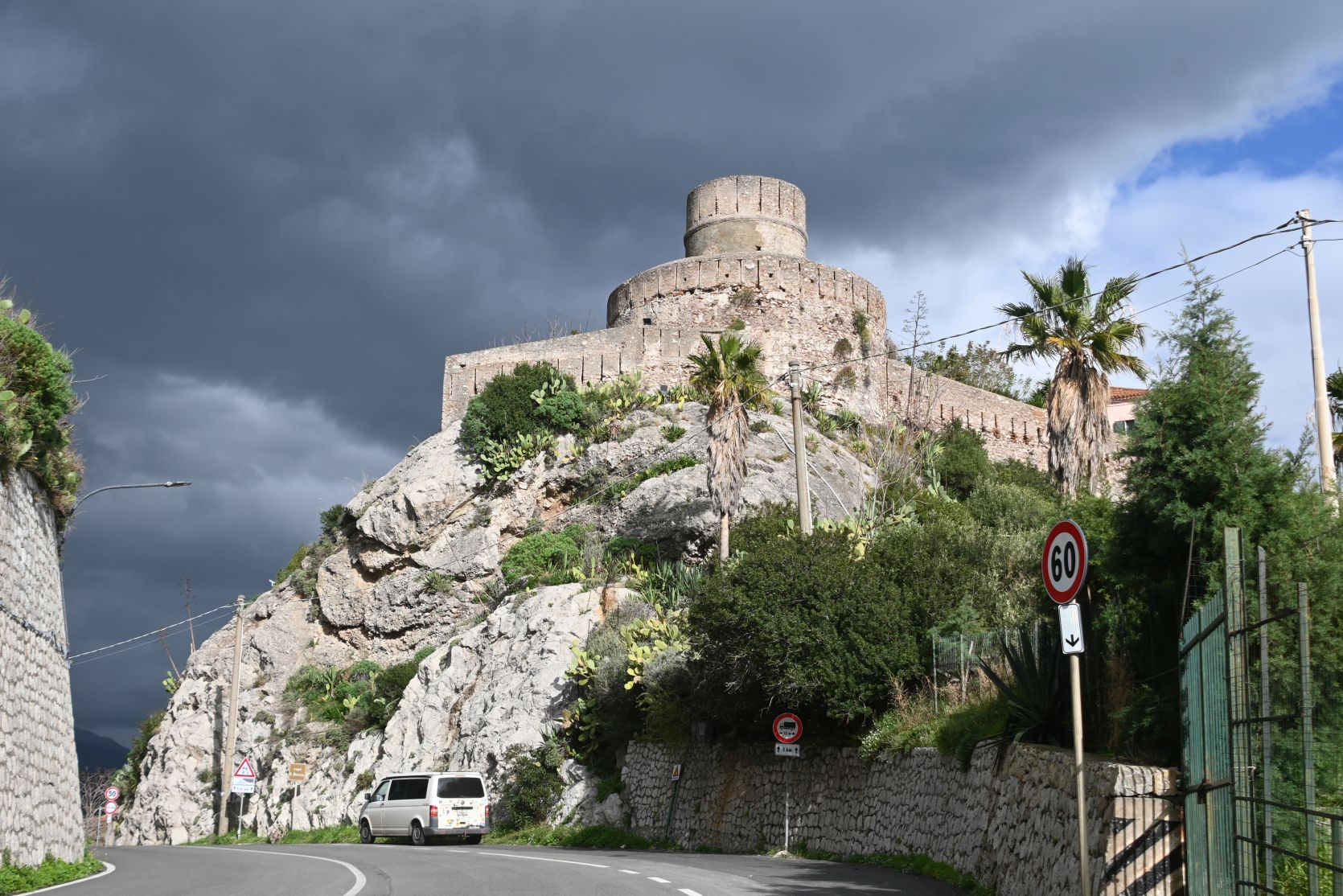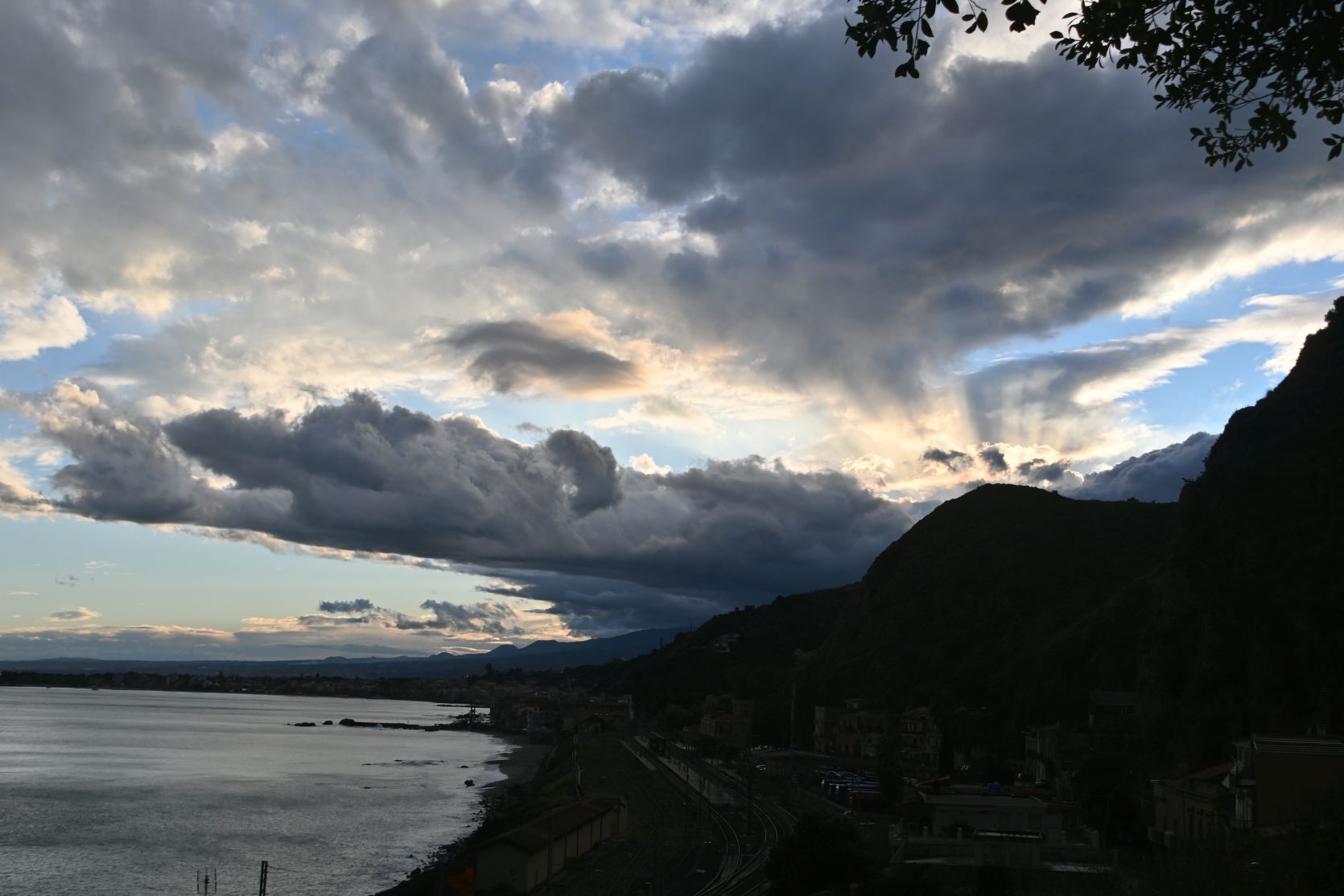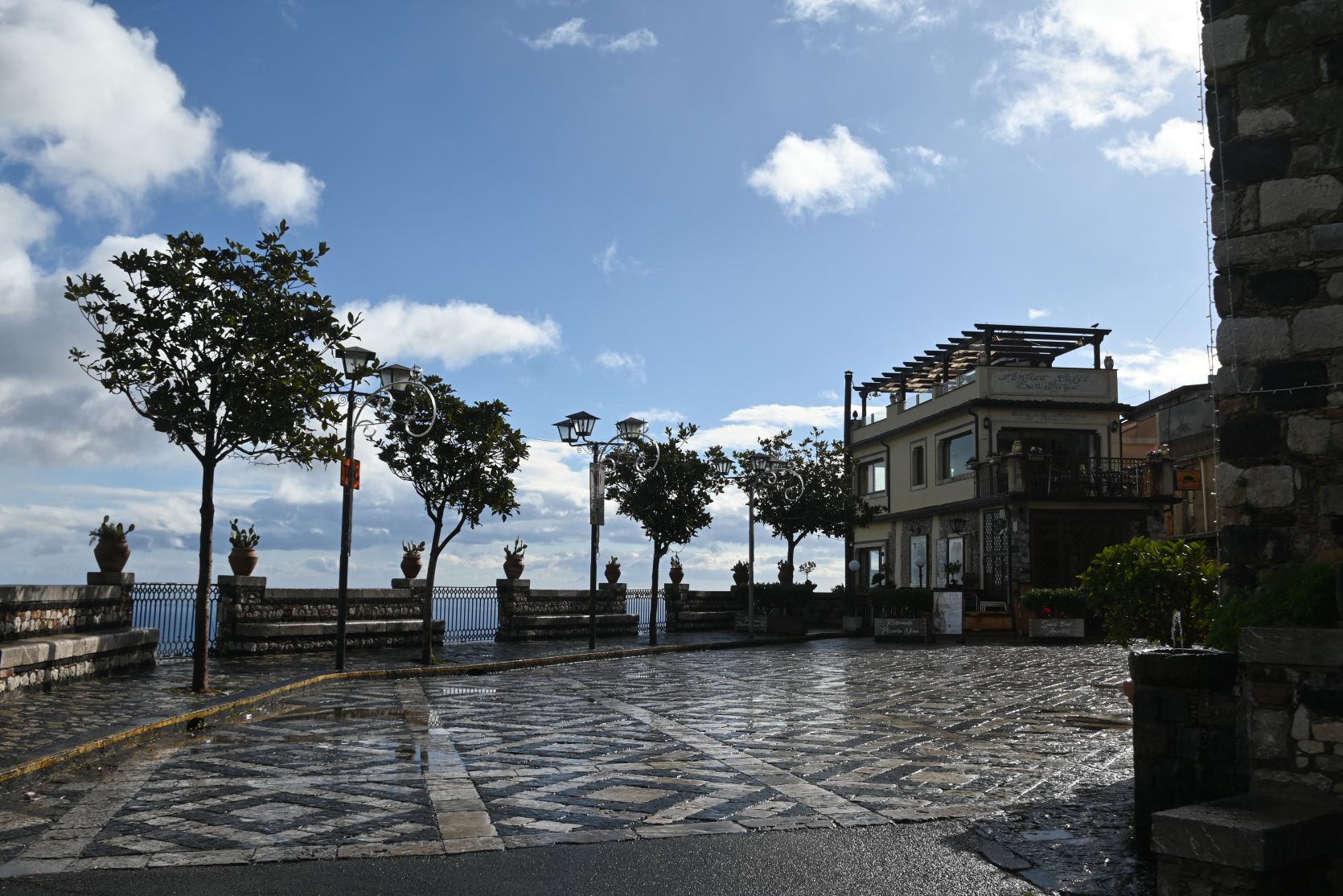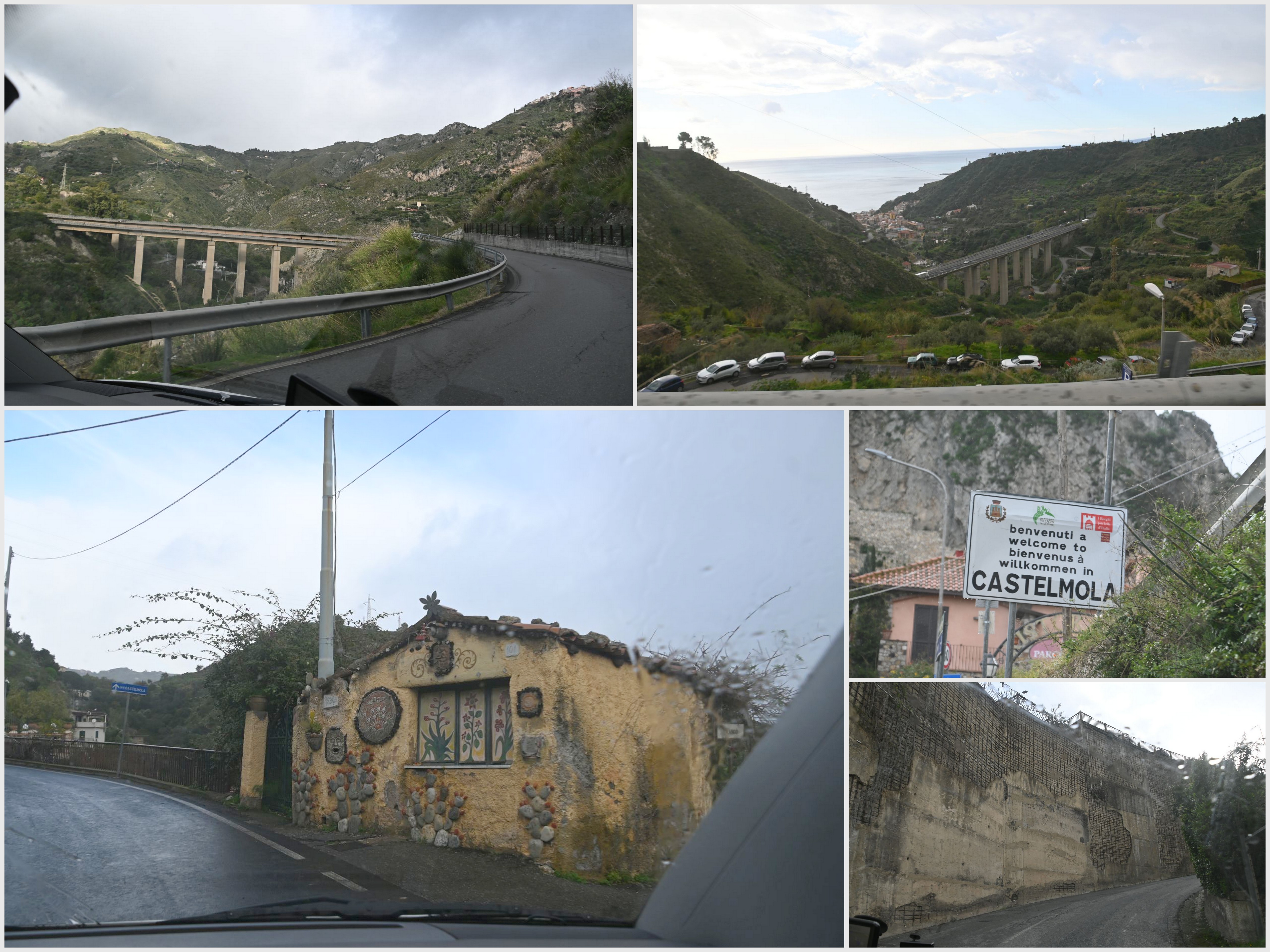 We then drove up, past Taormina, to Castelmola. First the weather was rainy, but it soon turned brighter.