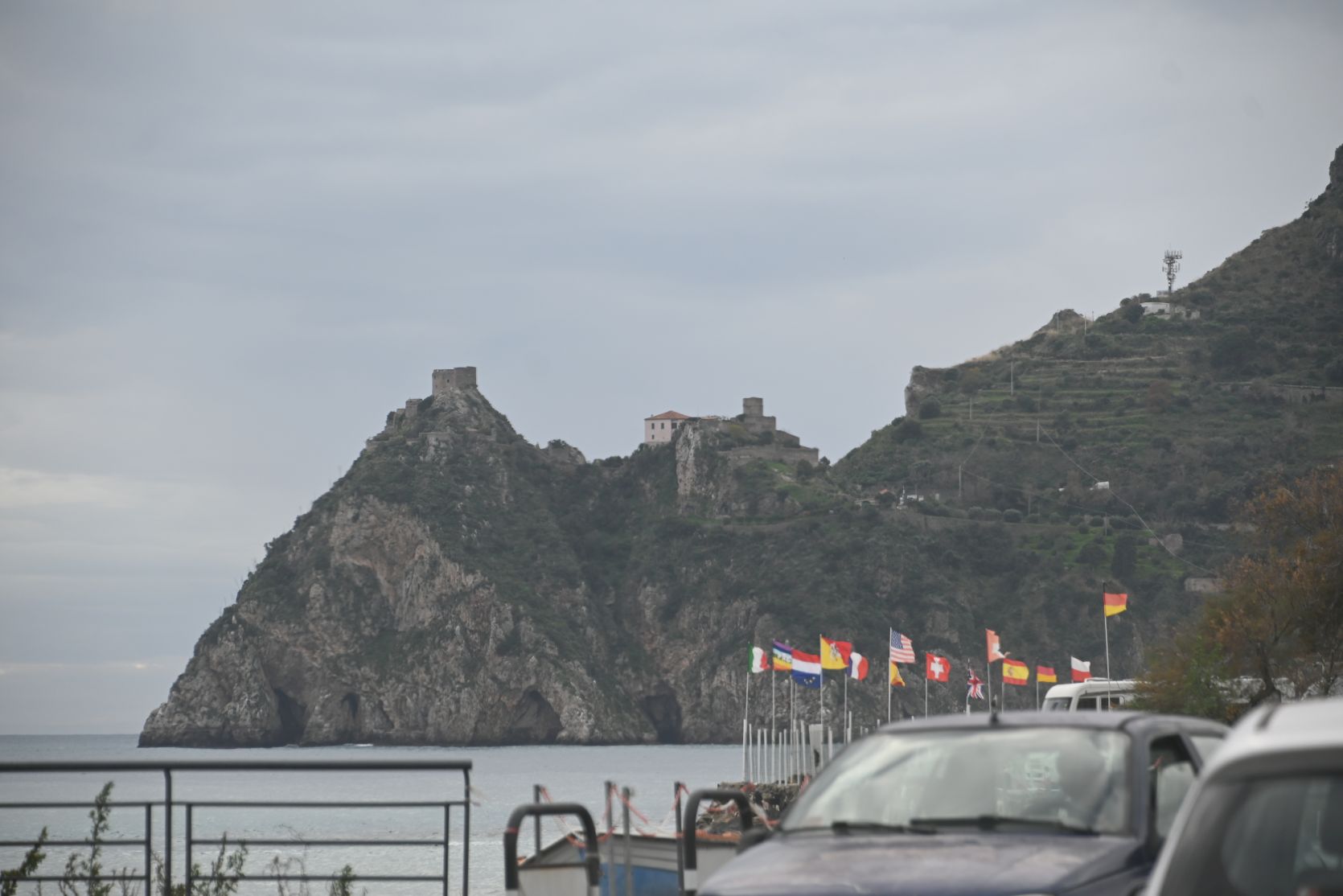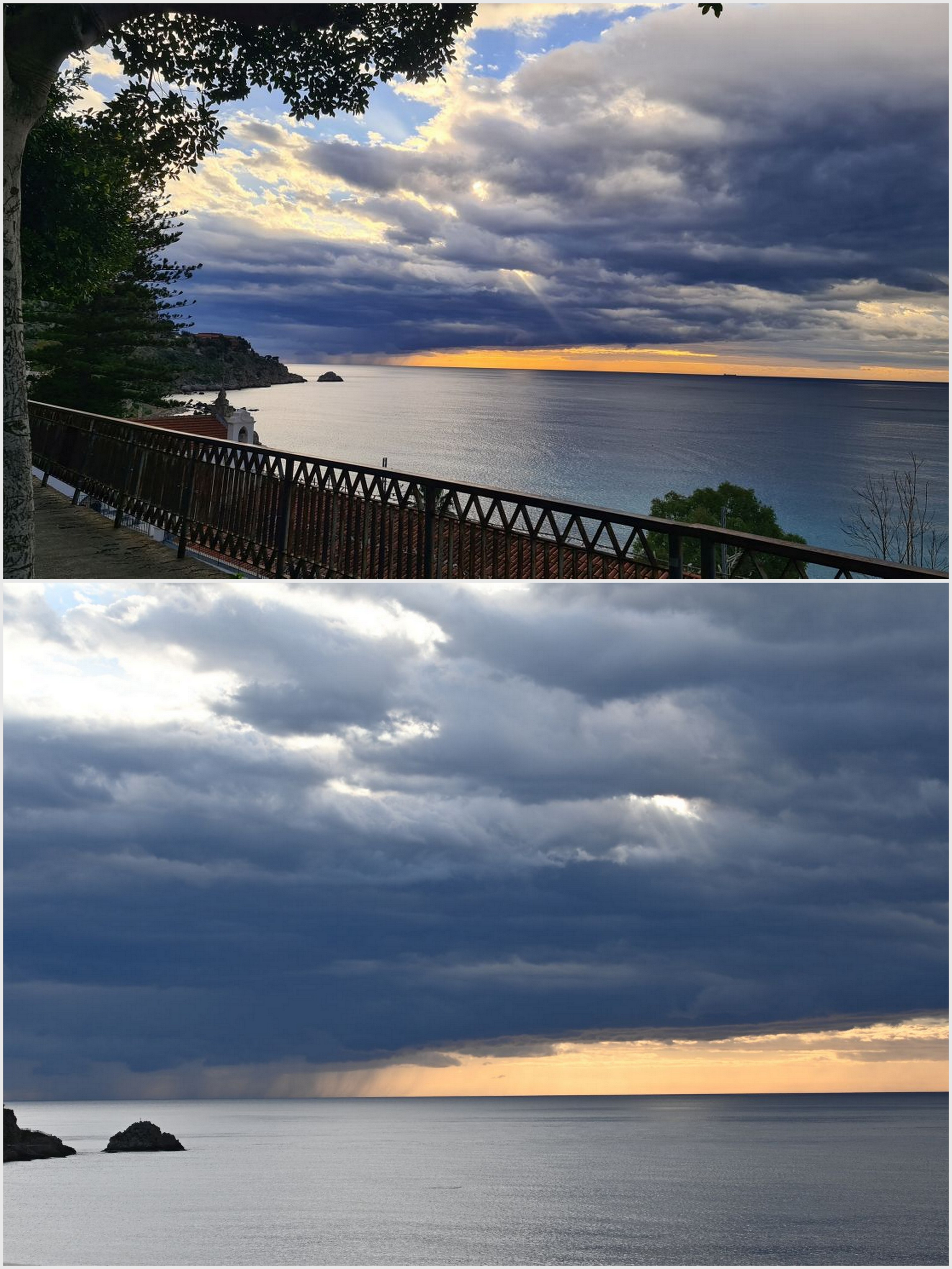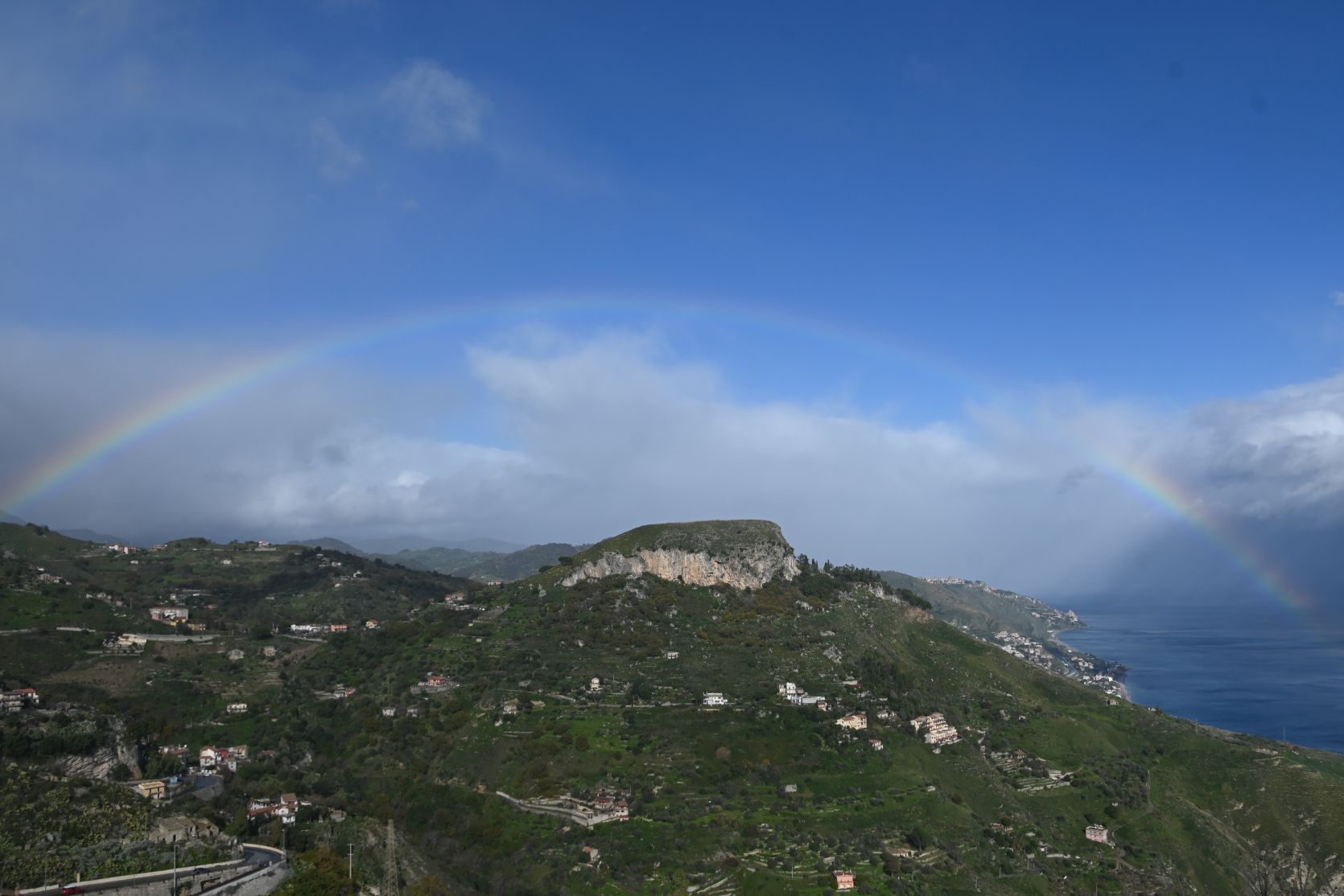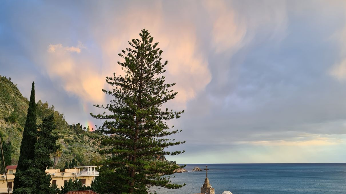 We then drove up, past Taormina, to Castelmola. First the weather was rainy, but it soon turned brighter.