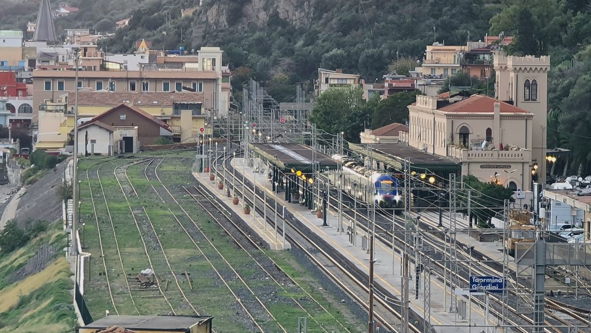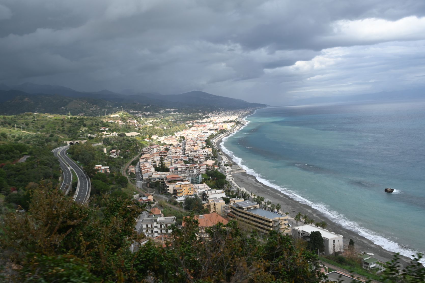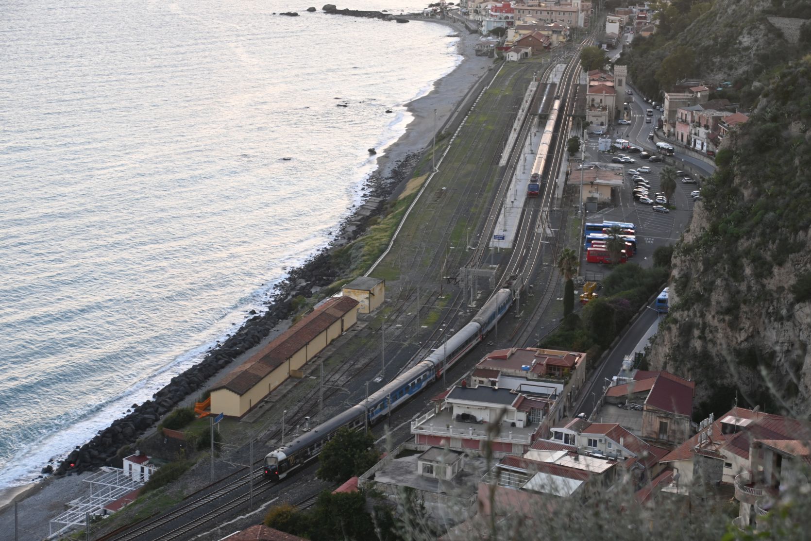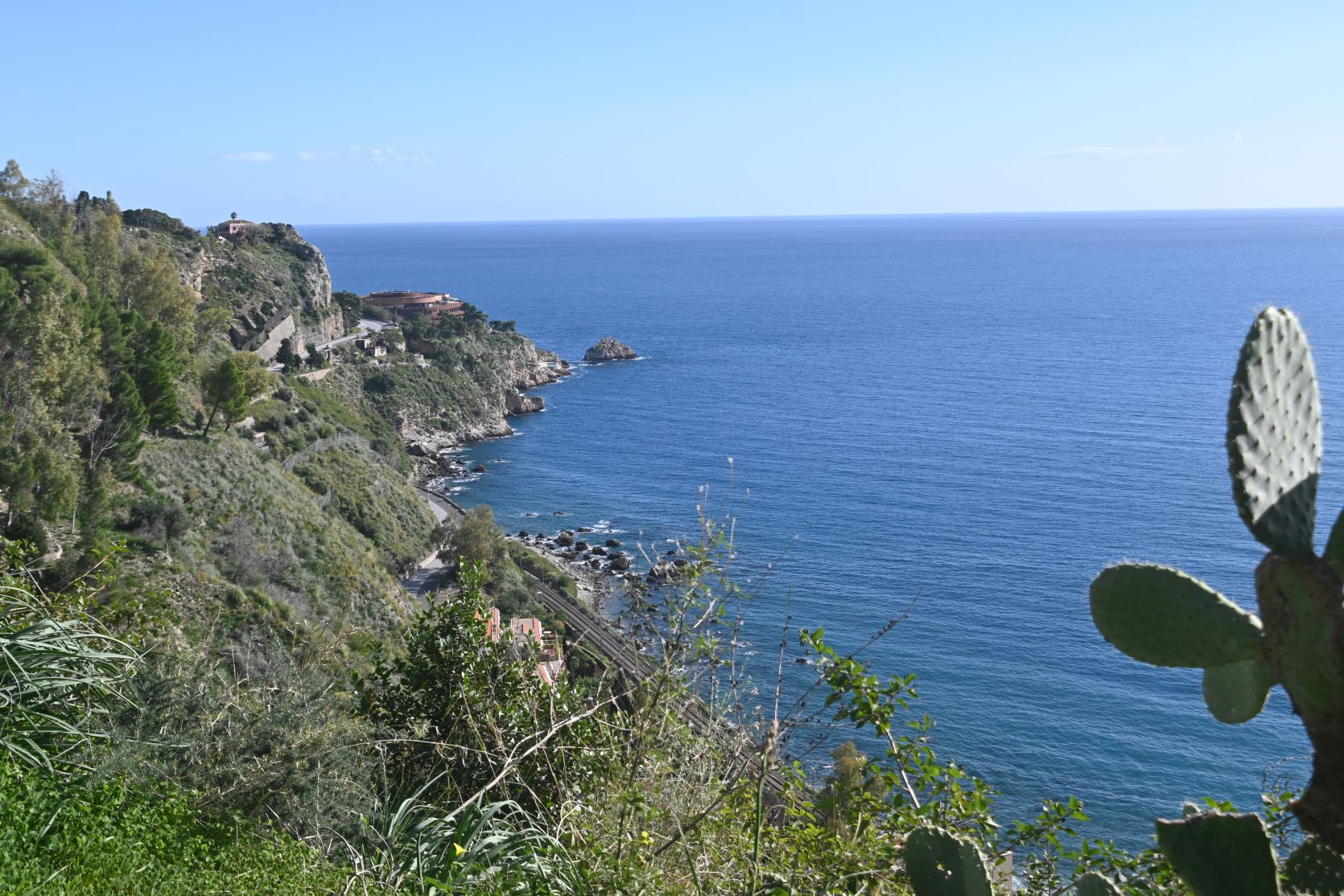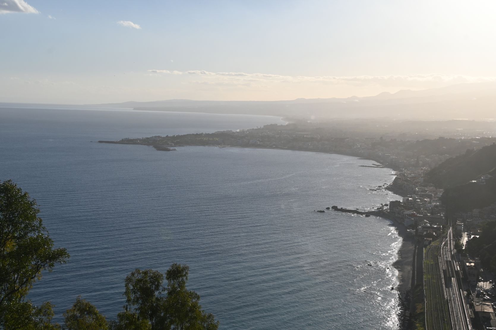 Vom Parkplatz hatten wir ausgezeichnete Aussicht auf das Meer und den Bahnhof Taormina Giardini.