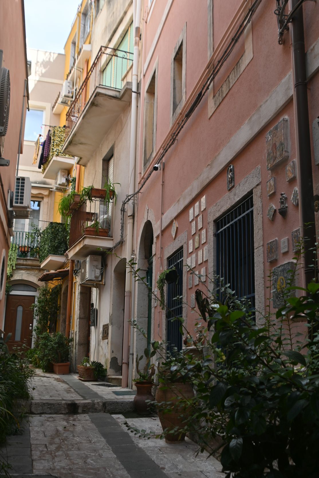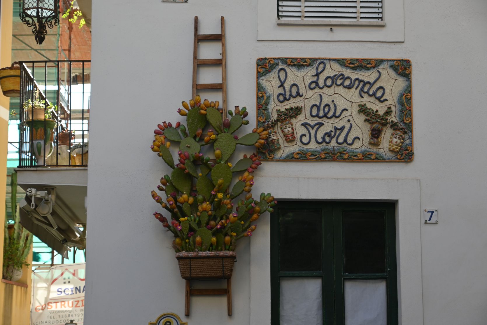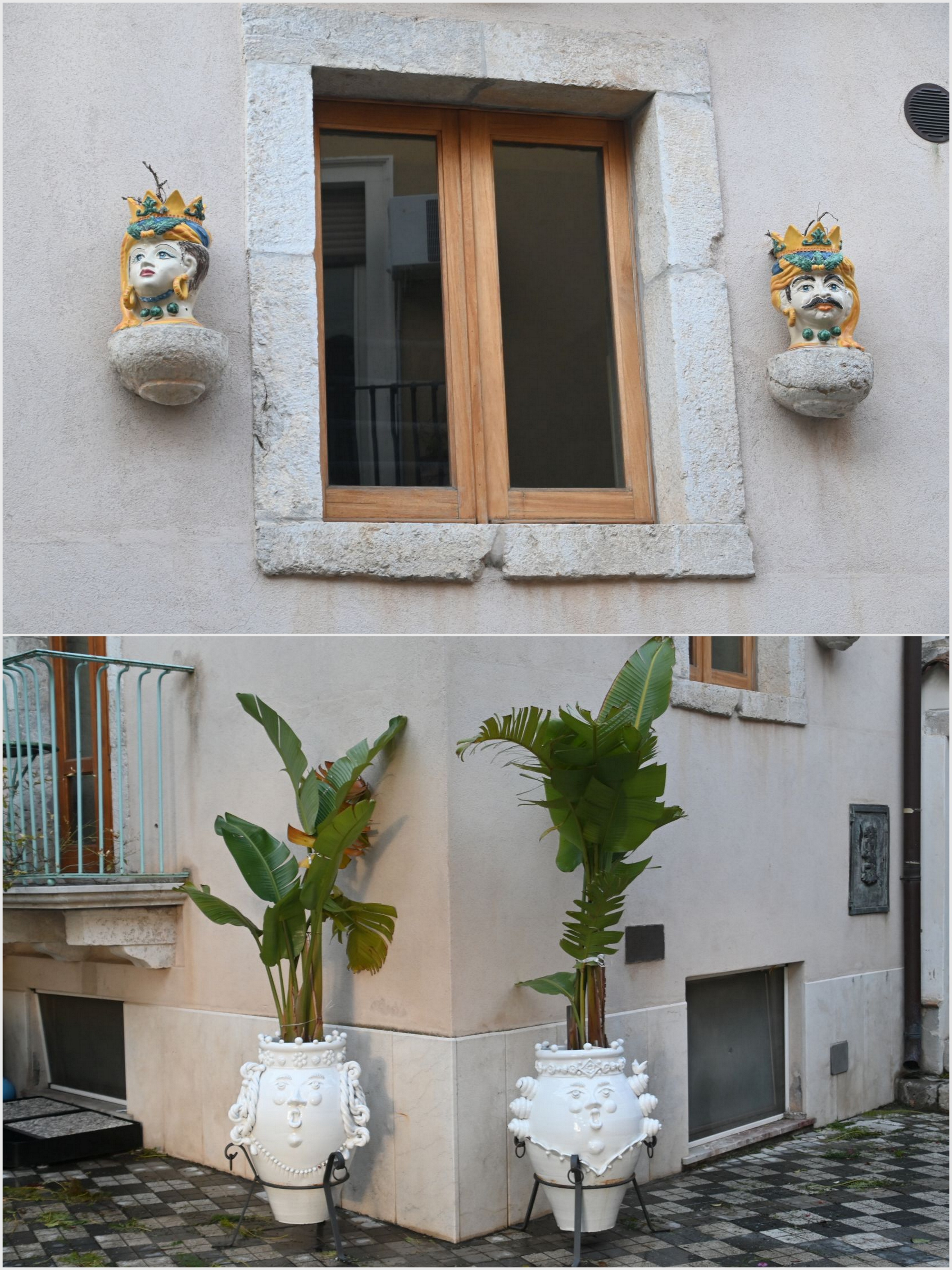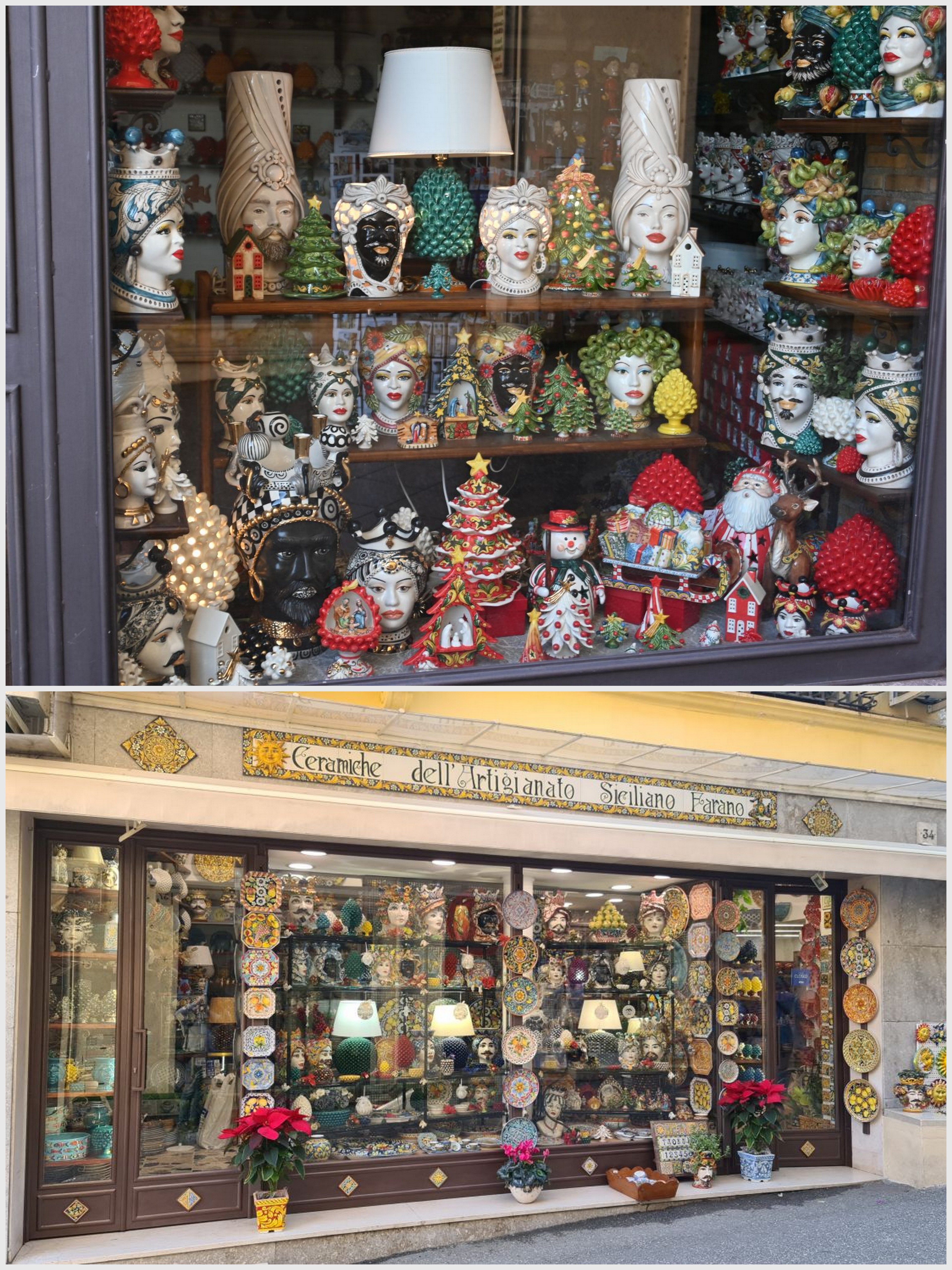 A lift goes up to the ruins of a castle. But it doesn’t work… We walked through the village. Sicily is known for its ceramics.