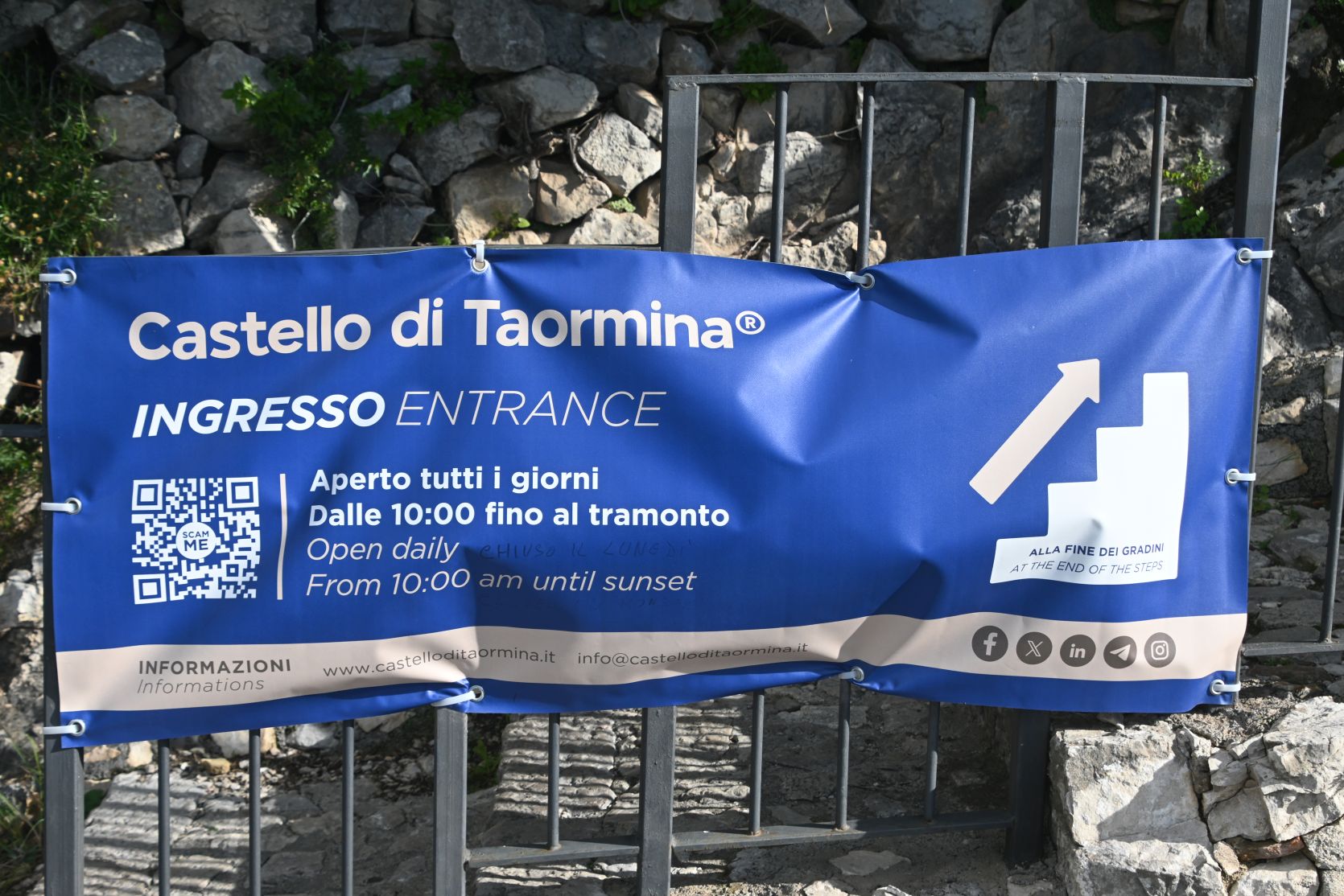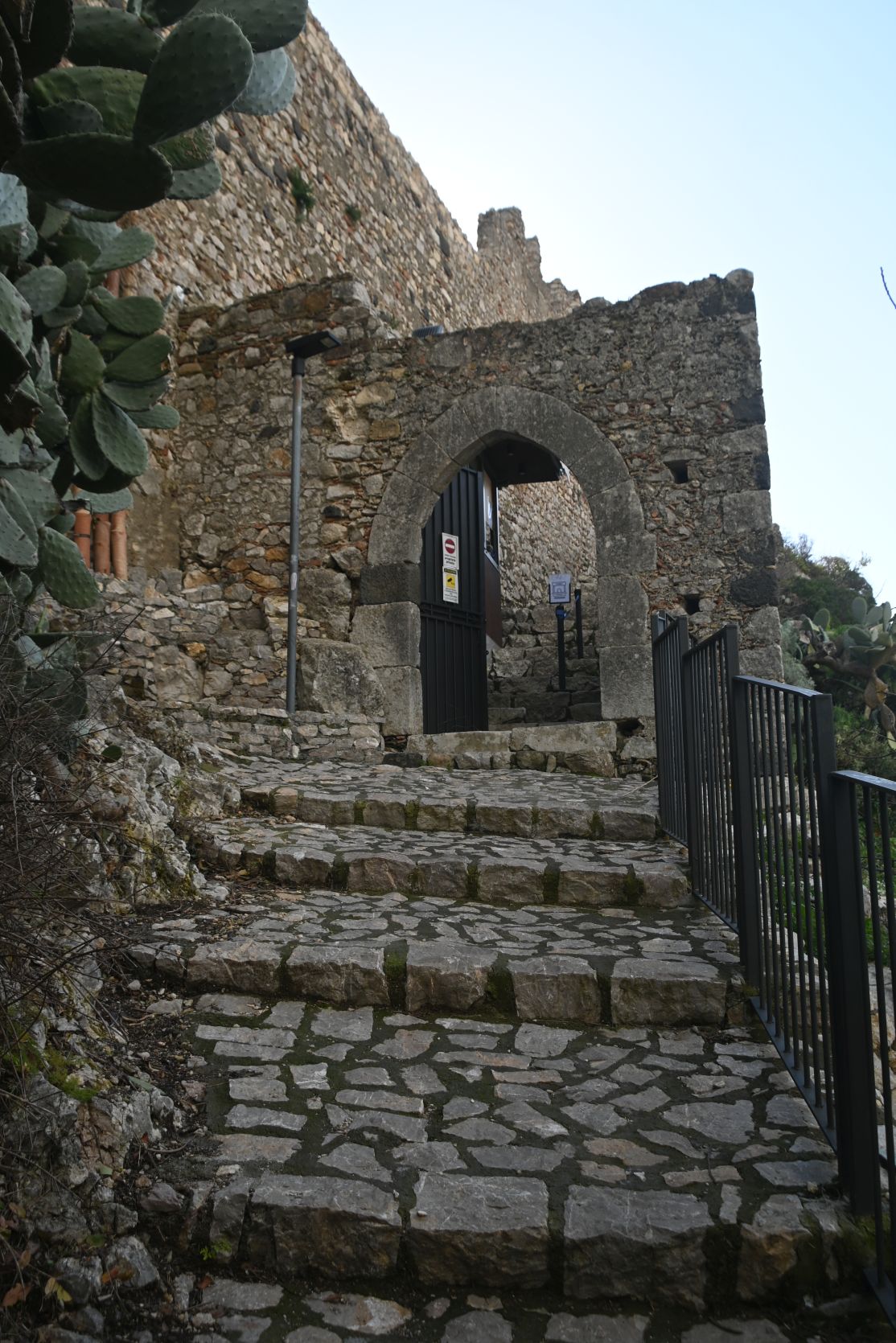 The visit to the castle was a bit expensive… We left it. Looking down to Taormina and up to Castelmola.