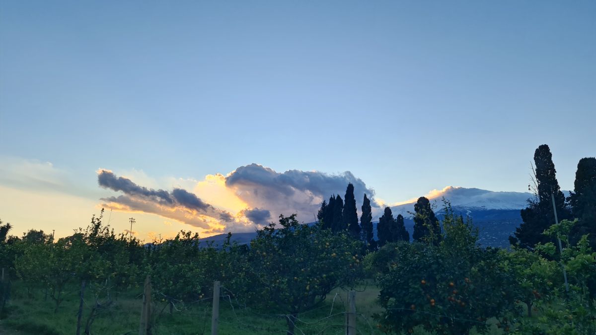 … andere etwas weiter weg. Aber wir genossen es sehr in diesem Garten – es fühlte sich an wie zuhause. Der Ätna war immer wieder anders, je nach Wolken oder Auswurf.