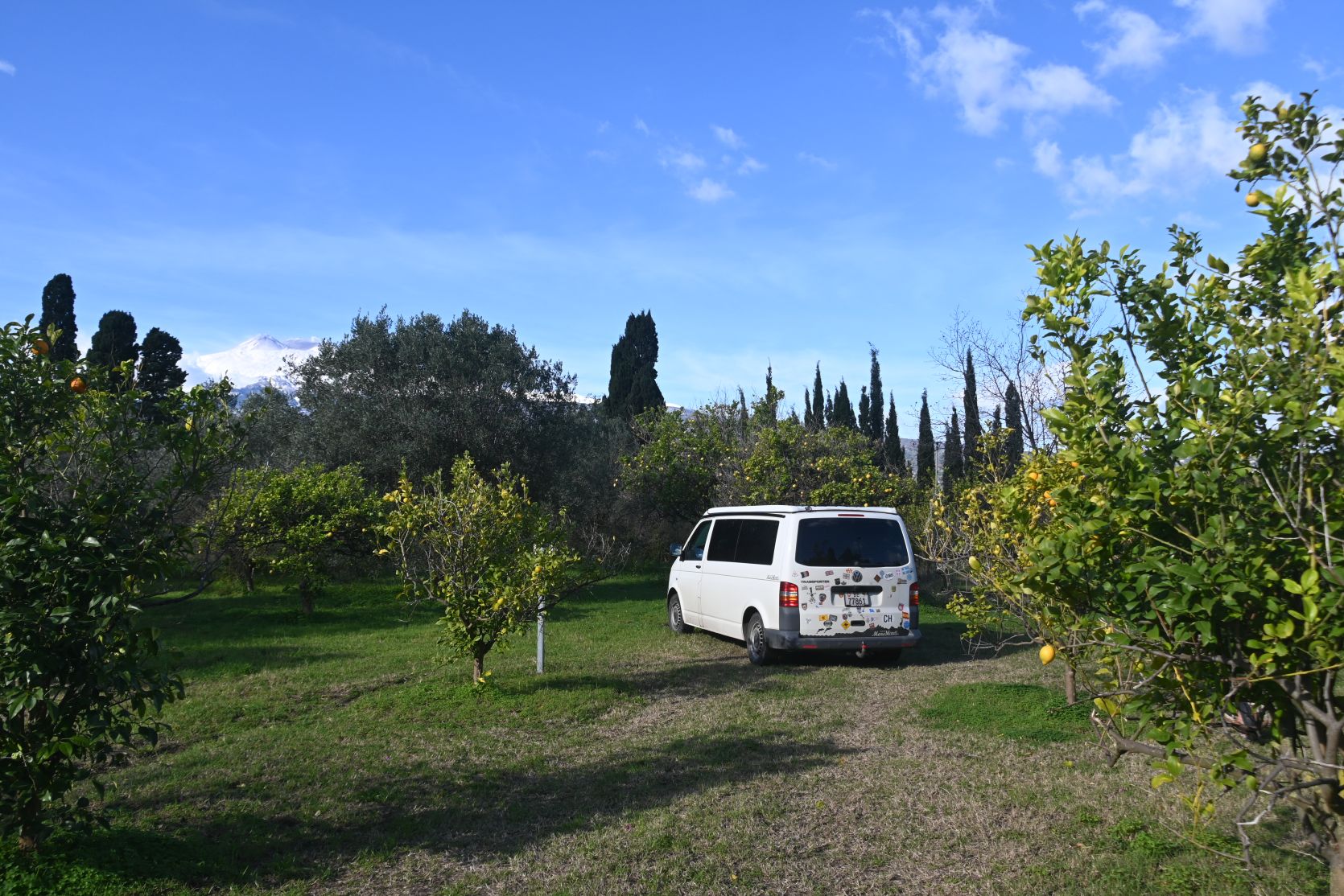 In Park4night we found our next site to stay overnight, not far from Taormina. It was a lemon garden in Fiumefreddo, only separated from the sea by a road.