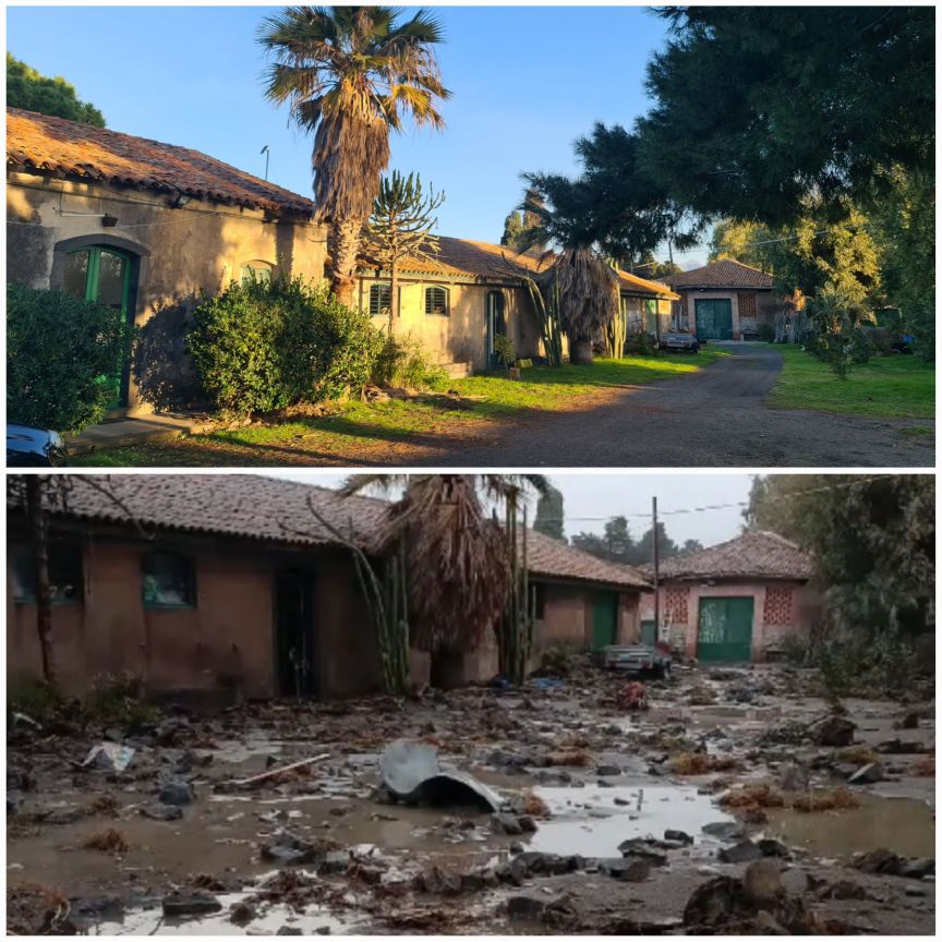 Das Sturmtief „Harry“ verwüstete einen grossen Teil des Anwesens… Die Strasse wurde überflutet (von den Wellen!), die Mauer wurde zerschmettert, vor den Gebäuden ist ein Schlachtfeld, der Tanzsaal ist ruiniert. Wir verliessen die Gegend bevor es schlimm wurde. Hier einige vorher-nachher Fotos. Margherita schickte uns ein Video, um uns die Auswirkungen zu zeigen. Wir sind sehr traurig darüber 😦