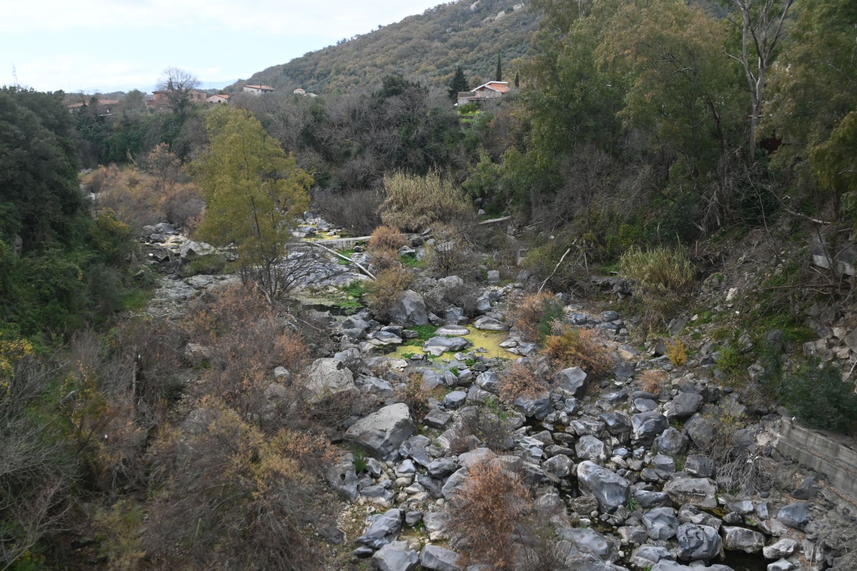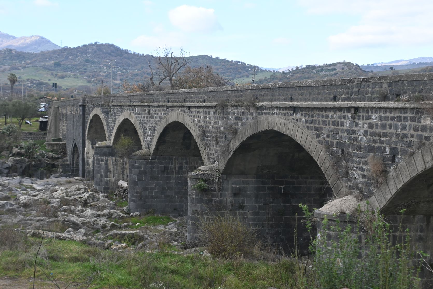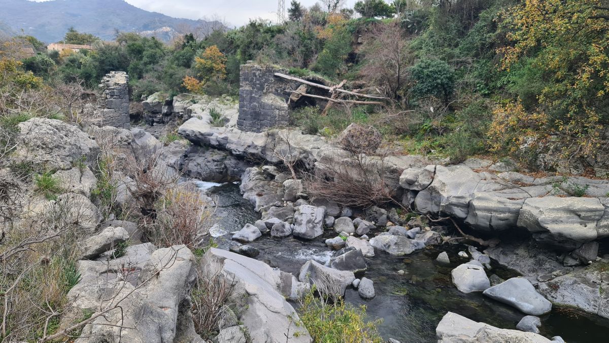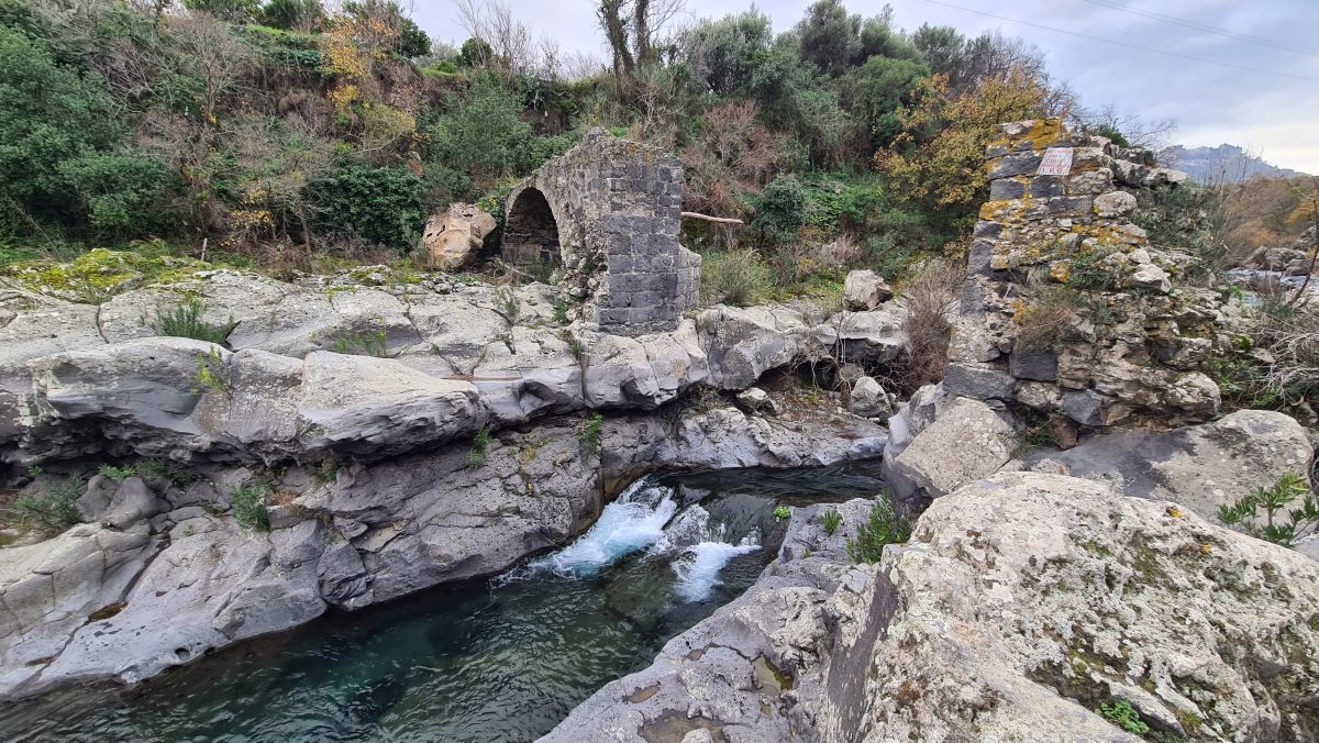 Remains of a bridge. The village on the opposite hill is called Motta Camastra (we think…).