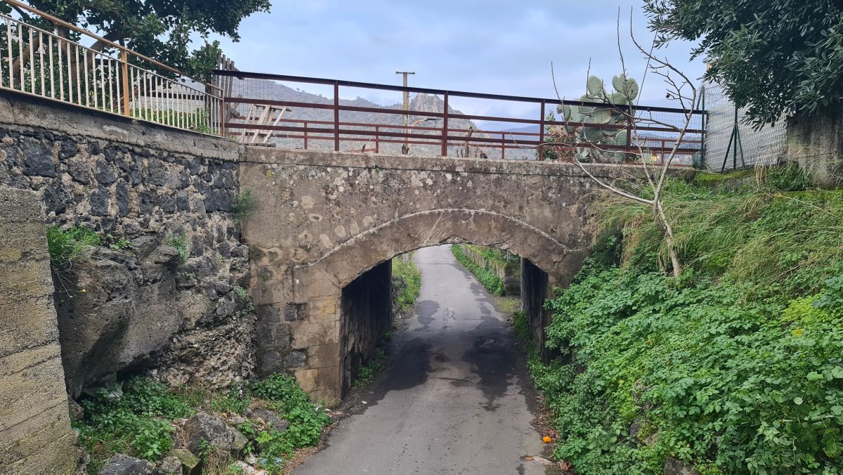 Überreste einer Brücke. Das Dorf auf dem Hügel gegenüber heisst Motta Camastra (glauben wir…).