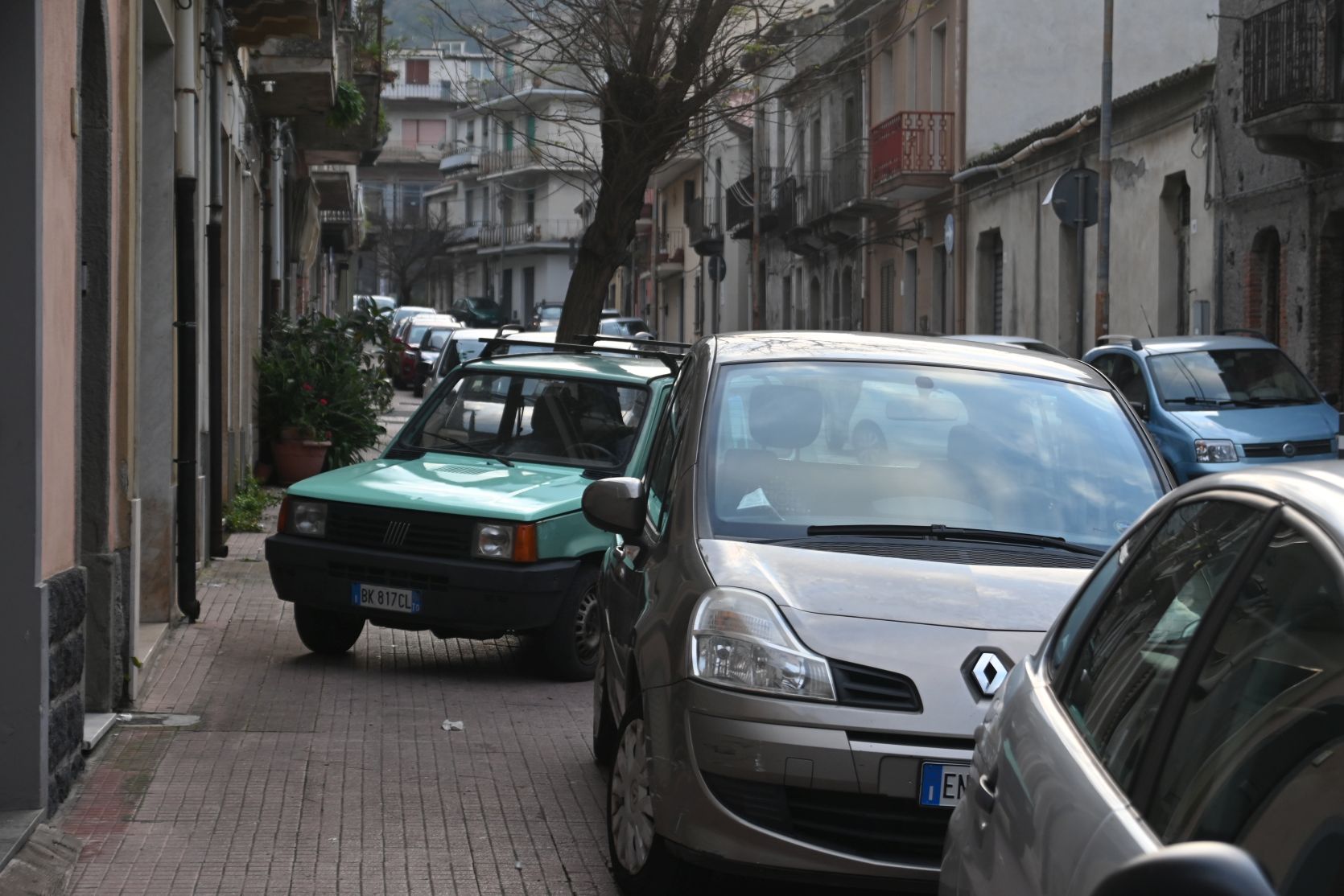 Walking back to our camper van and driving back to the lemon garden. We often see cars that are parked diagonal or sideways…