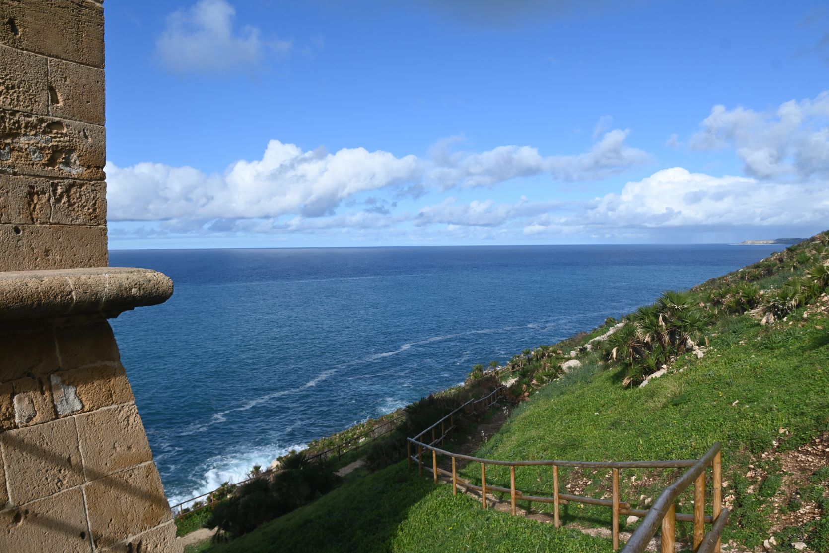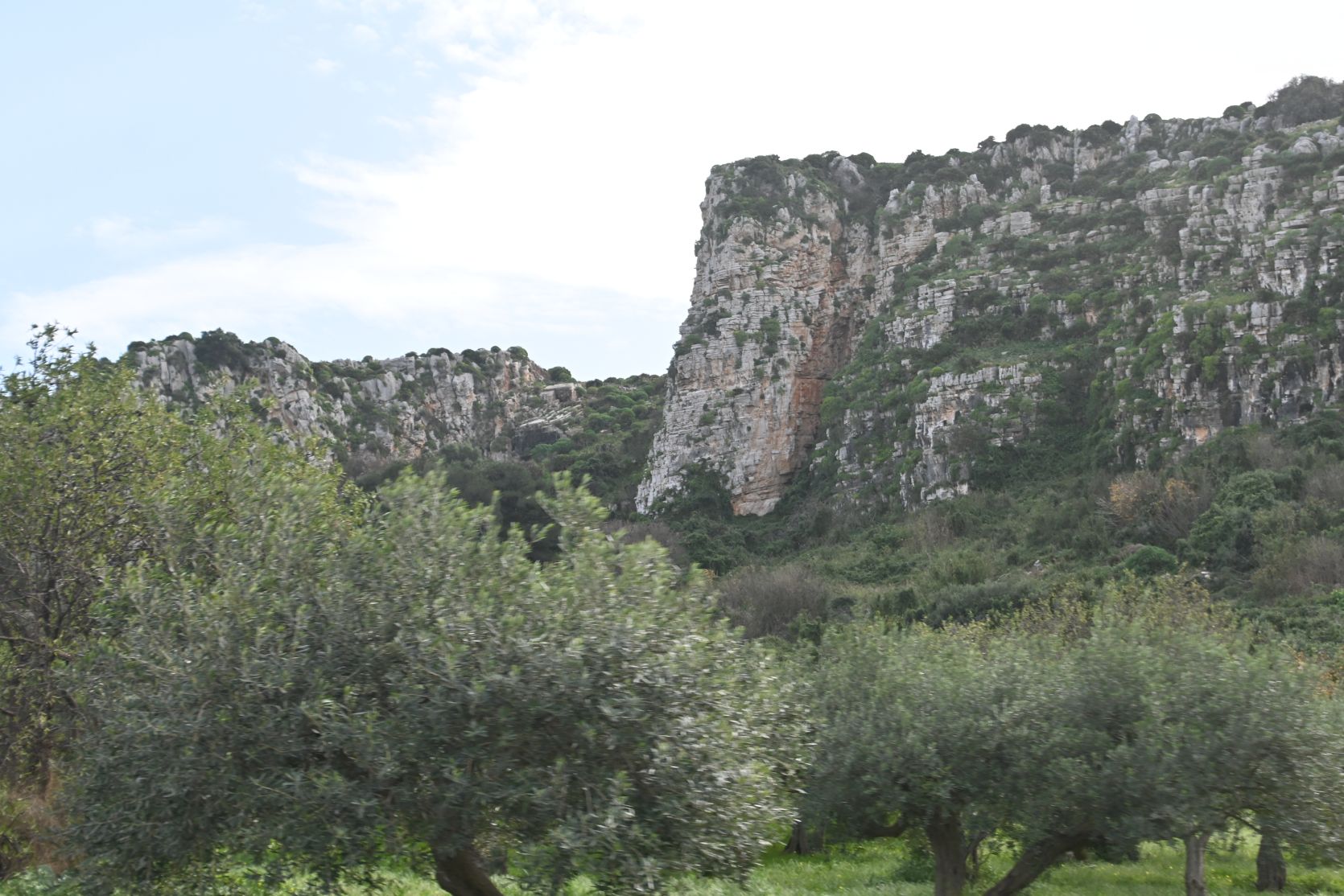 The path ran along the foot of steep cliffs.