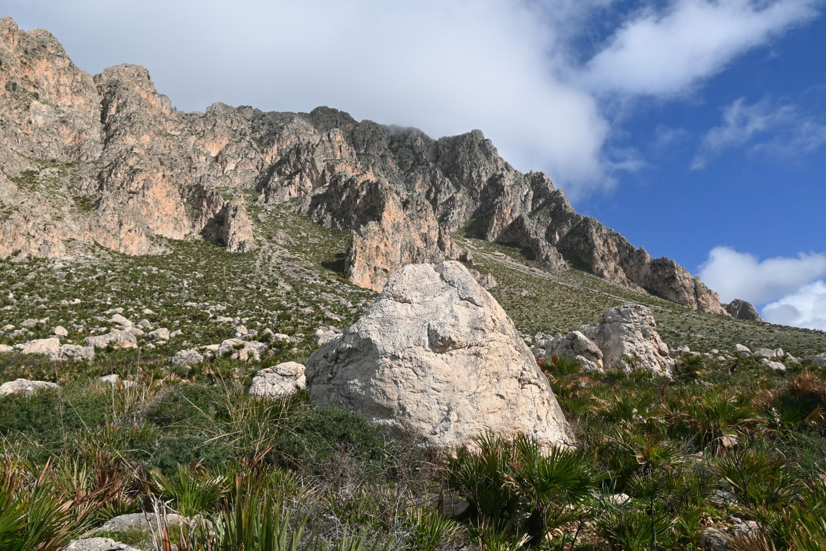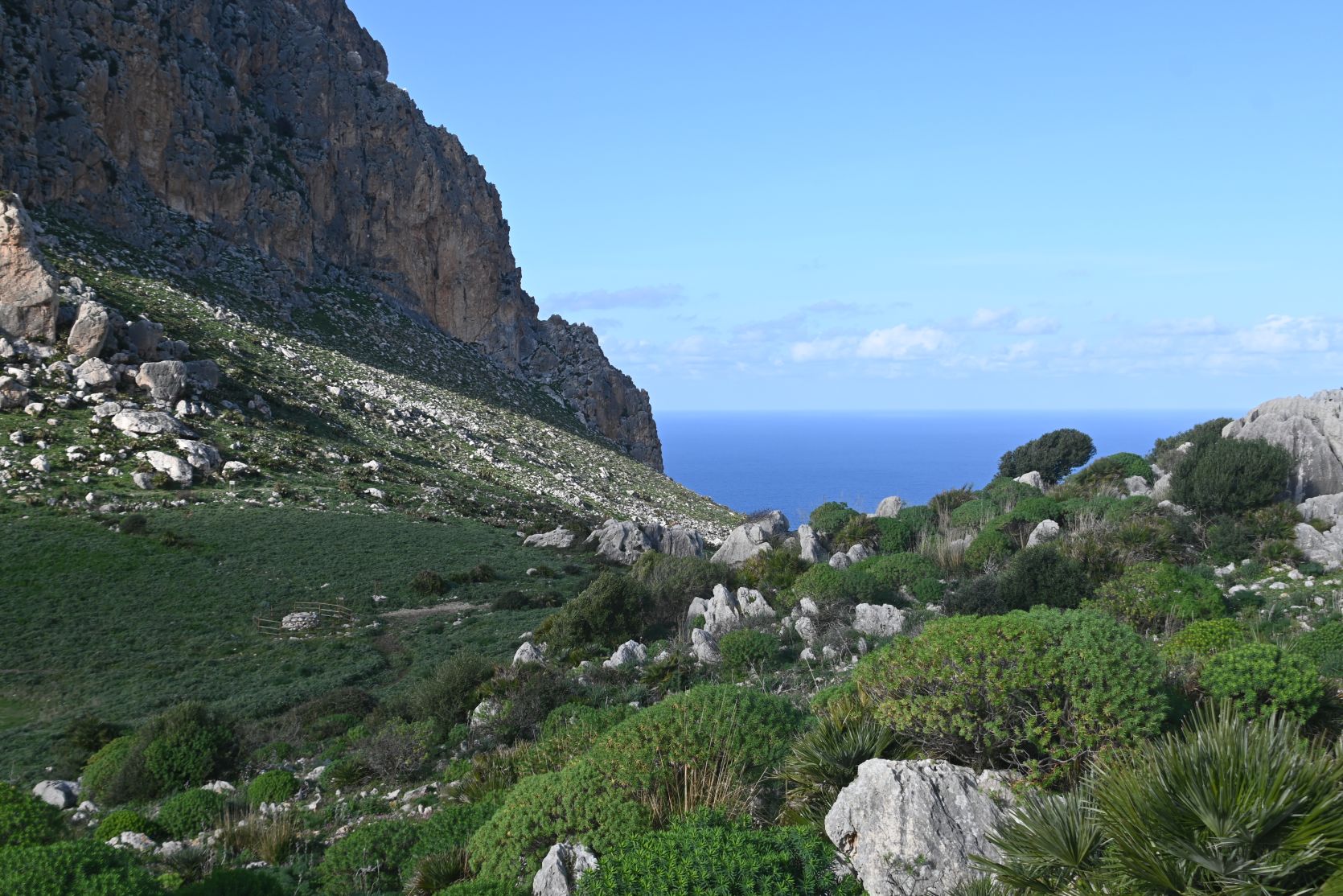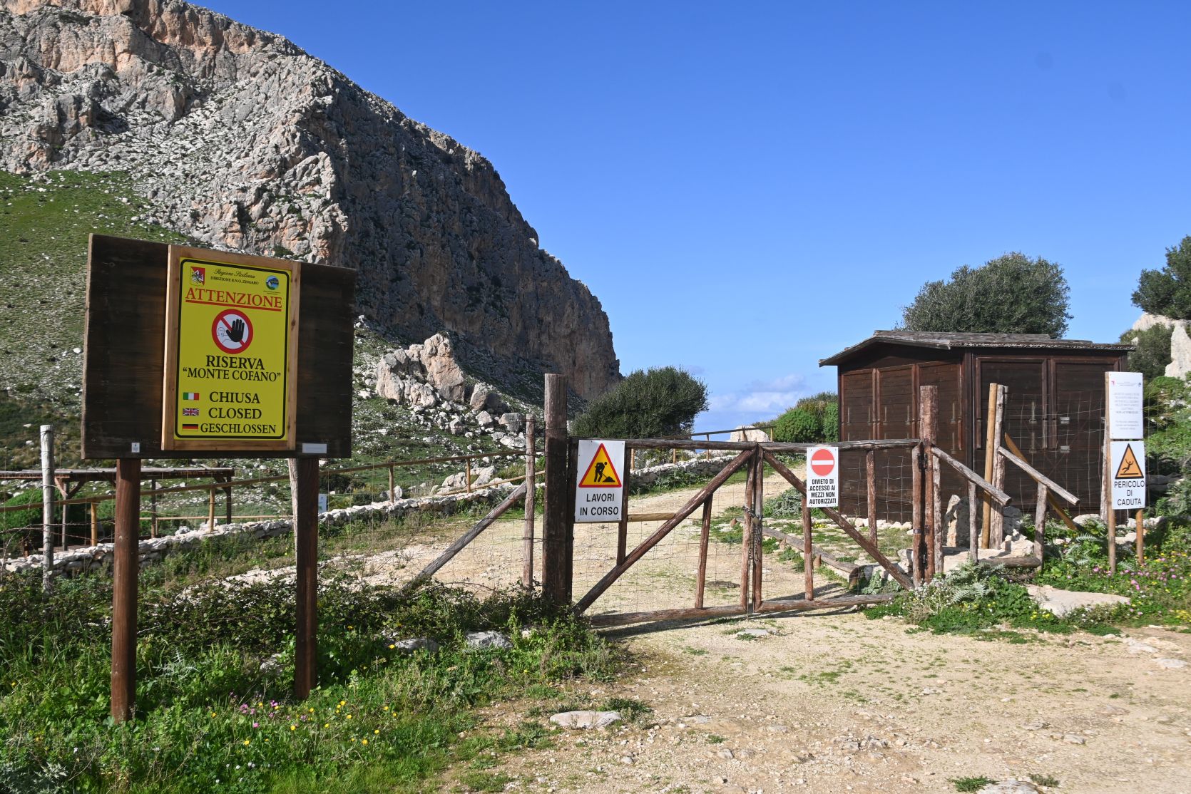 The „Grotta Mangiapane“ is accessible from there, but it’s closed at the moment (low season?). On the first photo you can see the steep slope that we went halfway down the day before.