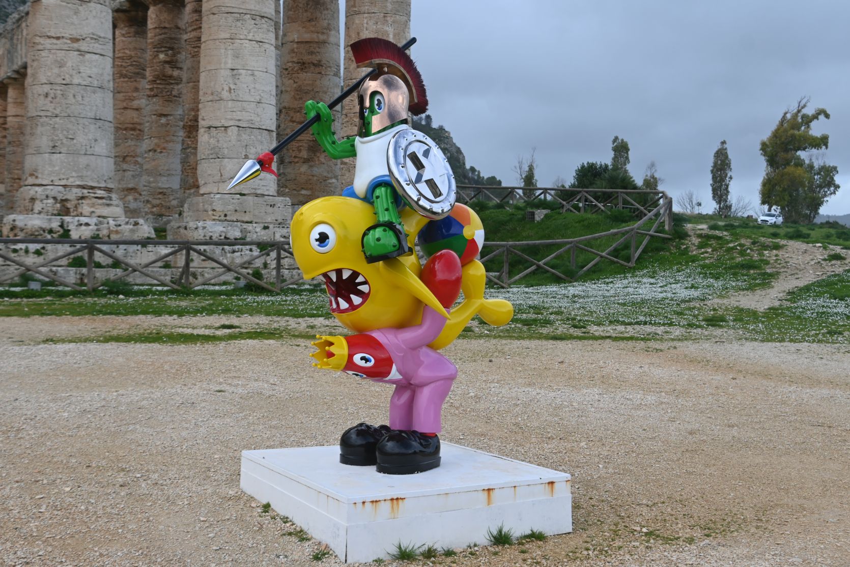 Wie in Erice gibt’s auch in Segesta Kunstobjekte von Philip Colbert. Mir gefielen die Blumen besser 😉