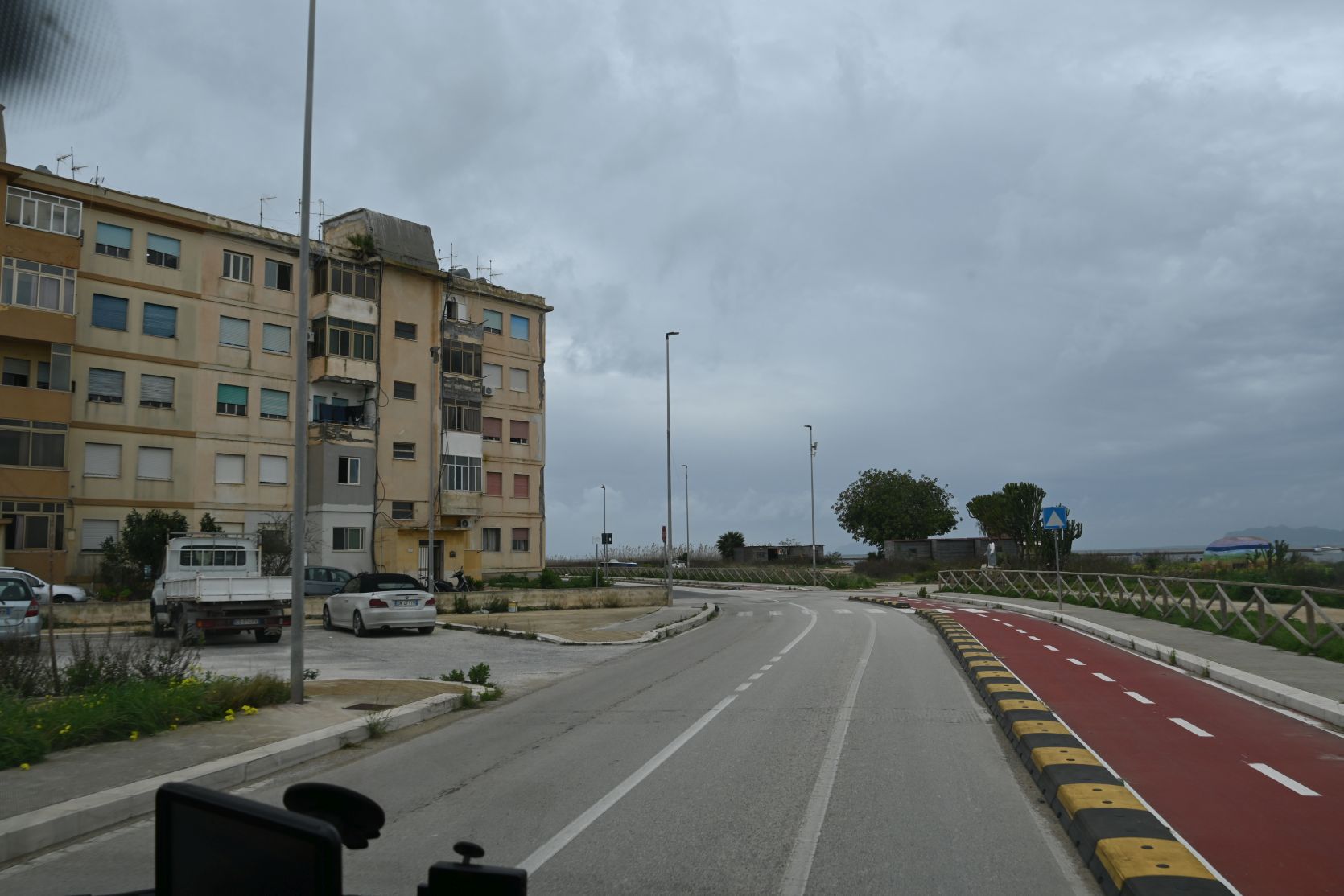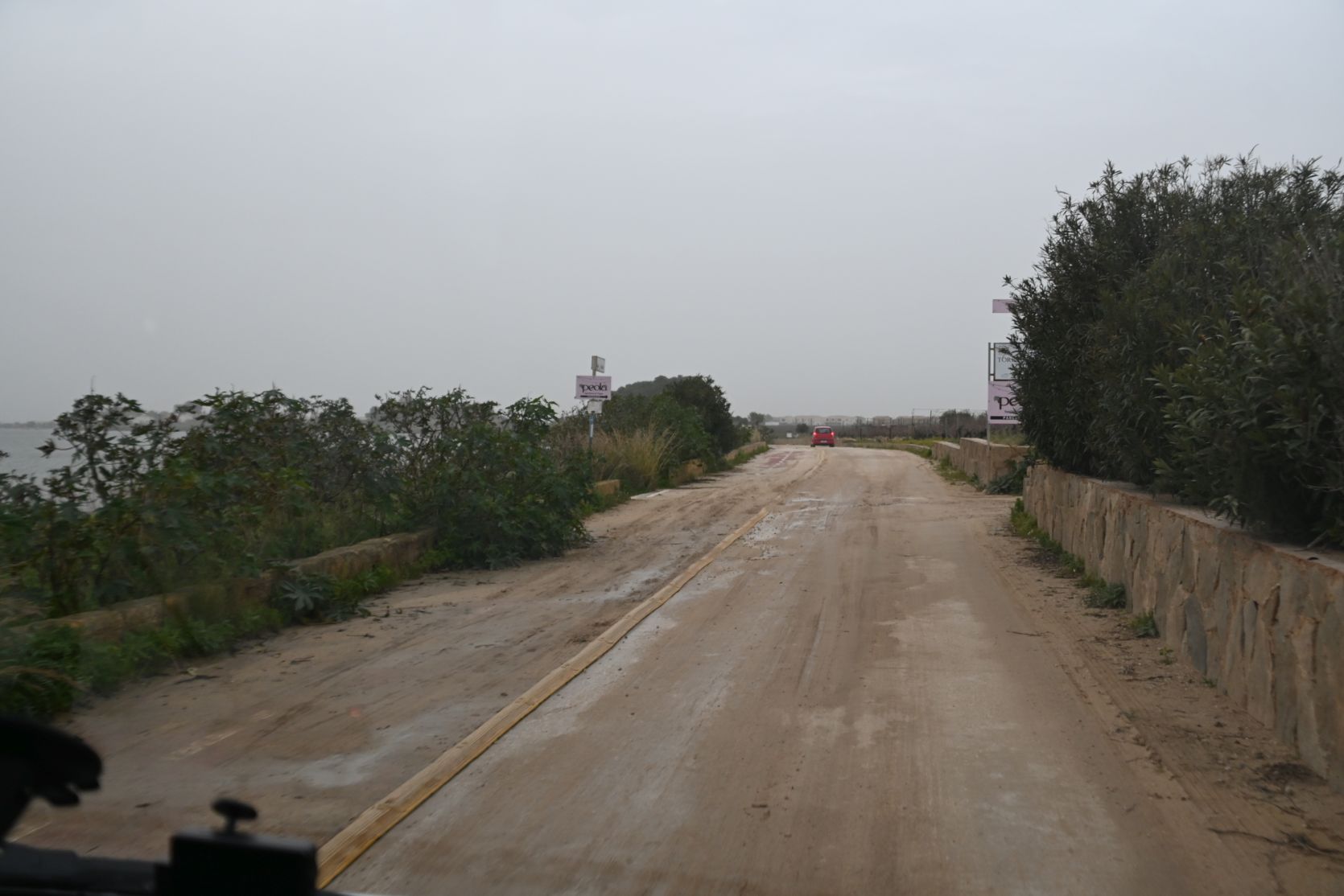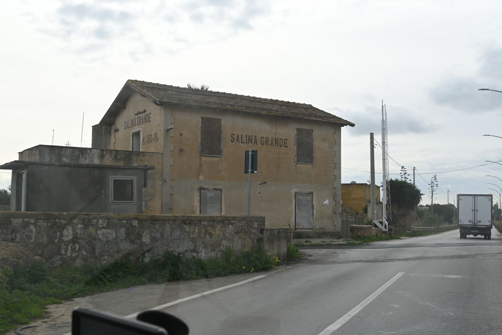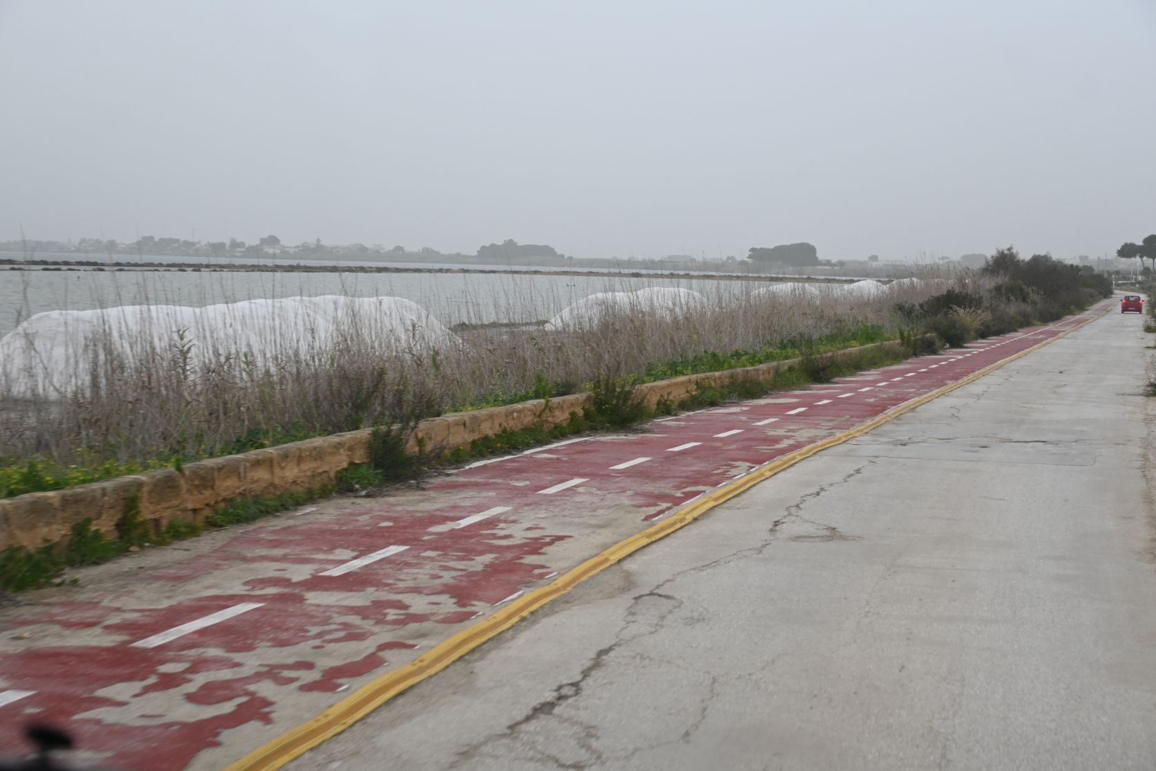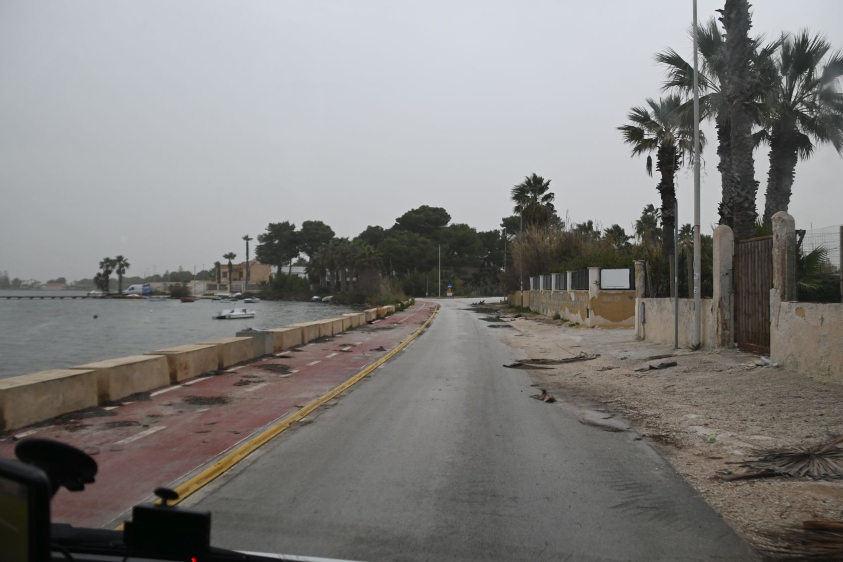 The road was quite bad, after the storm and all the rain. We passed the jetty where the boats depart for Mozia. Shame we missed out on that trip, but the weather was just too bad -> Mozia
