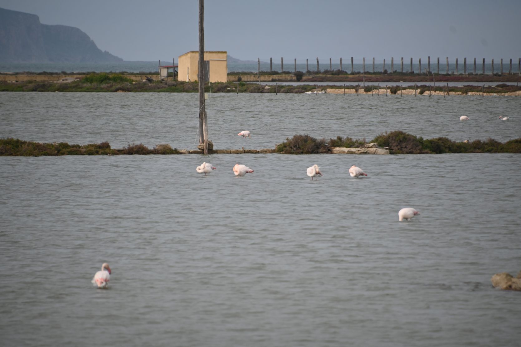 Marsala ist eine Stadt südlich von Trapani. Wir fuhren auf der Küstenstrasse, an vielen überfluteten Feldern vorbei.