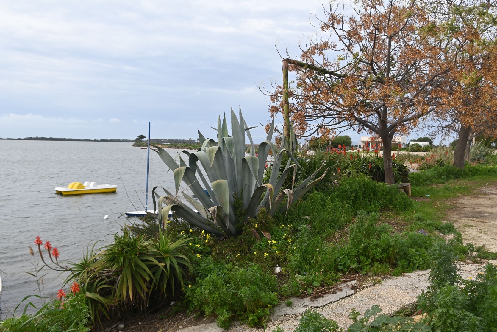 Die Strasse war in schlechtem Zustand, nach dem Sturm und dem vielen Regen. Wir kamen an dem Steg vorbei, von dem aus die Boote nach Mozia ablegen. Schade, dass wir diesen Ausflug nicht machen konnten (wegen schlechtem Wetter) -> Mozia