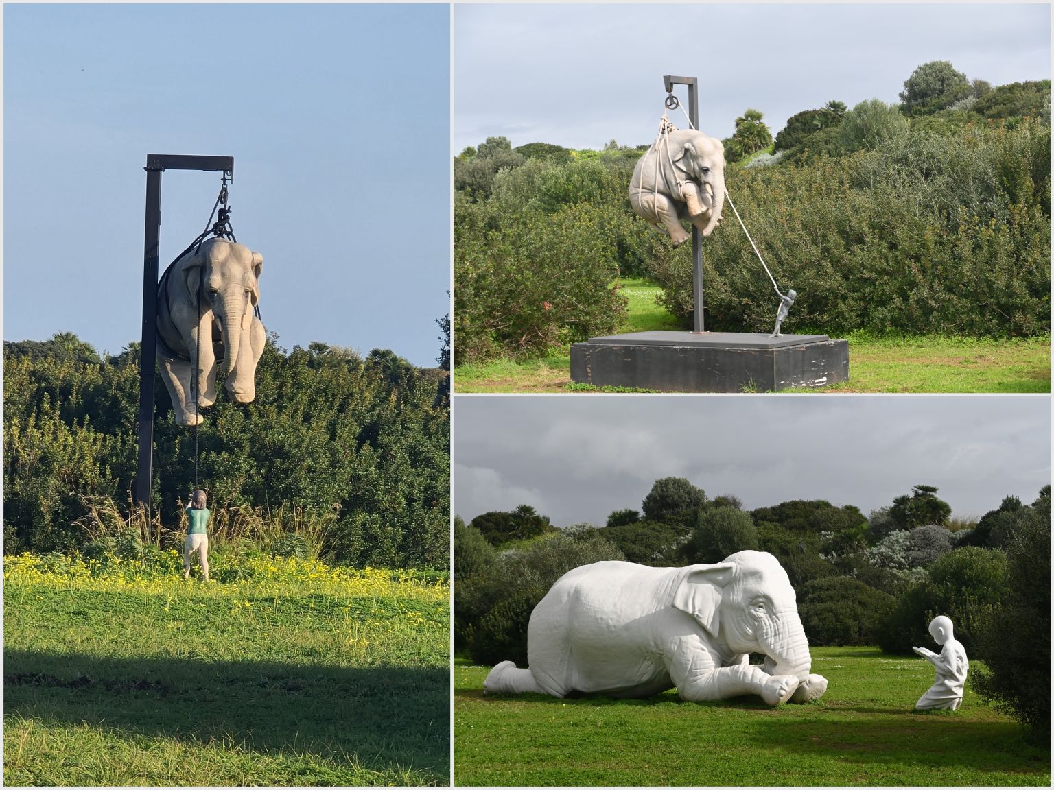 Einige Kunstwerke von Stefano Bombardieri sind auf dem Grundstück verteilt.