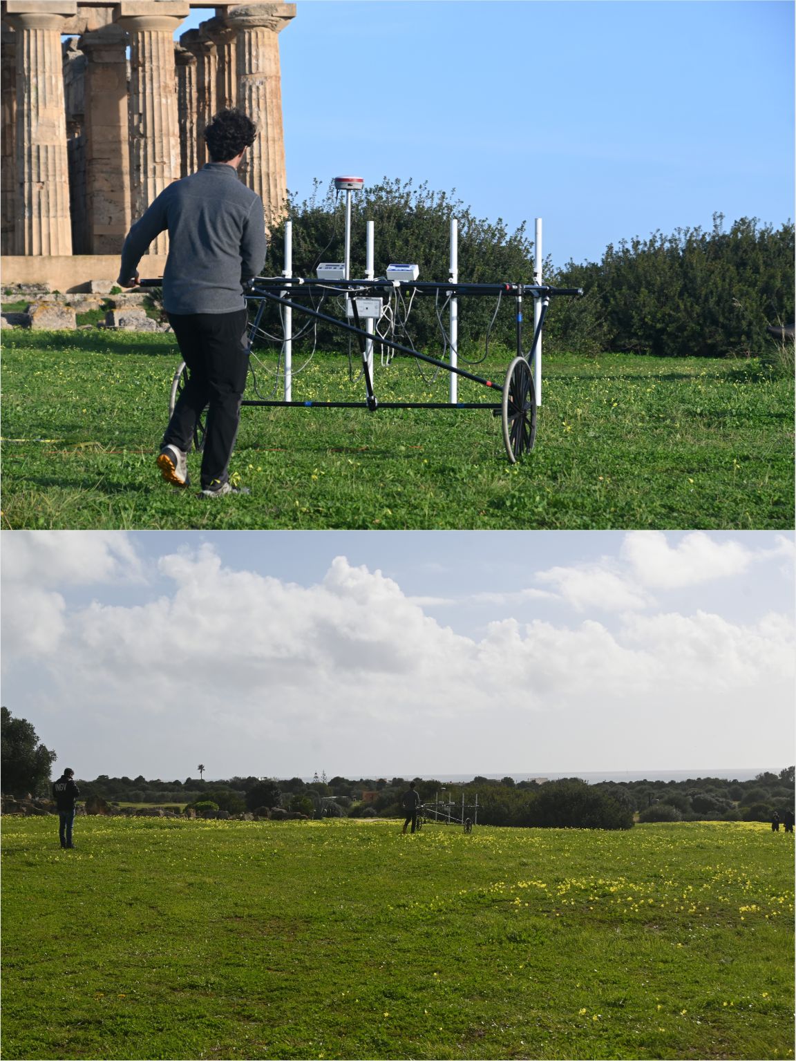 Wir beobachteten, wie Mitarbeiter des Parks versuchten, Ruinen unter der Oberfläche zu orten.