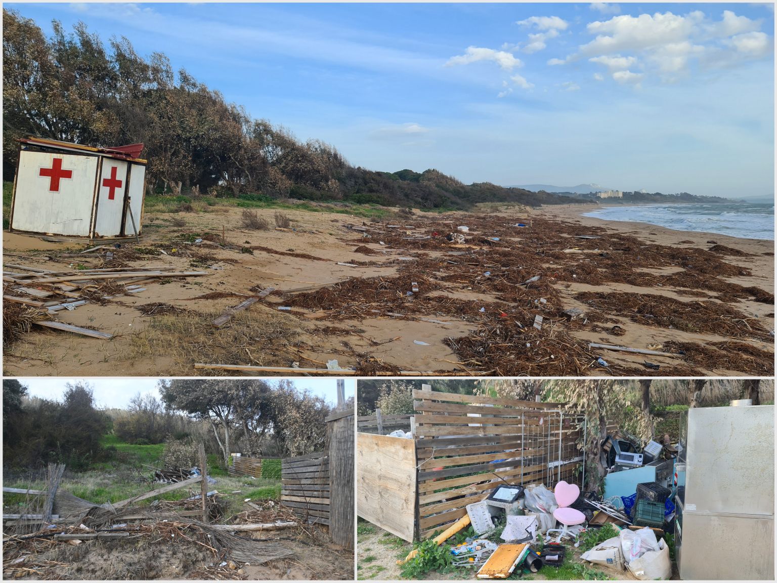 The storm damage is still visible.
